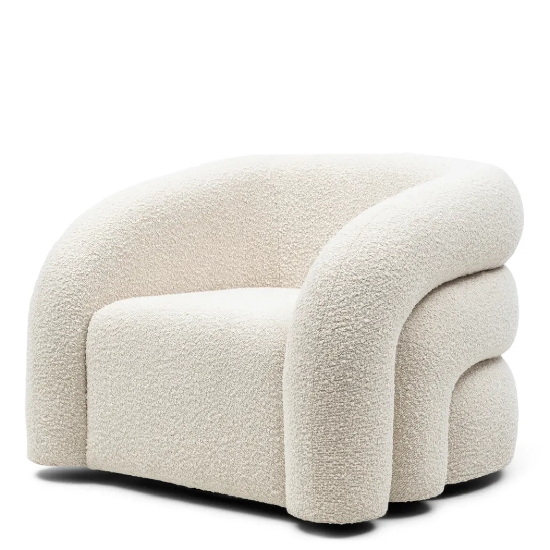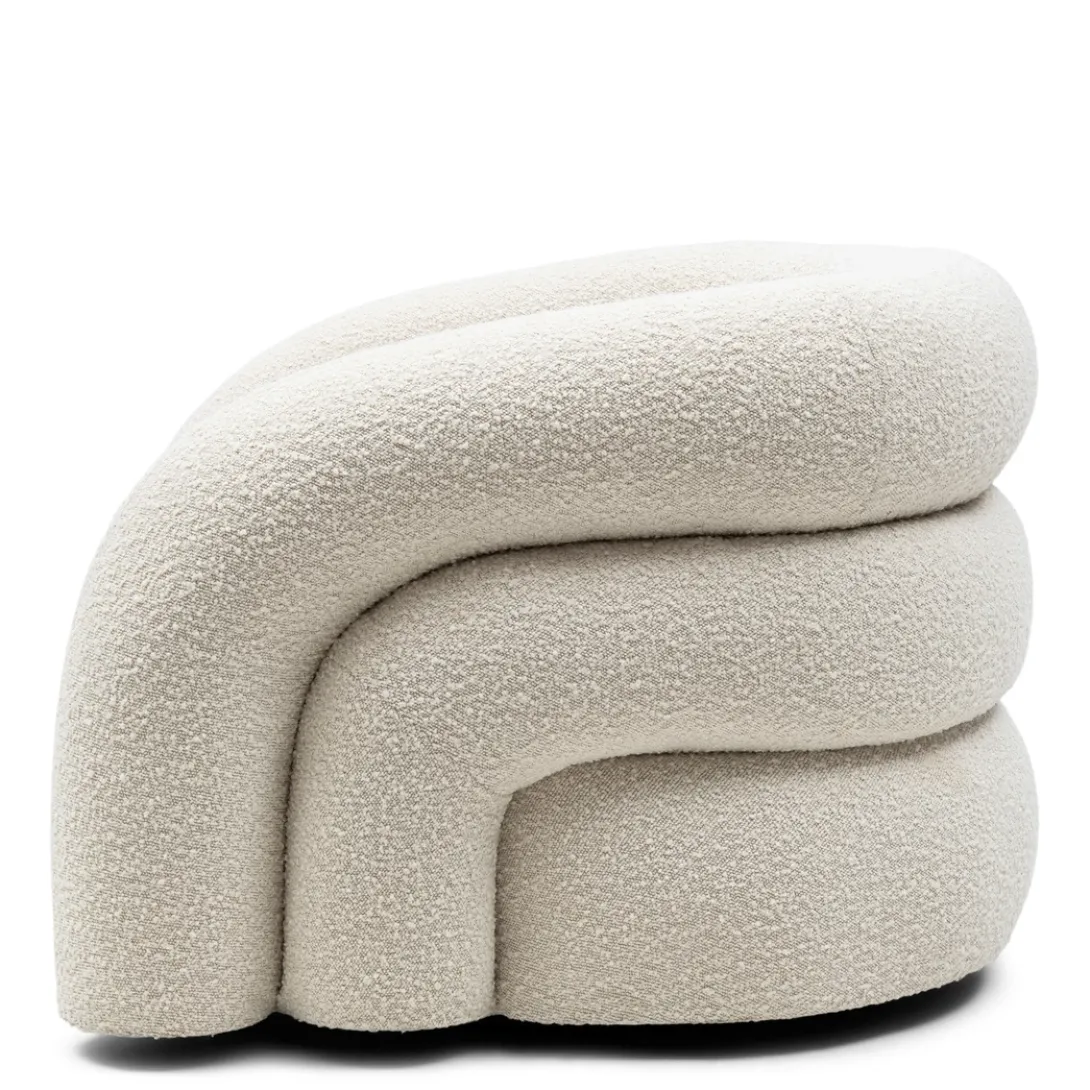 - Comfortabel, uniek en absoluut prachtig – deze fauteuil is een echte eyecatcher. De stoel biedt uitstekend zitcomfort dankzij het fijne zitvlak en de comfortabele armleuningen. De draaifunctie voegt extra functionaliteit en gemak toe aan de charme van deze fauteuil. De organische vormgeving, met elegante banen, en de luxe bouclé stof maken het tot een verfijnd meubelstuk dat een stijlvolle touch aan elk interieur geeft.