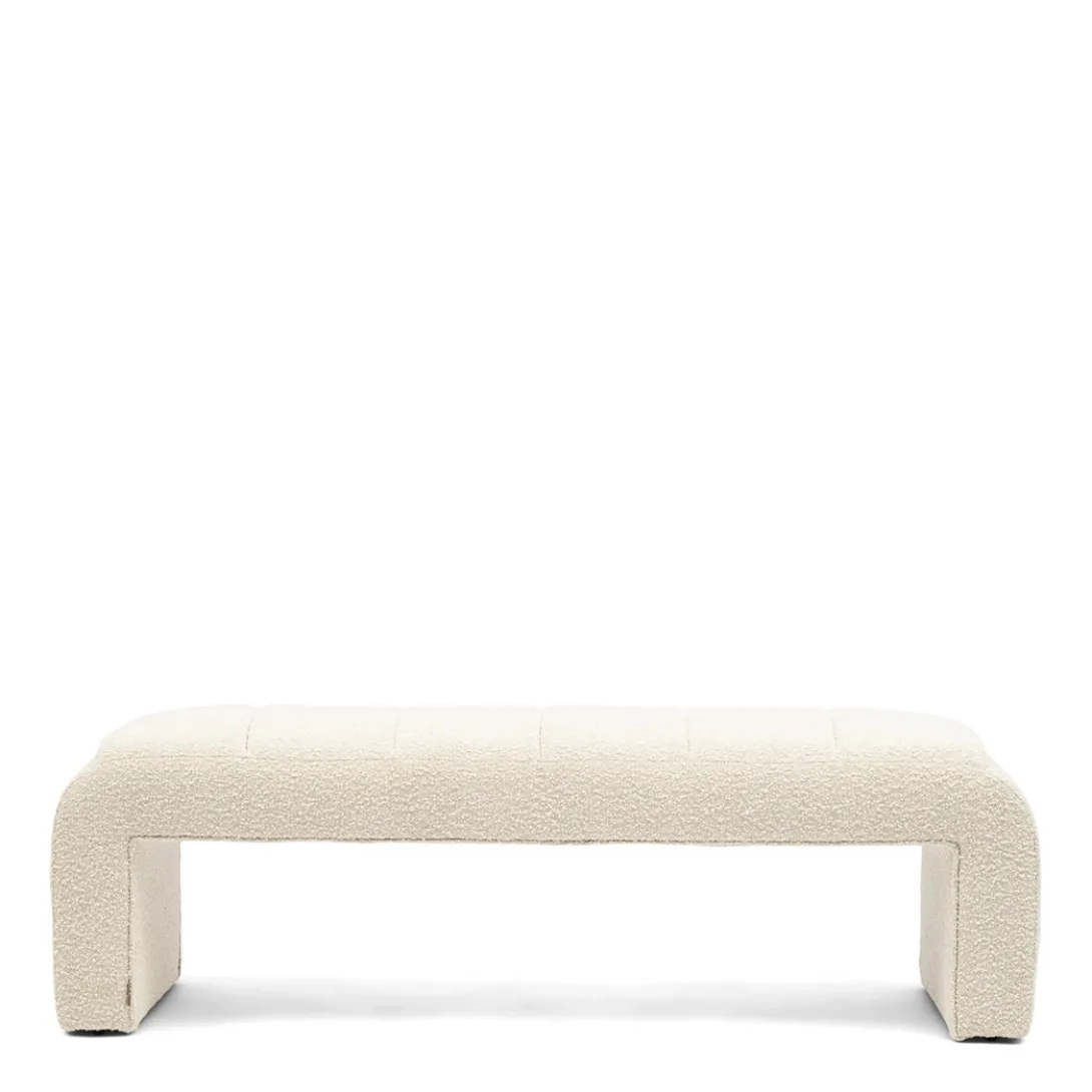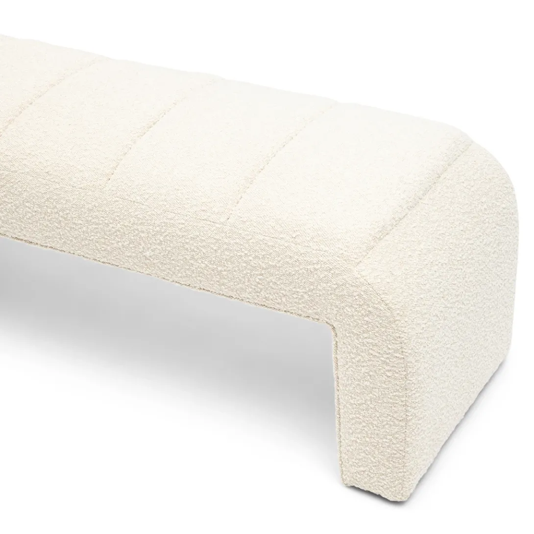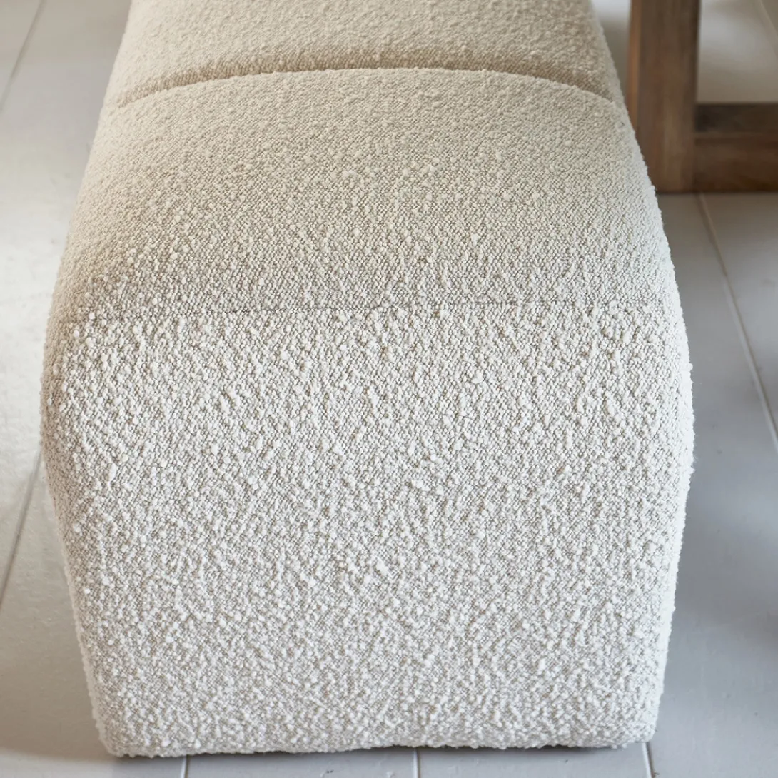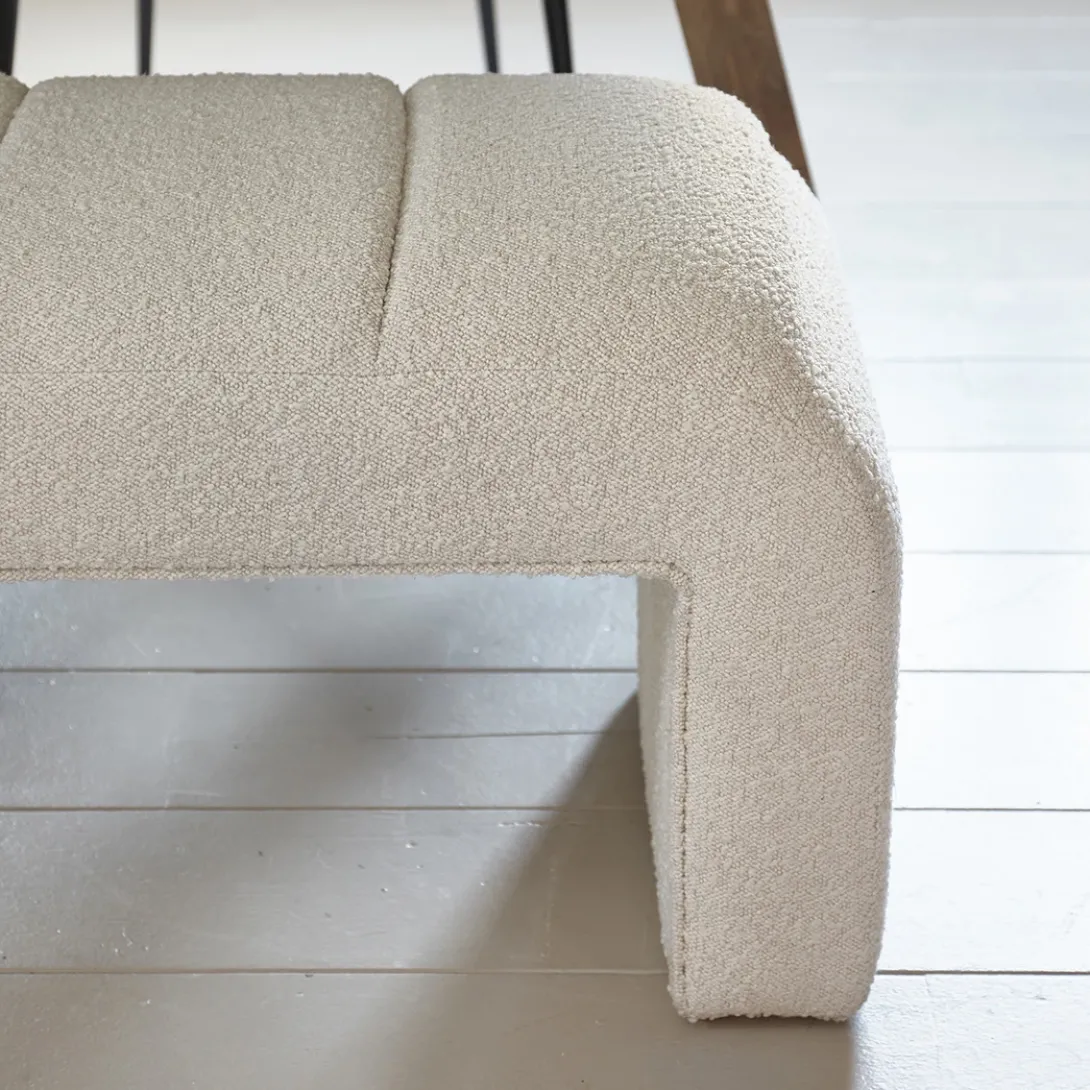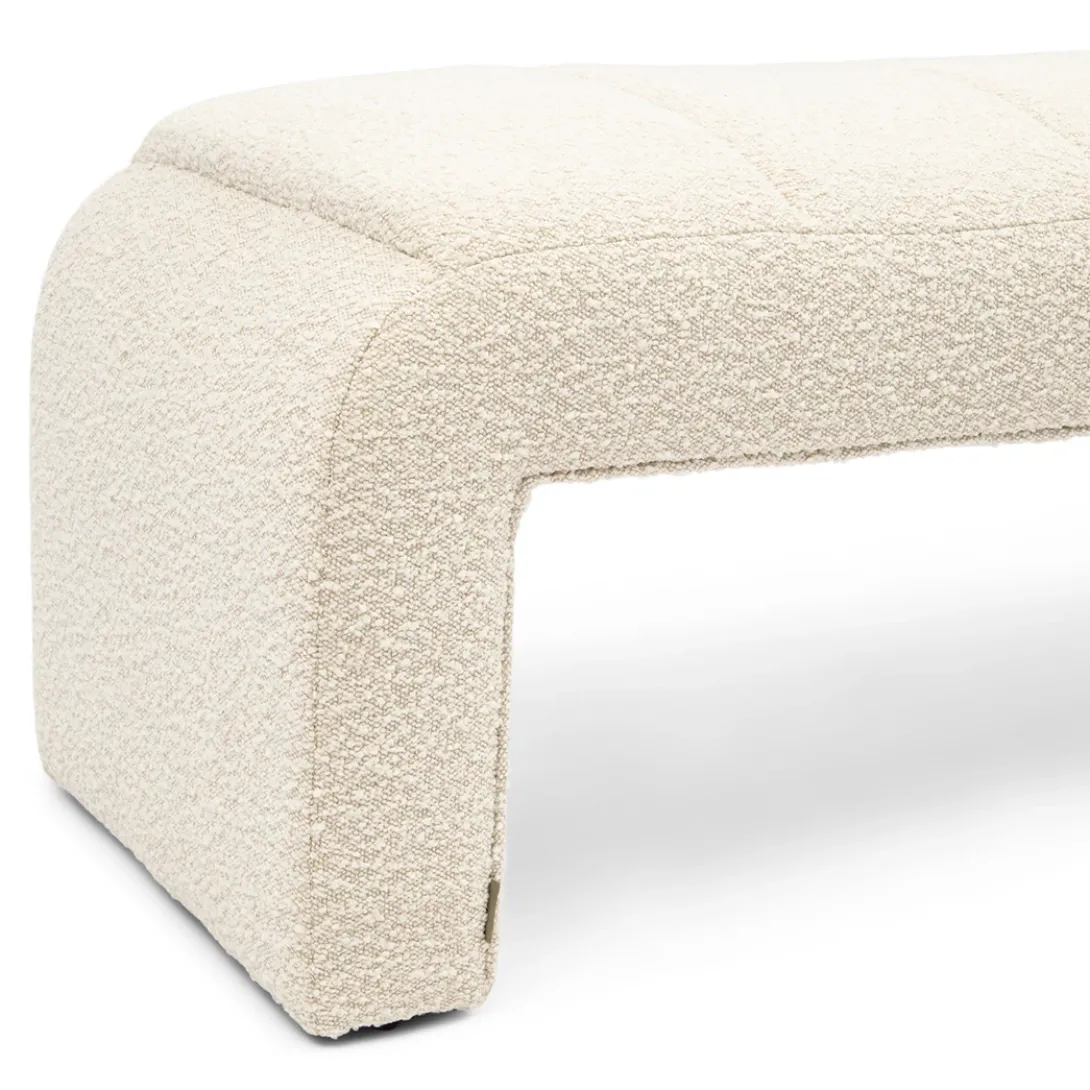 De Brera eetkamerbank in White Sand, Bouclé stof is een ware eyecatcher in huis! Met zijn elegante gestoffeerde poten en zwevende uitstraling voegt deze bank modern design toe aan je interieur. Gemaakt van een sterke stofsamenstelling in combinatie met rubberhout. De afmetingen van 160x48x46 cm zorgen ervoor dat deze bank perfect aan je eetkamertafel past. Deze bank is ook erg mooi als blikvanger in de hal of aan het voeteneinde van een bed!