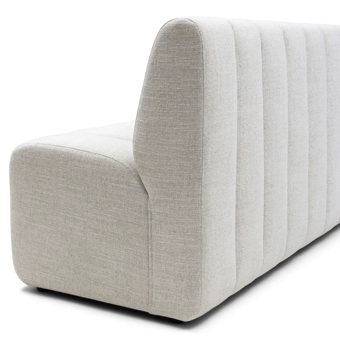 - Hoe gezellig is het om een bank bij je eettafel te hebben staan? Deze bank, uitgevoerd in gemêleerde stof voor een extra luxe touch, heeft handige wieltjes aan de onderkant en prachtig vormgegeven banen in het textiel. De eetkamerbank voegt niet alleen een vleugje elegantie toe aan je eetkamer, maar biedt ook moeiteloze mobiliteit en comfort. Dit slimme ontwerp biedt extra zitplekken zonder ruimte in te leveren en is een perfecte aanvulling voor een stijlvolle zitervaring.