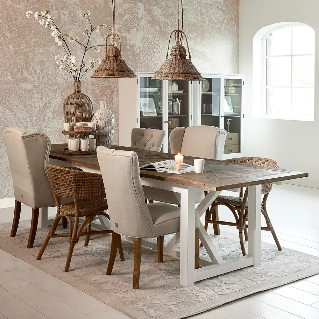De Balmoral eetkamerstoel is een klassiek model: met een recht zitvlak, een rechte rugleuning en geen armleuningen. De zitting is zacht en comfortabel en de rugleuning is gecapitonneerd. Daardoor krijgt de stoel een luxe uiterlijk. De lichte stof flanders flax is sterk en duurzaam. De lichte eetkamerstoel in natureltint staat op vier rubberhouten poten.