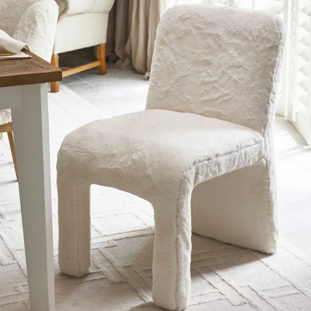 - De Callaghan eetkamerstoel biedt een unieke combinatie van comfort en stijl. Bekleed met zachte faux fur stof, inclusief de poten, voegt deze stoel een winterse sfeer toe aan je interieur. Het ontwerp met twee voorpoten en een rugleuning die doorloopt in een brede achterpoot zorgt voor een modern silhouet. De diepe zitting biedt extra comfort, waardoor de Callaghan ideaal is voor lange diners en gezellige avonden.