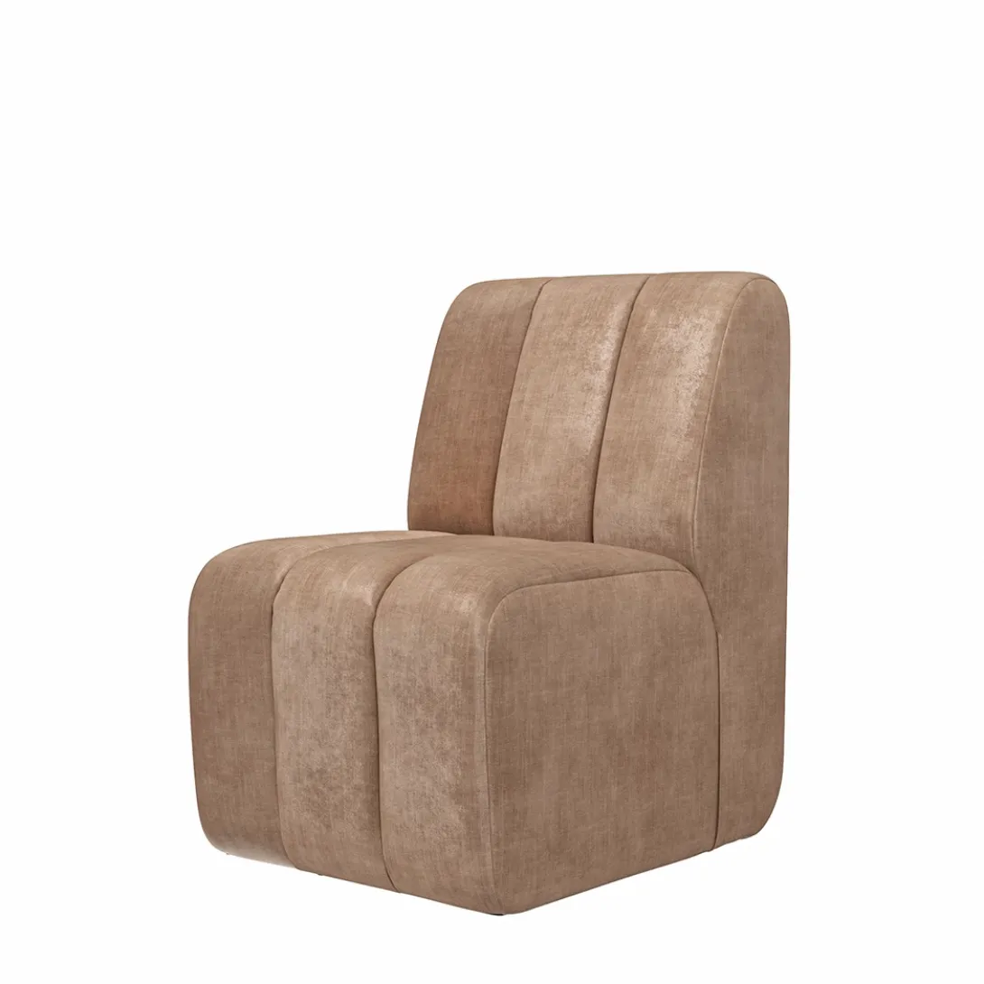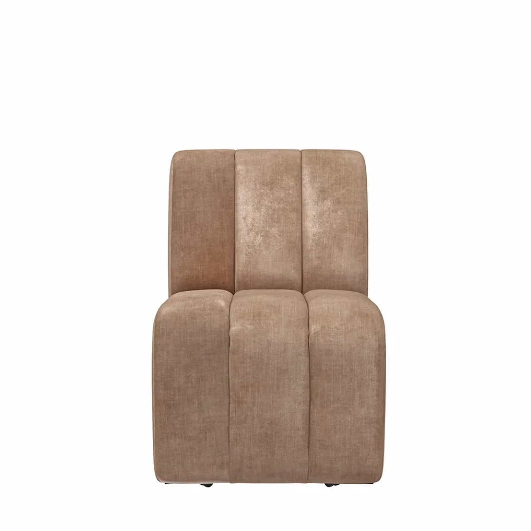 Ontdek de Dazzle Eetkamerstoel in de verfijnde kleur Cafe Latte. Met handige wieltjes aan de onderkant en prachtig vormgegeven banen in het textiel voegt deze stoel niet alleen een vleugje elegantie toe aan je eetkamer, maar biedt hij ook moeiteloze mobiliteit en comfort. Een perfecte aanvulling voor een stijlvolle zitervaring.