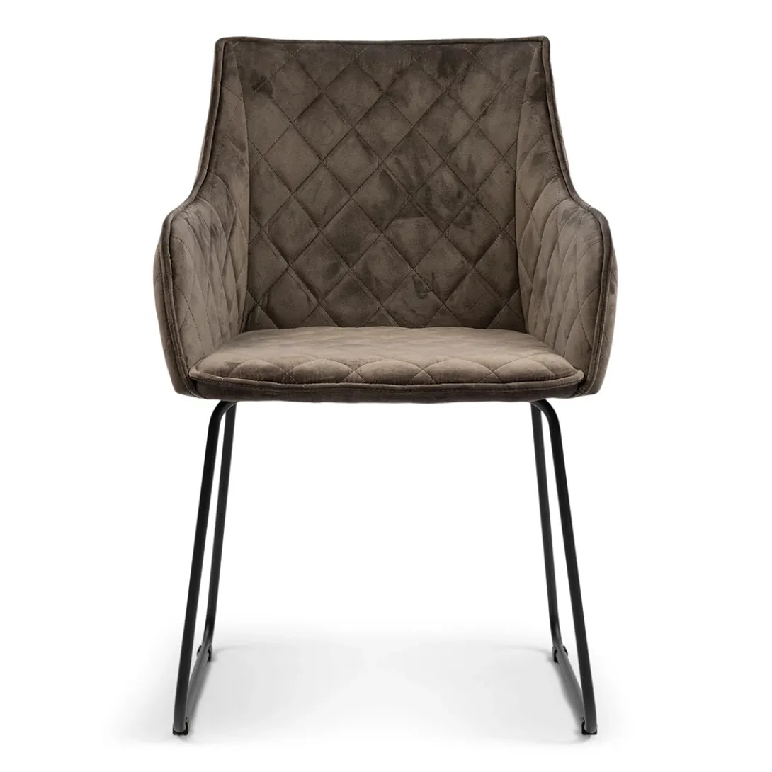 De Frisco Drive-eetkamerstoel is een stoel met een stevige zit en een degelijk onderstel van ijzer. In de stoel is een ruitpatroon gestikt. De eetkamerstoel heeft een klassiek uiterlijk en past hierdoor in ieder interieur. Deze stoel met armleuningen is verkrijgbaar in verschillende kleuren en stofferingen.