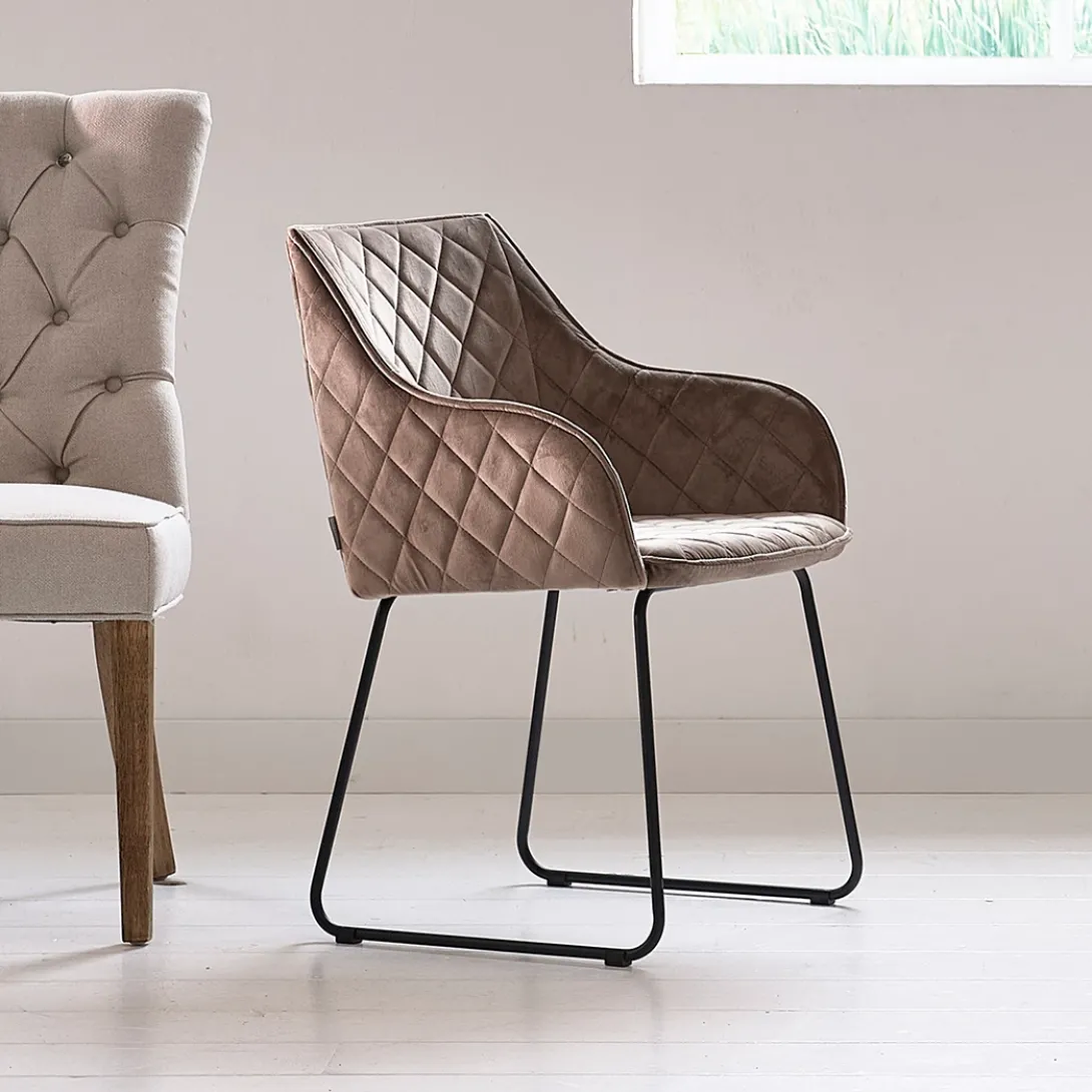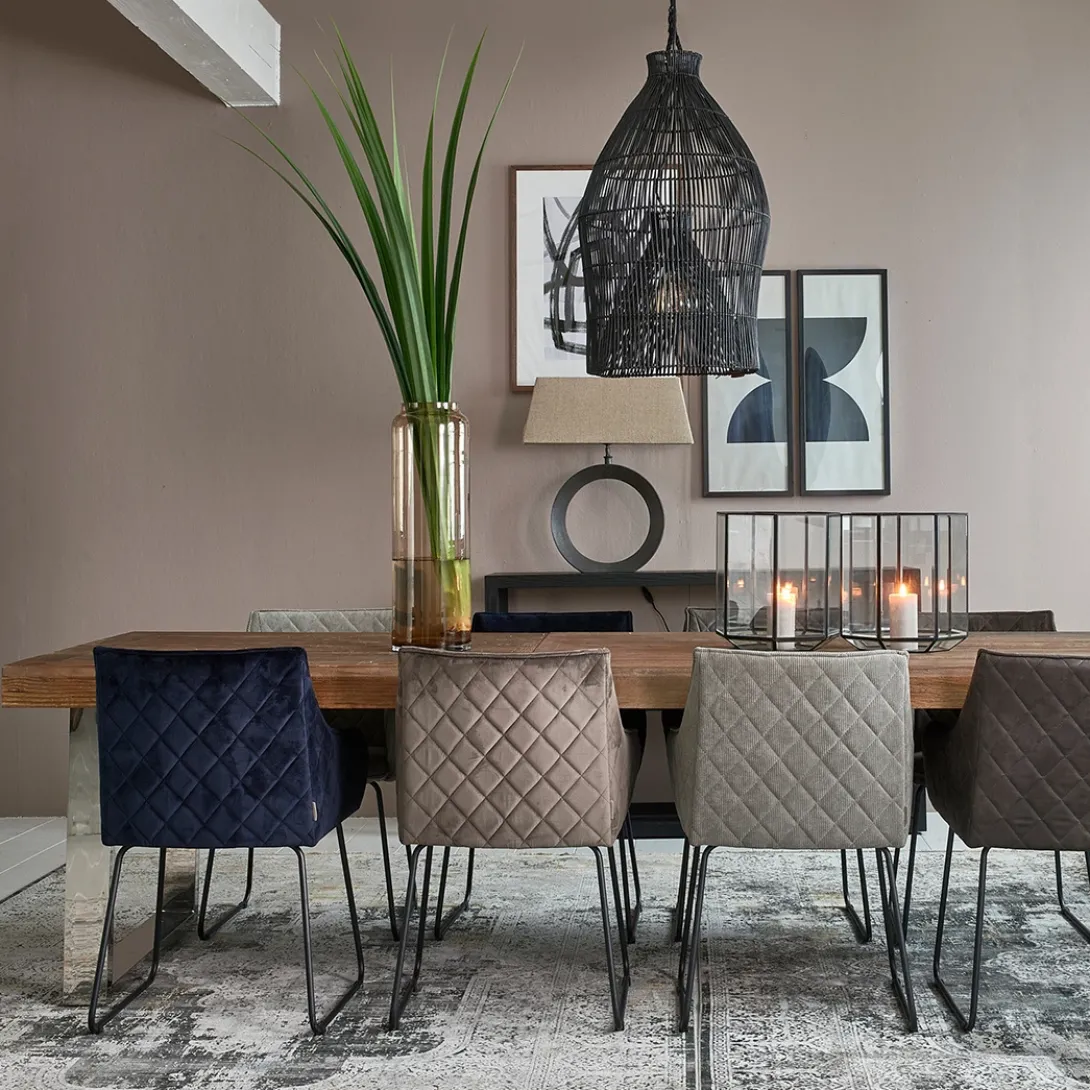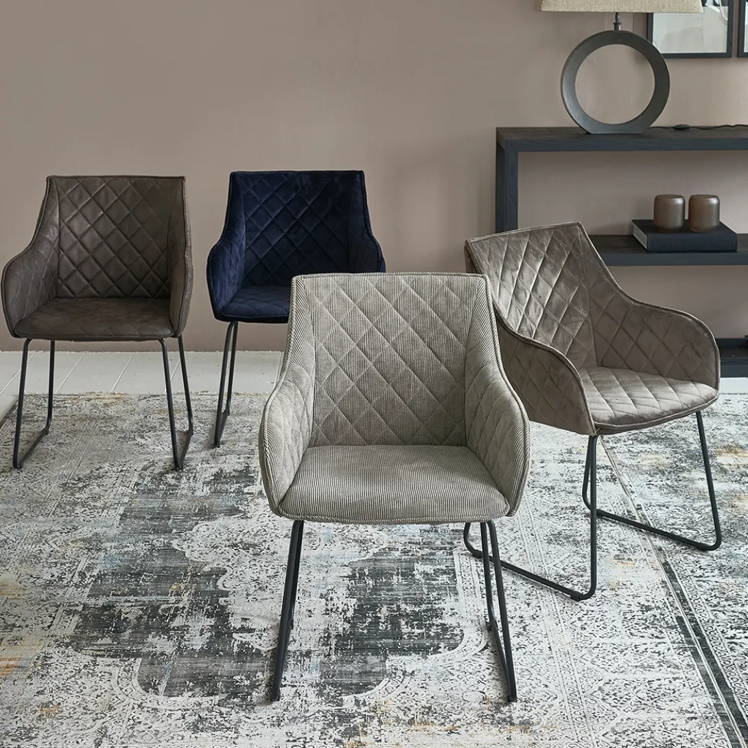 De Frisco Drive-eetkamerstoel is een stoel met een stevige zit en een degelijk onderstel van ijzer. In de stoel is een ruitpatroon gestikt. De eetkamerstoel heeft een klassiek uiterlijk en past hierdoor in ieder interieur. Deze stoel met armleuningen is verkrijgbaar in verschillende kleuren en stofferingen.
