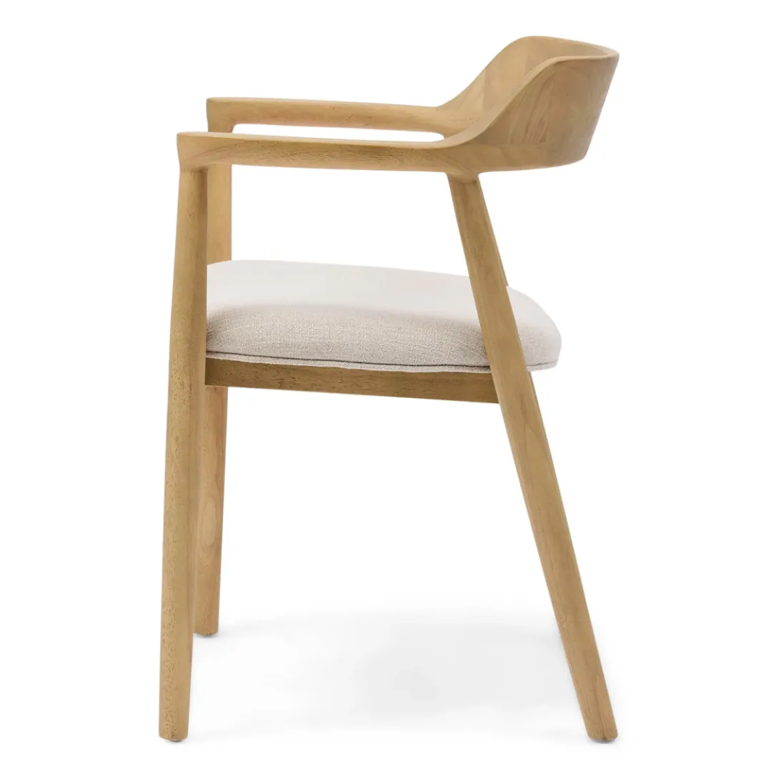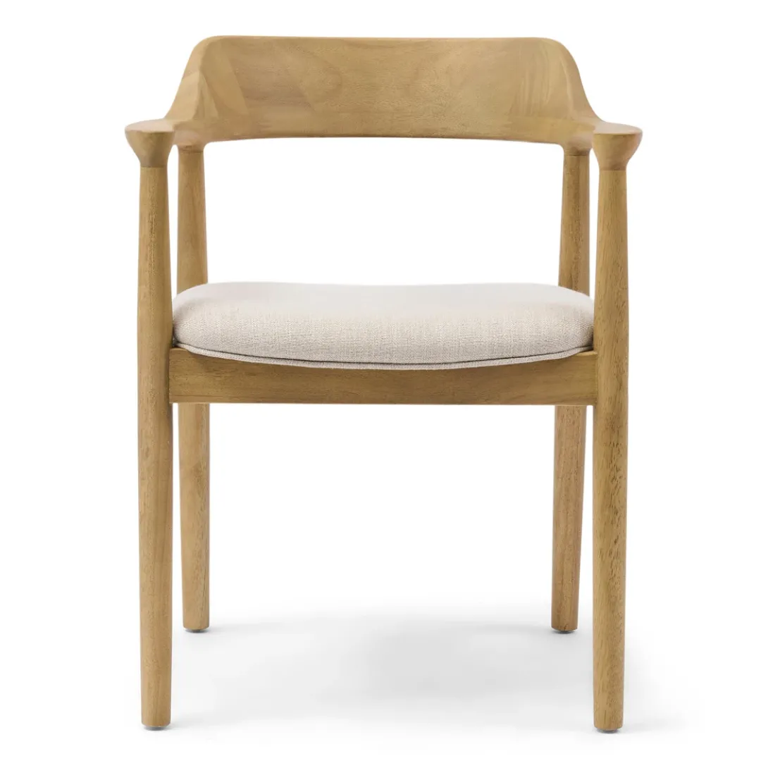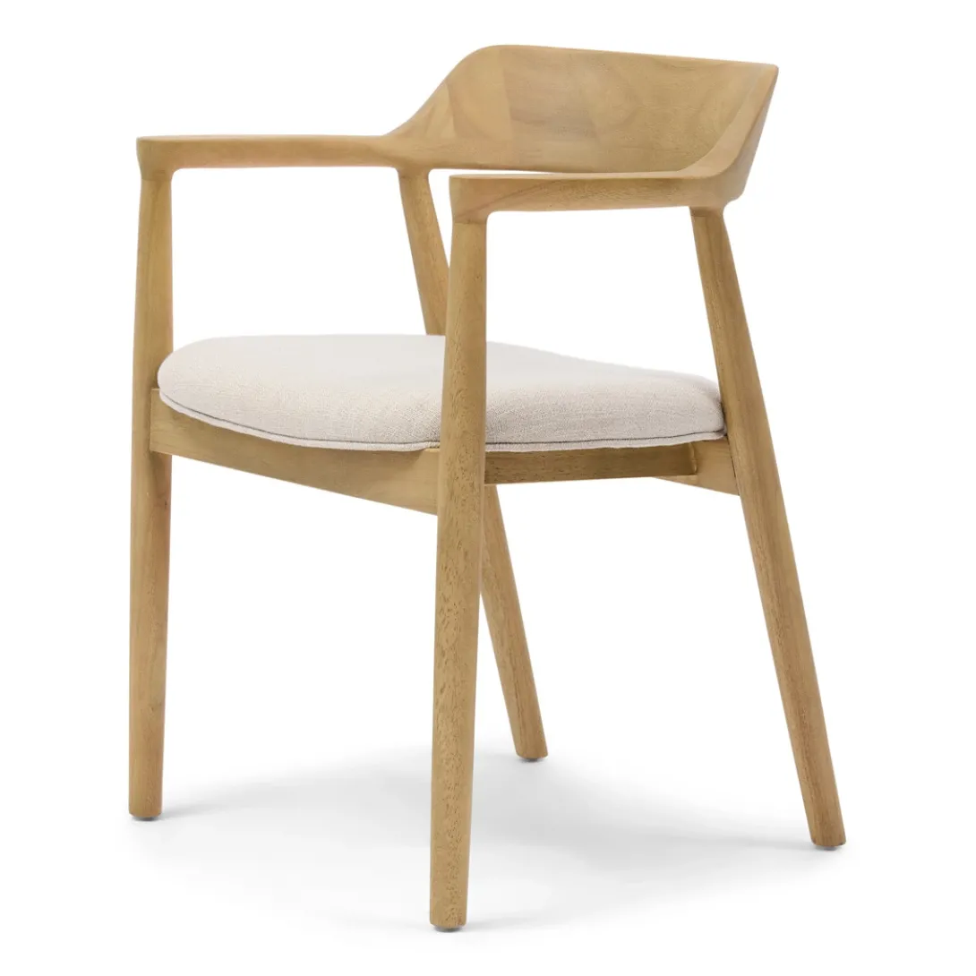 De Puglia eetkamerstoel met armleuning brengt de perfecte balans tussen luxe en huiselijke gezelligheid. Het Scandinavische design met een houten frame en comfortabele witte kussen biedt ultiem comfort voor lange diners of elegante bijeenkomsten. Het moderne, tijdloze ontwerp tilt je eetkamer naar een hoger niveau en zorgt voor een warme, uitnodigende sfeer. Een stijlvolle toevoeging die zowel comfort als klasse uitstraalt.