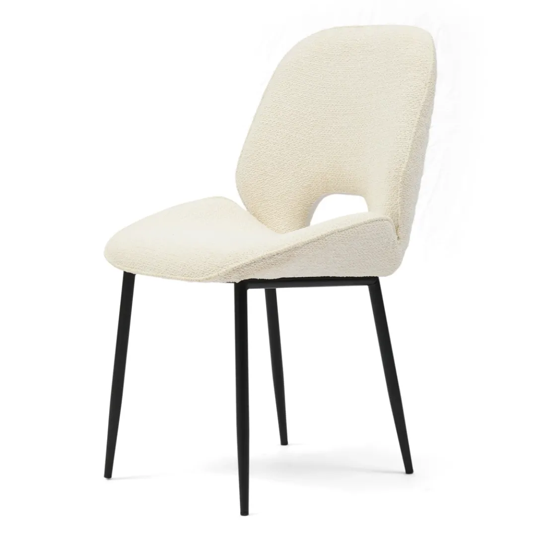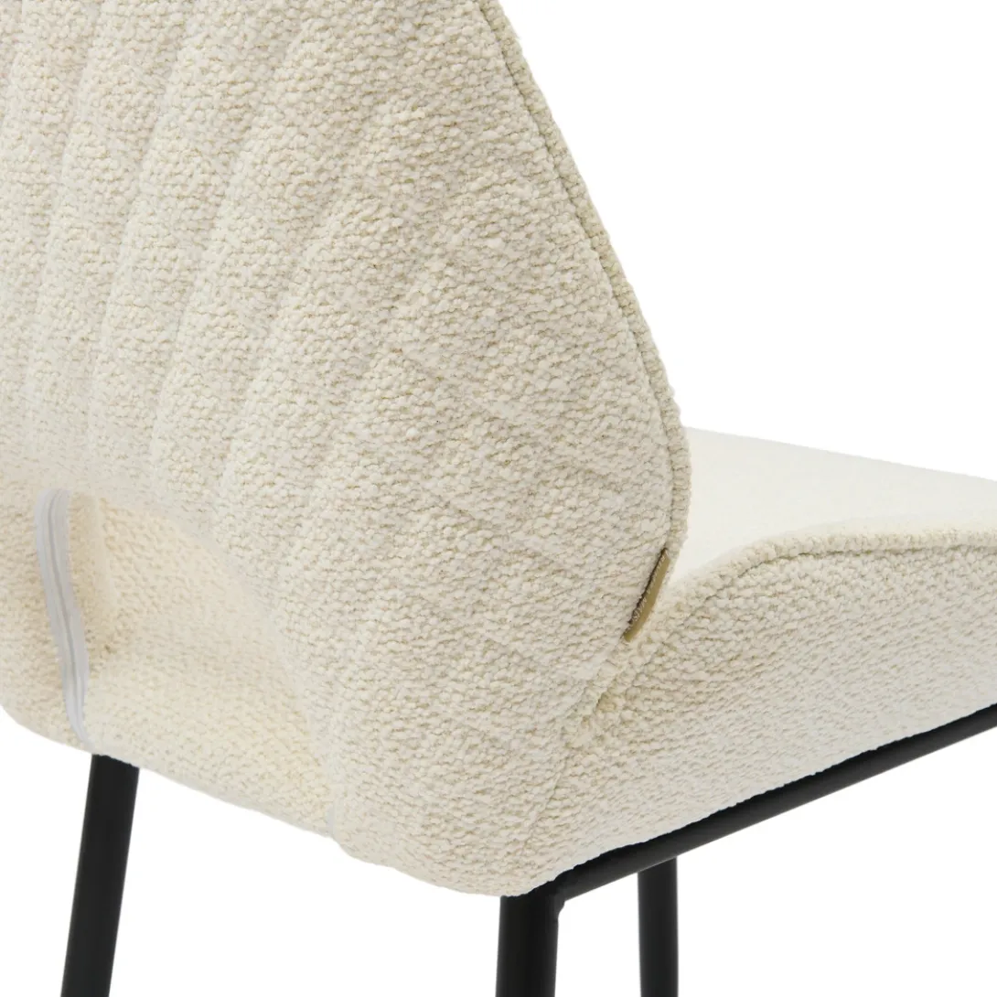 De Mr. Beekman eetkamerstoel in simply white is de perfecte combinatie van stijl en comfort. Gemaakt van peluche bouclé stof, straalt deze stoel luxe en warmte uit. De zwarte poten bieden een strak contrast met de zachte, natuurlijke tint van de stof, waardoor de stoel zich moeiteloos in verschillende interieurstijlen voegt, van modern tot klassiek. Met zijn verfijnde ontwerp en strakke lijnen voegt de eetkamerstoel niet alleen een praktische zitplaats toe, maar creëert hij ook een uitnodigende sfeer in je eetkamer.