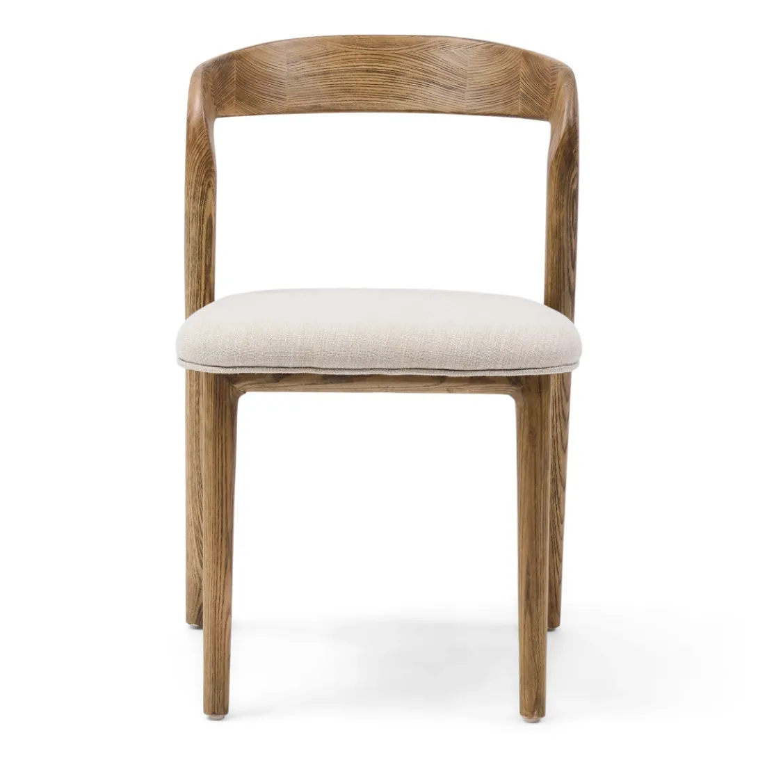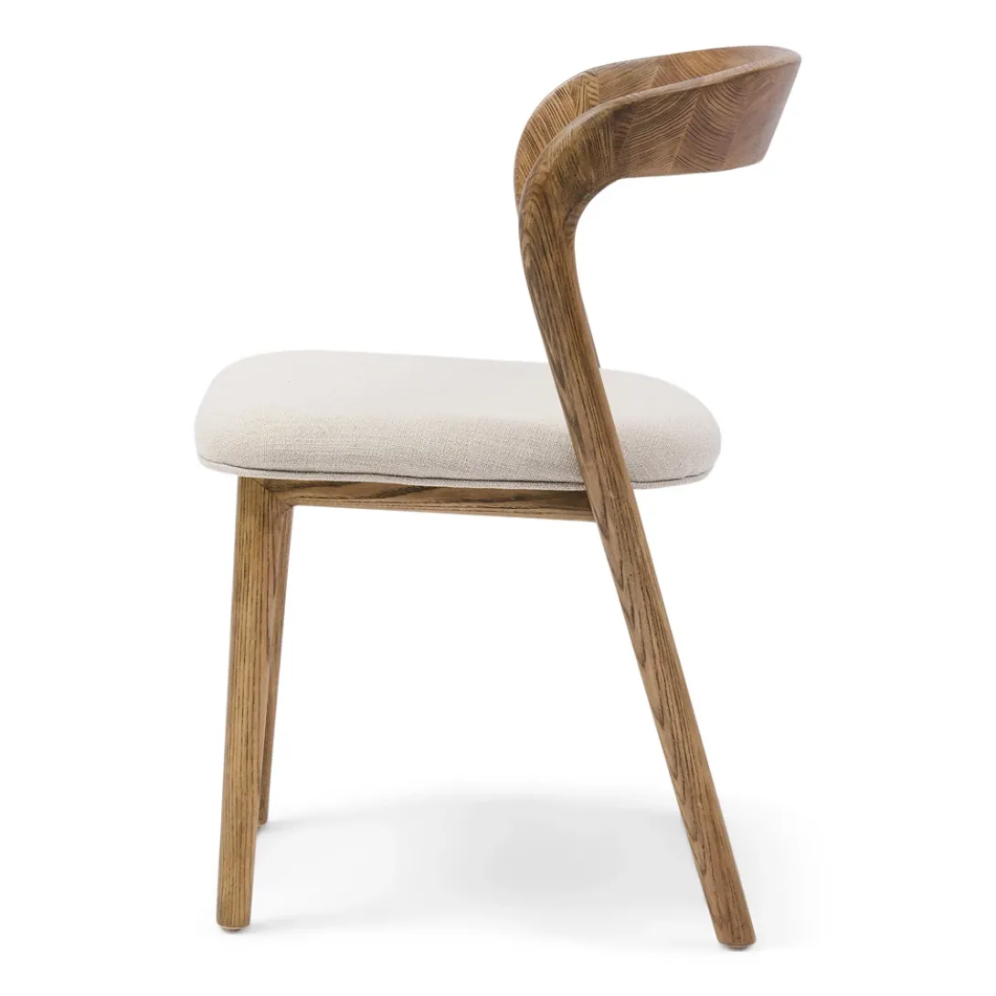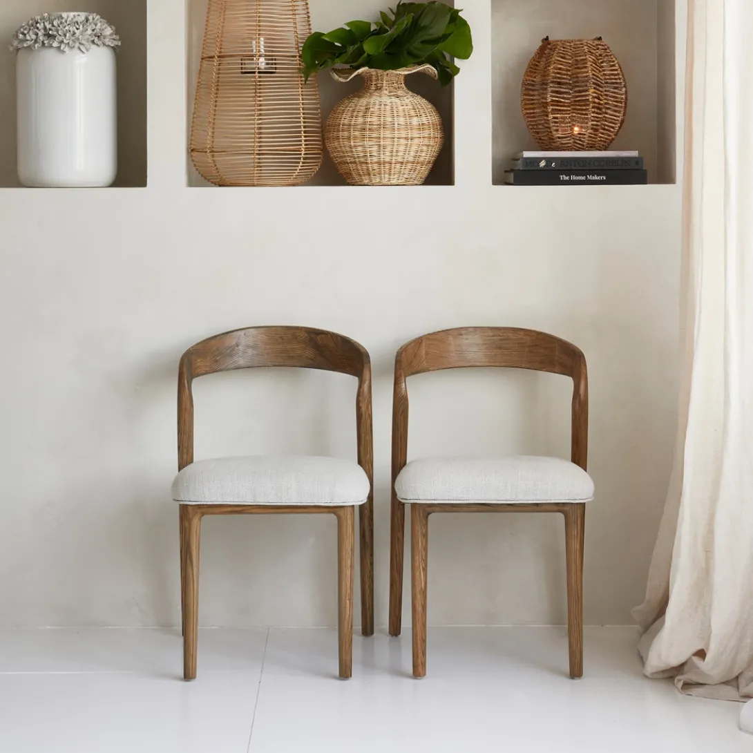 Met zijn bol lopende rugleuning biedt de Puglia eetkamerstoel extra comfort en een moderne uitstraling. Het Scandinavische ontwerp met een houten frame en een comfortabel witte kussen maakt deze stoel perfect voor lange diners of gezellige bijeenkomsten. Het tijdloze design voegt een warme, uitnodigende sfeer toe aan je eetkamer, en de ronde rugleuning zorgt voor een perfecte ondersteuning. Een stijlvolle en praktische aanvulling op je interieur.