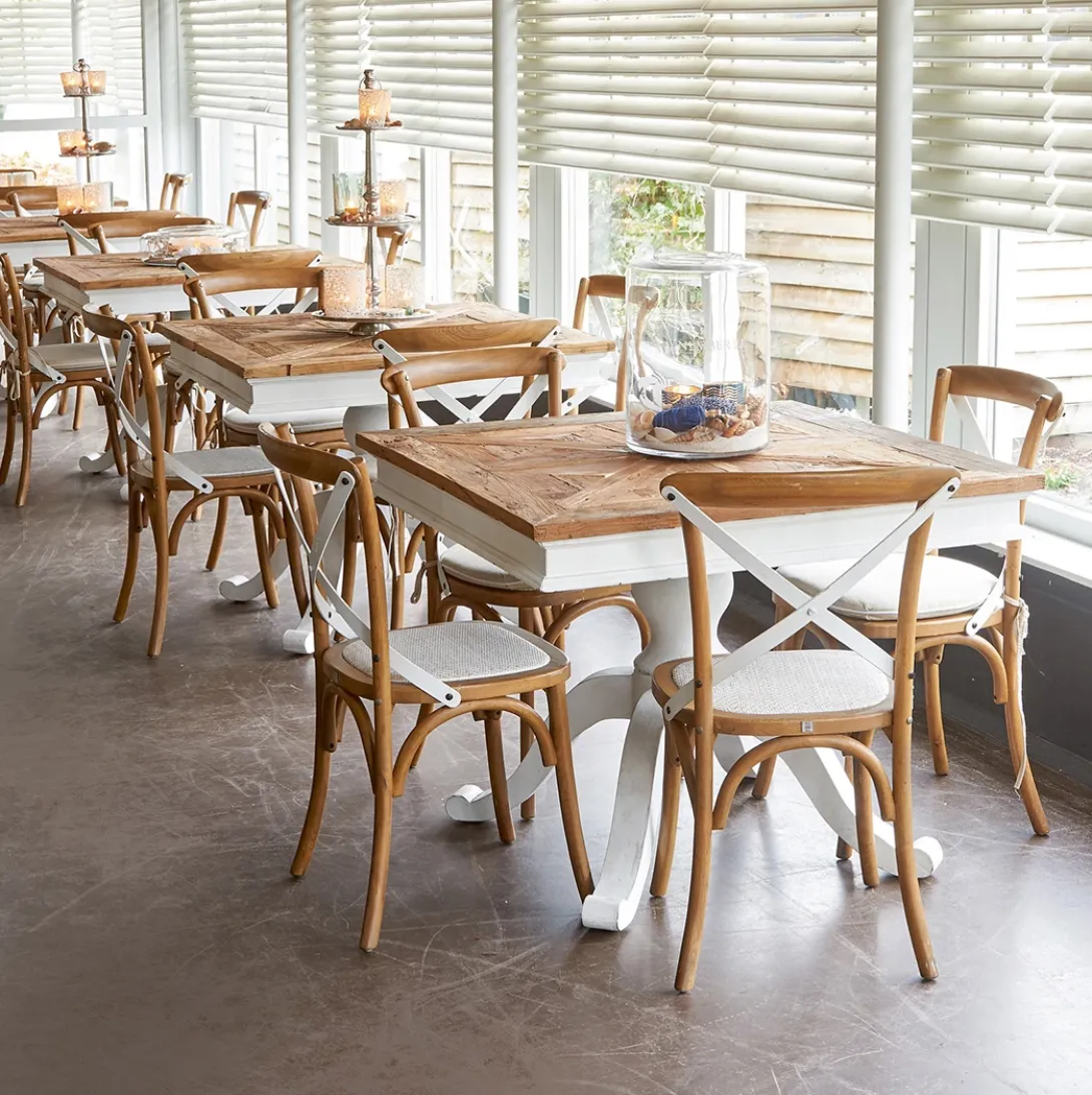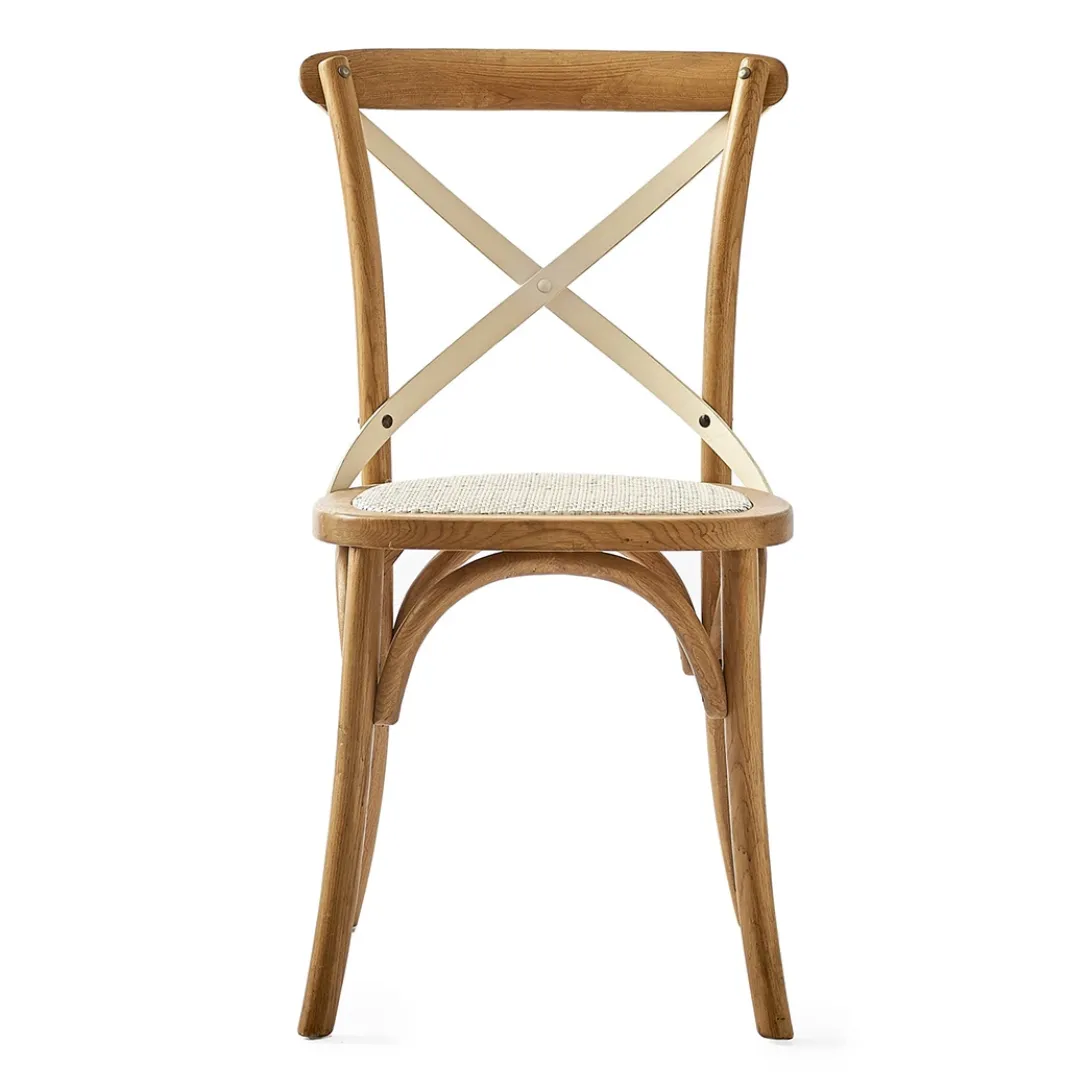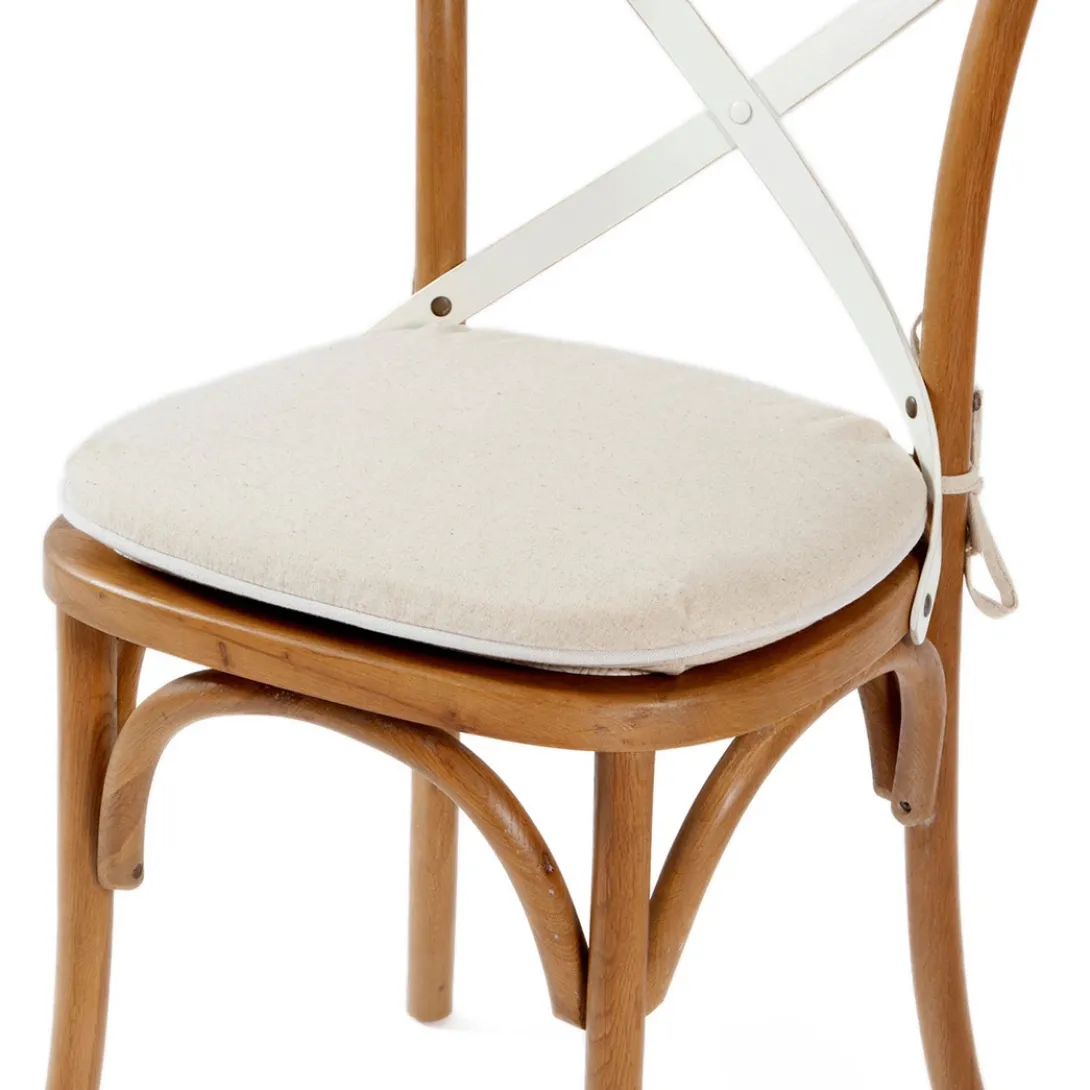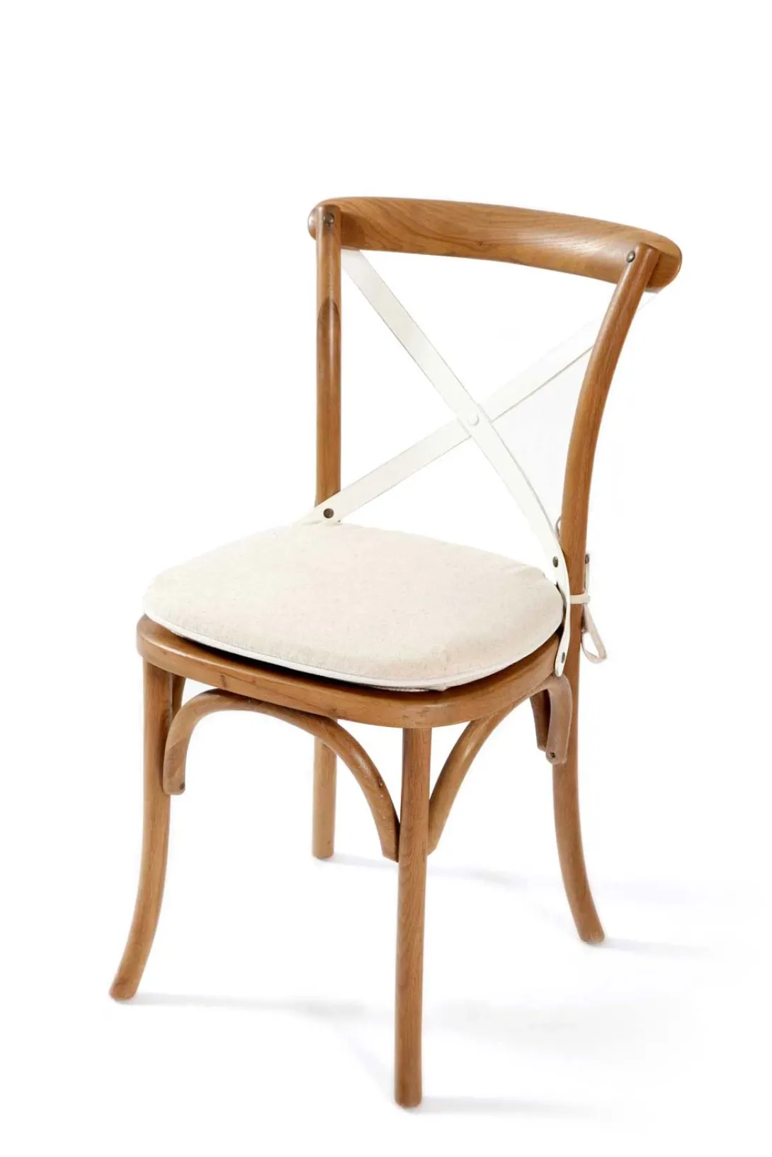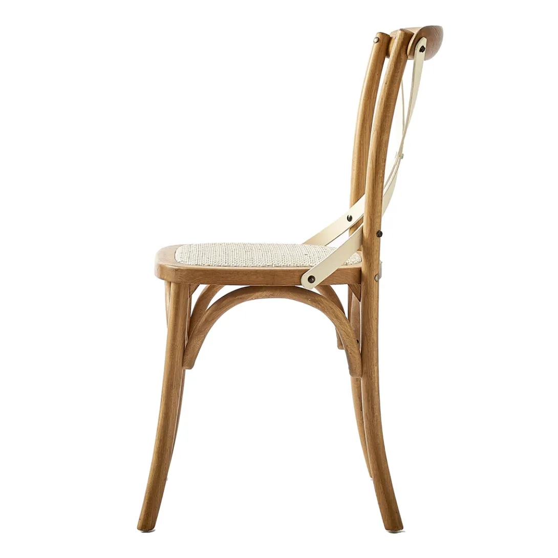 Eikenhouten stoel met gekruiste rugleuning en geweven zitting, voor extra comfort is er een bijpassend zitkussen verkrijgbaar.