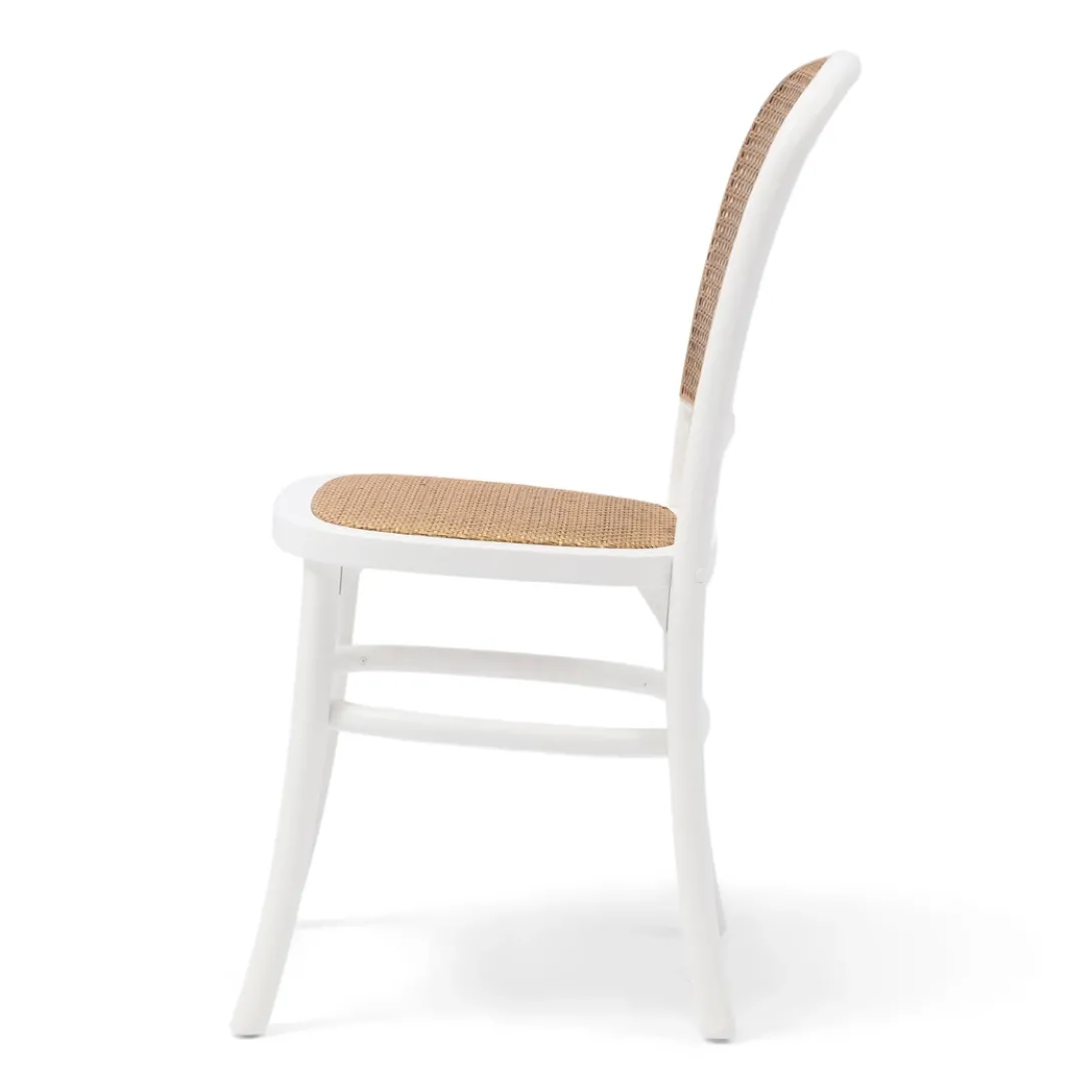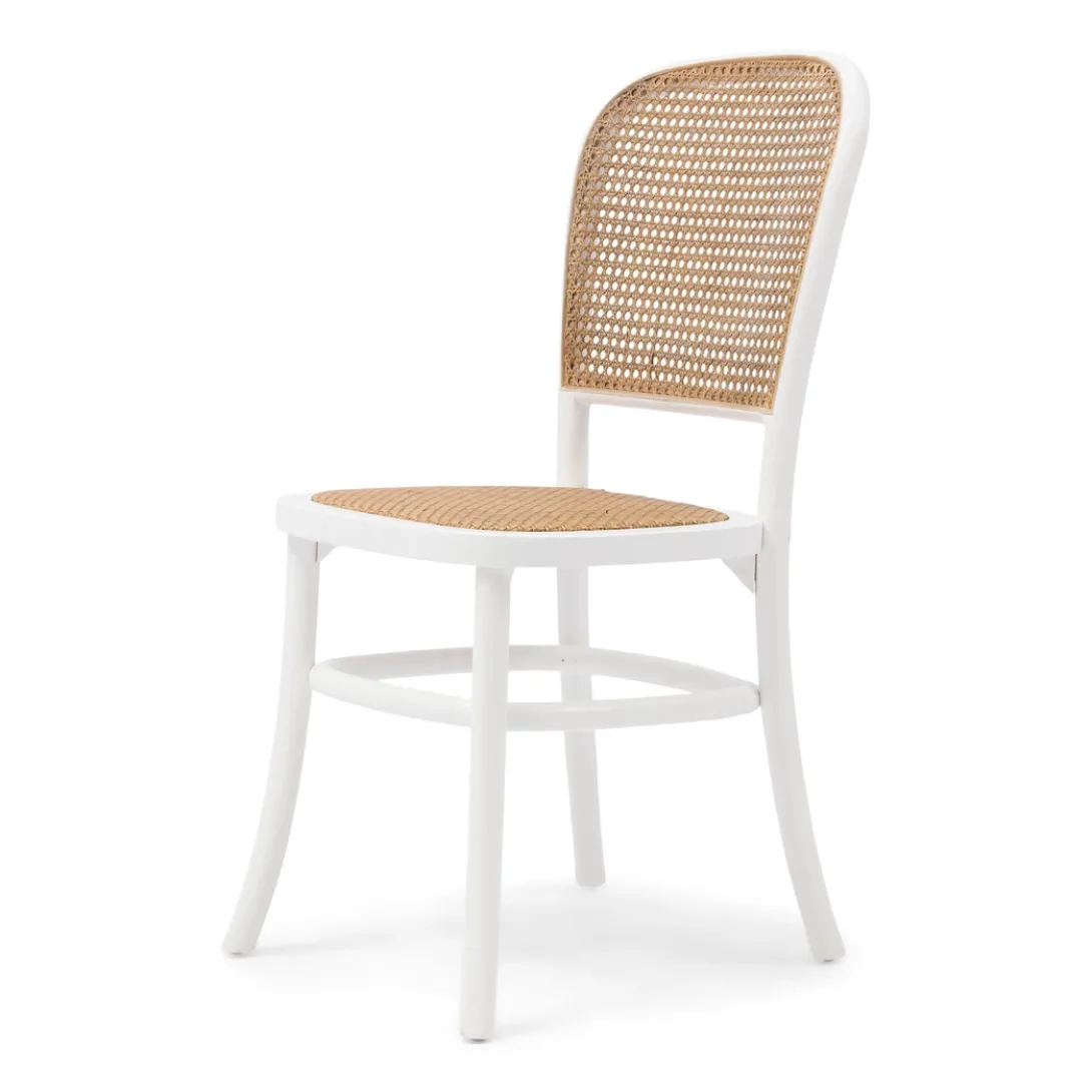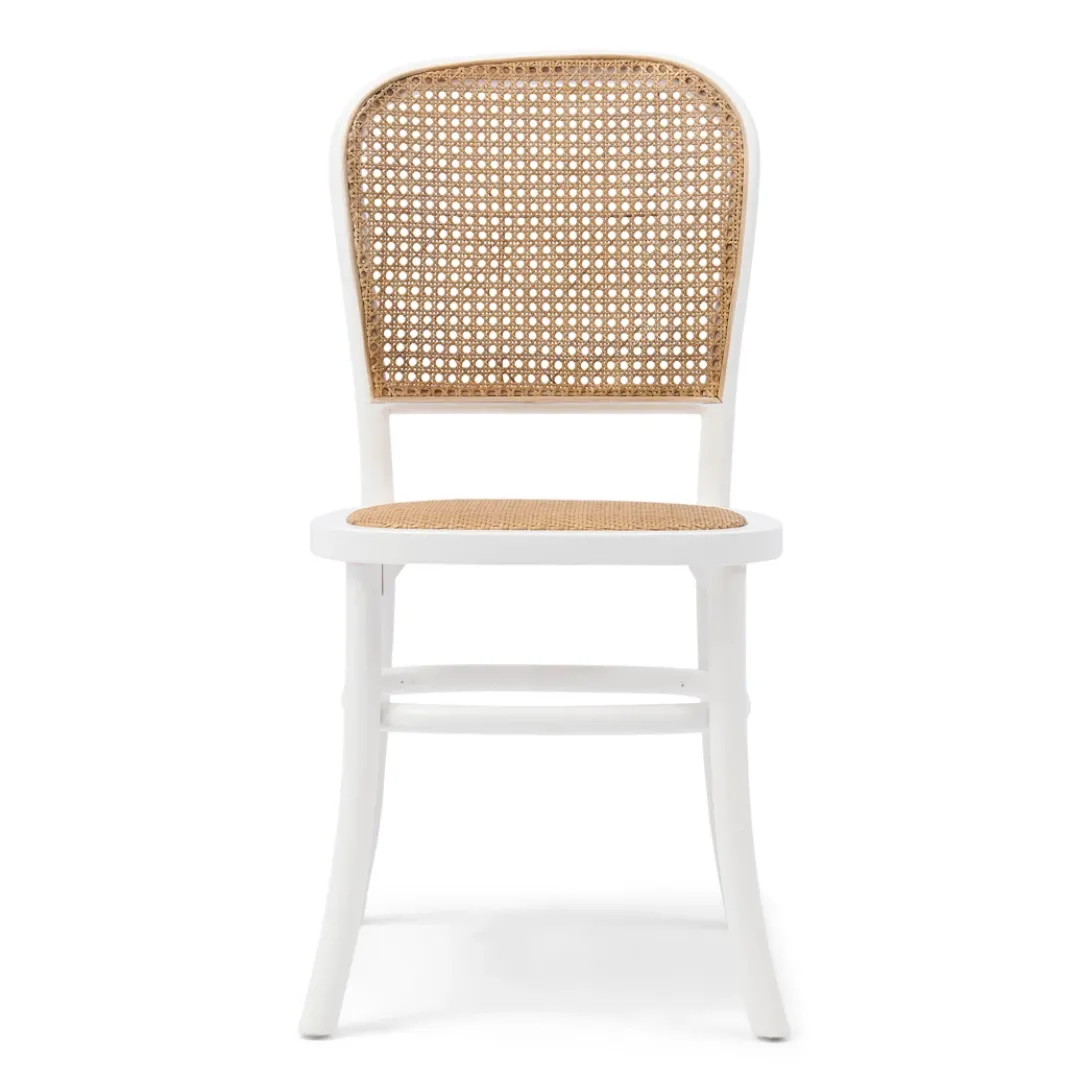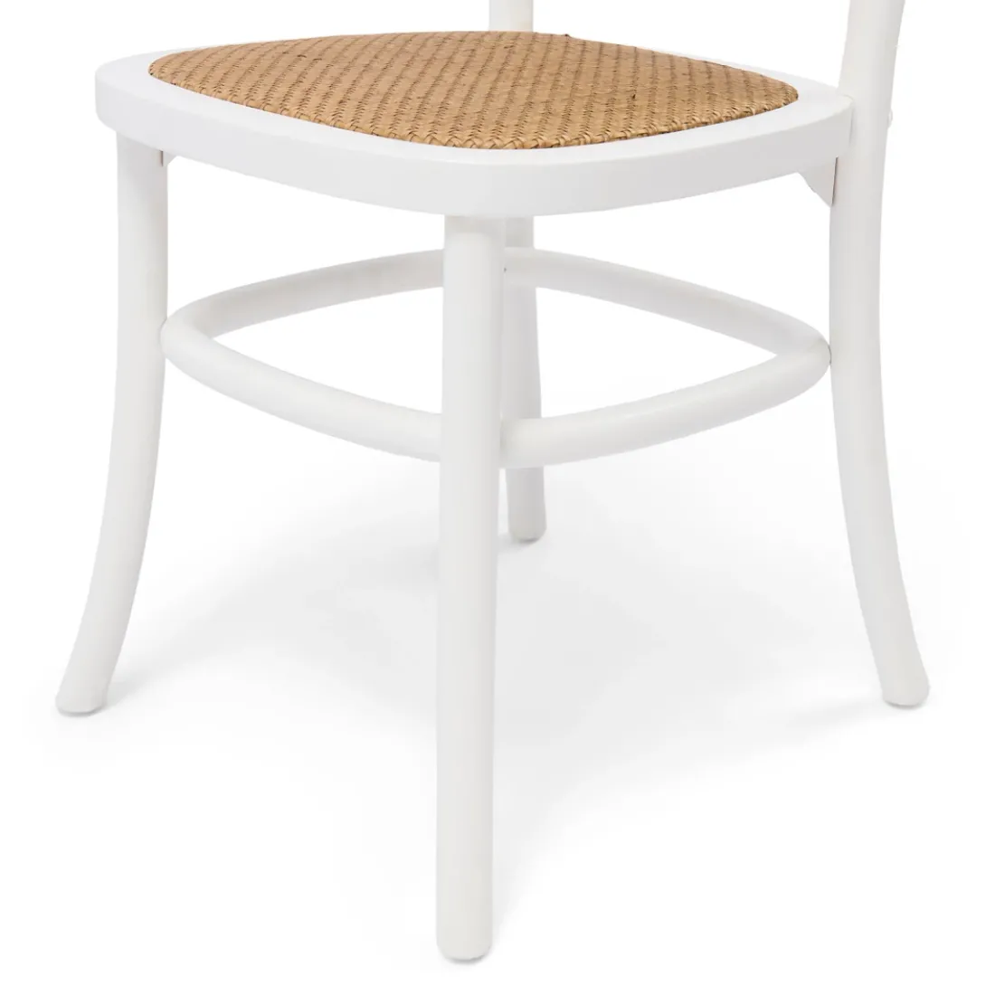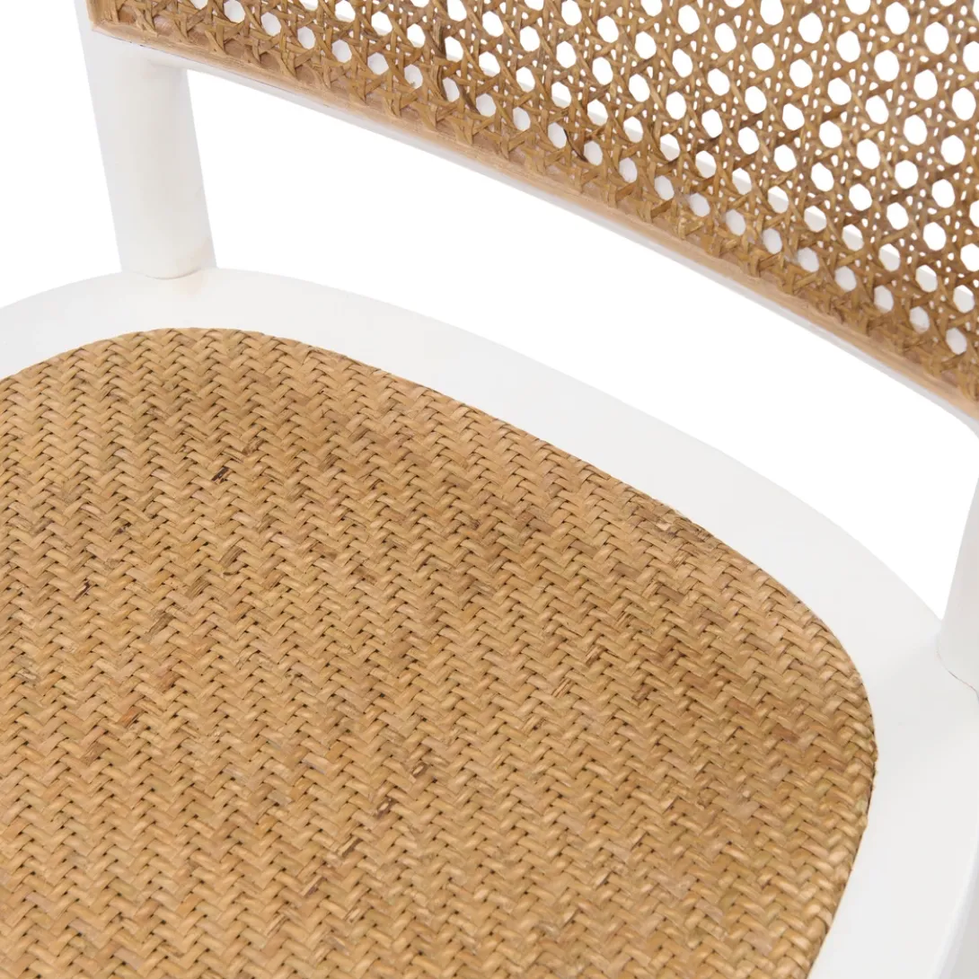 Breng een vleugje natuurlijke elegantie in je eetkamer met deze prachtige eetkamerstoel. Het witte frame en het geweven rattan webbing patroon creëren een harmonieus geheel dat zowel rustiek als modern aanvoelt. Ideaal voor lange, sfeervolle diners of als stijlvolle blikvanger in je interieur. Deze stoel straalt een verfijnde balans uit tussen comfort en stijl.