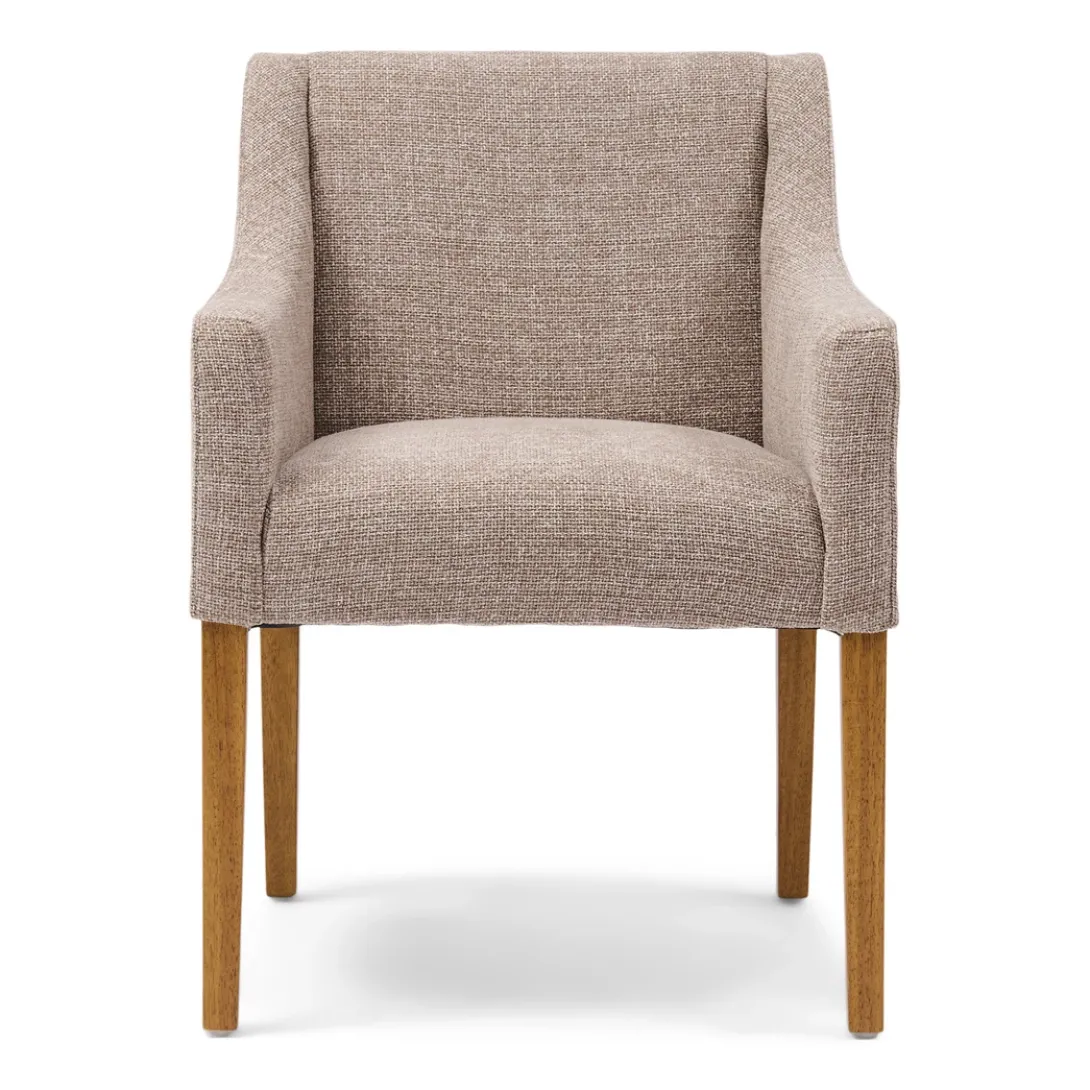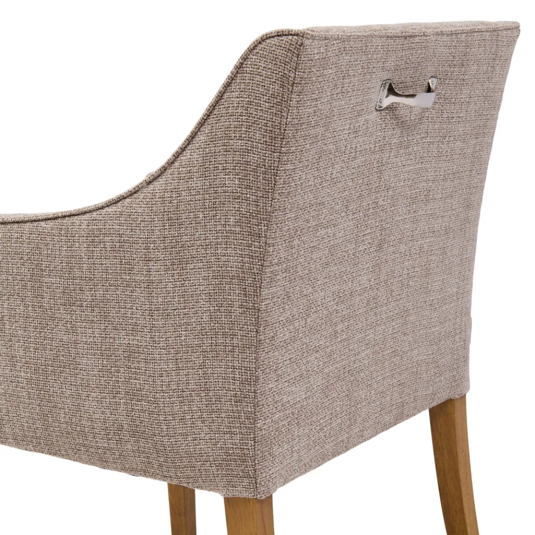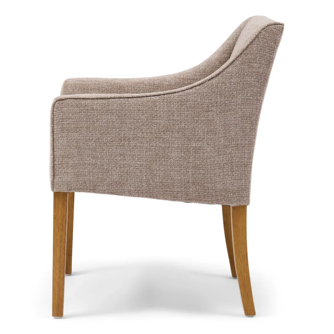 Ervaar luxe en comfort met de Savile Row eetkamerstoel. De zachte chenille jacquard stof in Bright Taupe omhult je in stijl, terwijl de strakke houten poten een moderne uitstraling geven. Een tijdloos design dat elke eetkamer transformeert in een warme, elegante ruimte.