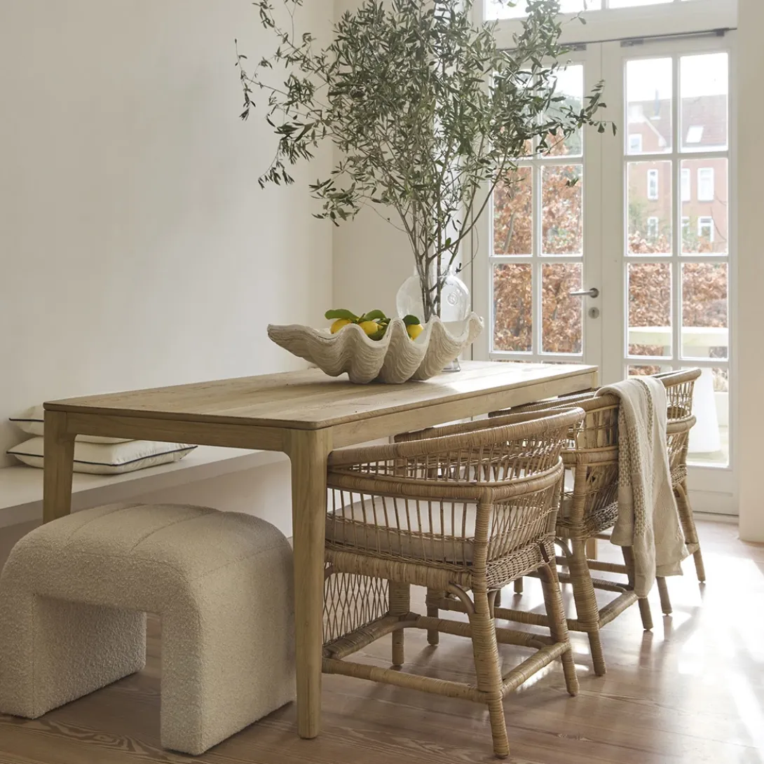 De Victoria Falls Dining Armchair is een luxe eetkamerstoel gemaakt van rattan. De rattan stoel wordt helemaal met de hand gemaakt en gevlochten in Indonesië. De stoel heeft armleuningen die doorlopen in de rugleuning. De comfortabele eetkamerstoel wordt geleverd met lichtgekleurd, katoenen kussen.