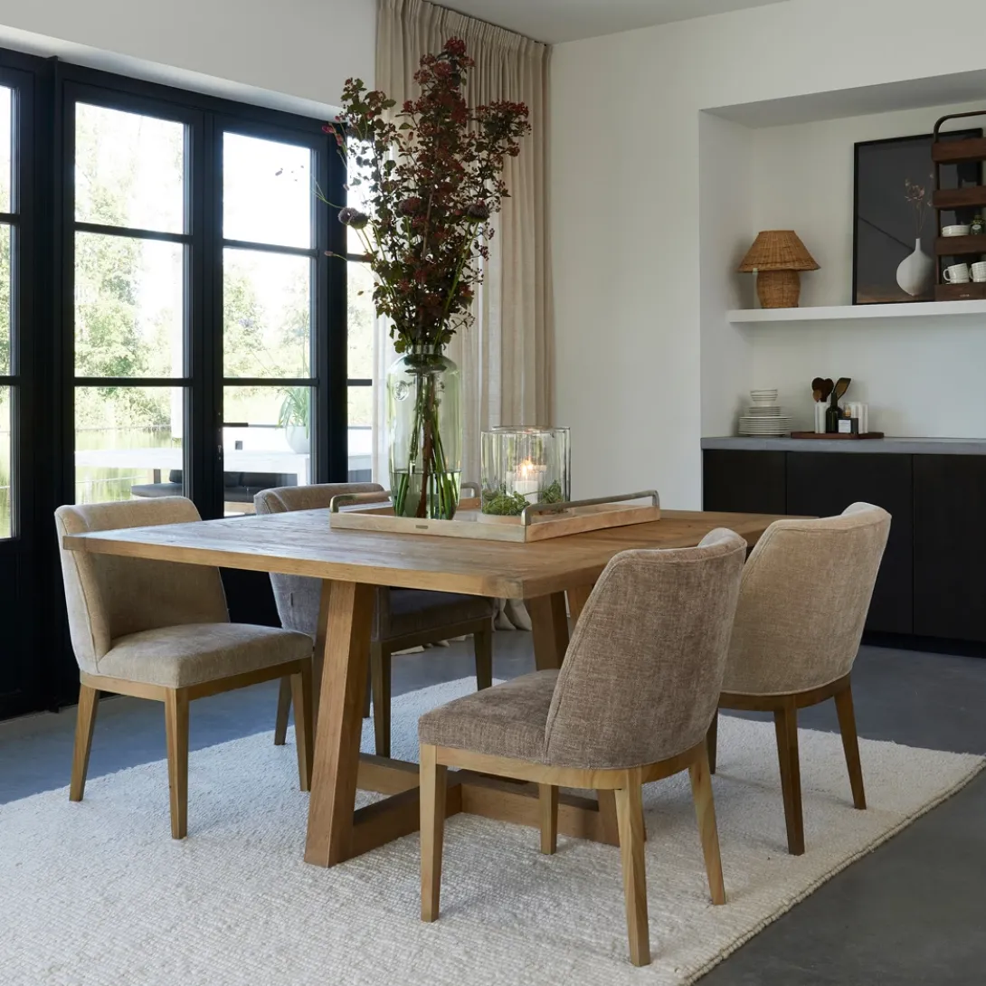 - Breng een vleugje eilandstijl in je interieur met de Bali eettafel! Deze unieke tafel biedt een eigentijdse uitstraling en belooft jarenlang plezier. De schuine verticale poten geven de tafel een speelse touch, terwijl het essenhout met zijn doorleefde look zorgt voor een natuurlijke charme. Het vierkante tafelblad met prachtige houtnerven voegt een elegante, robuuste uitstraling toe.