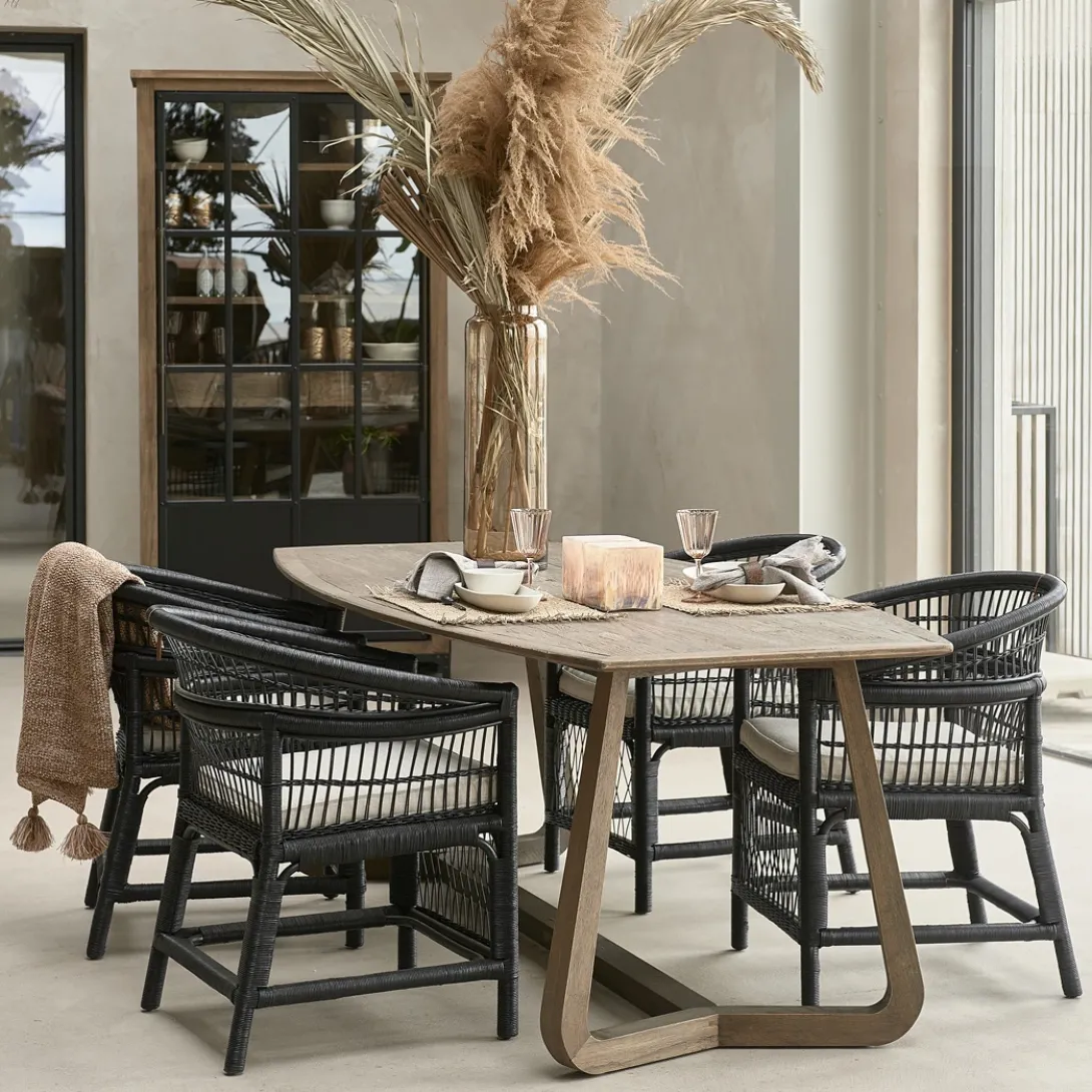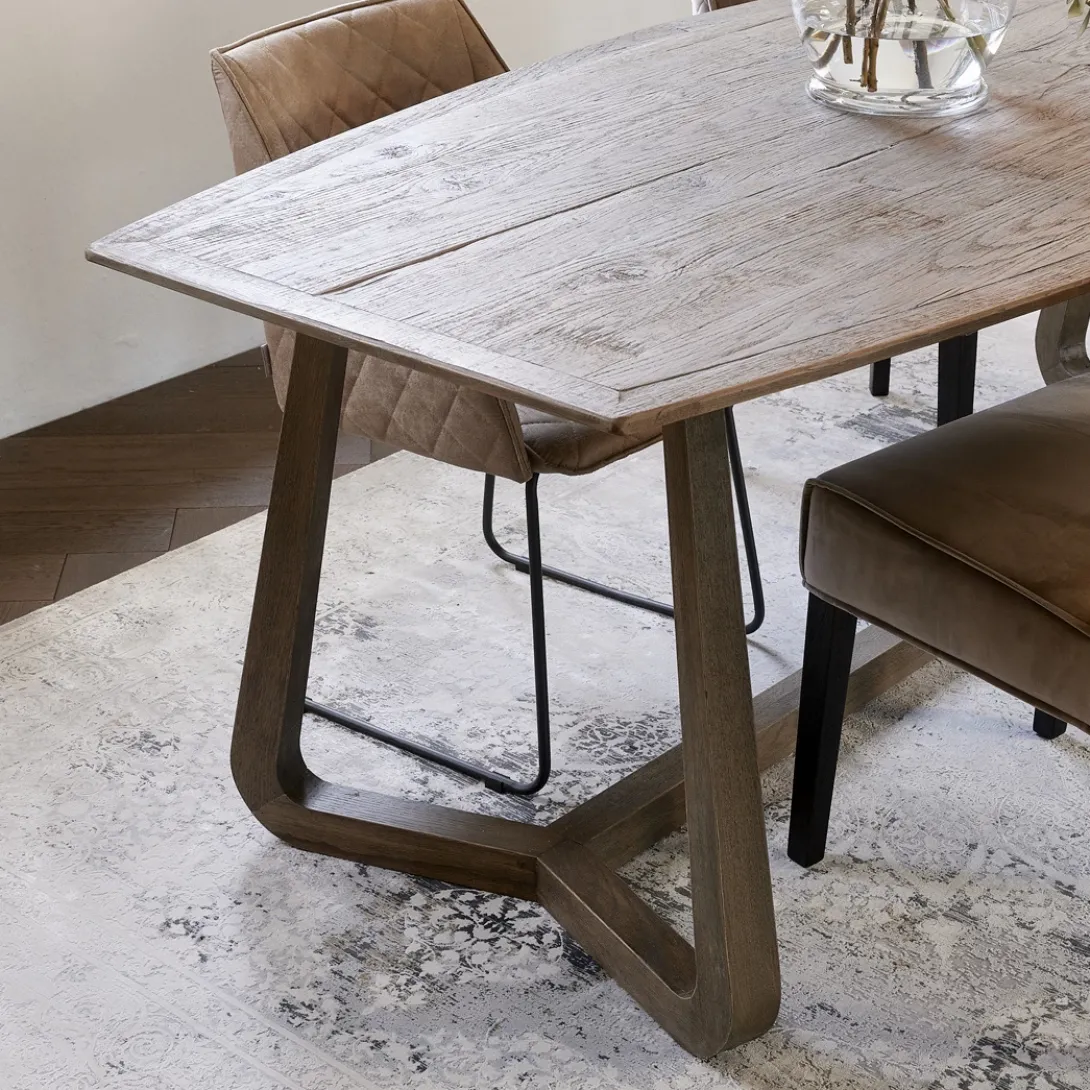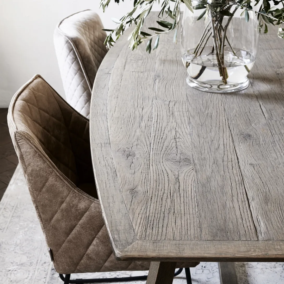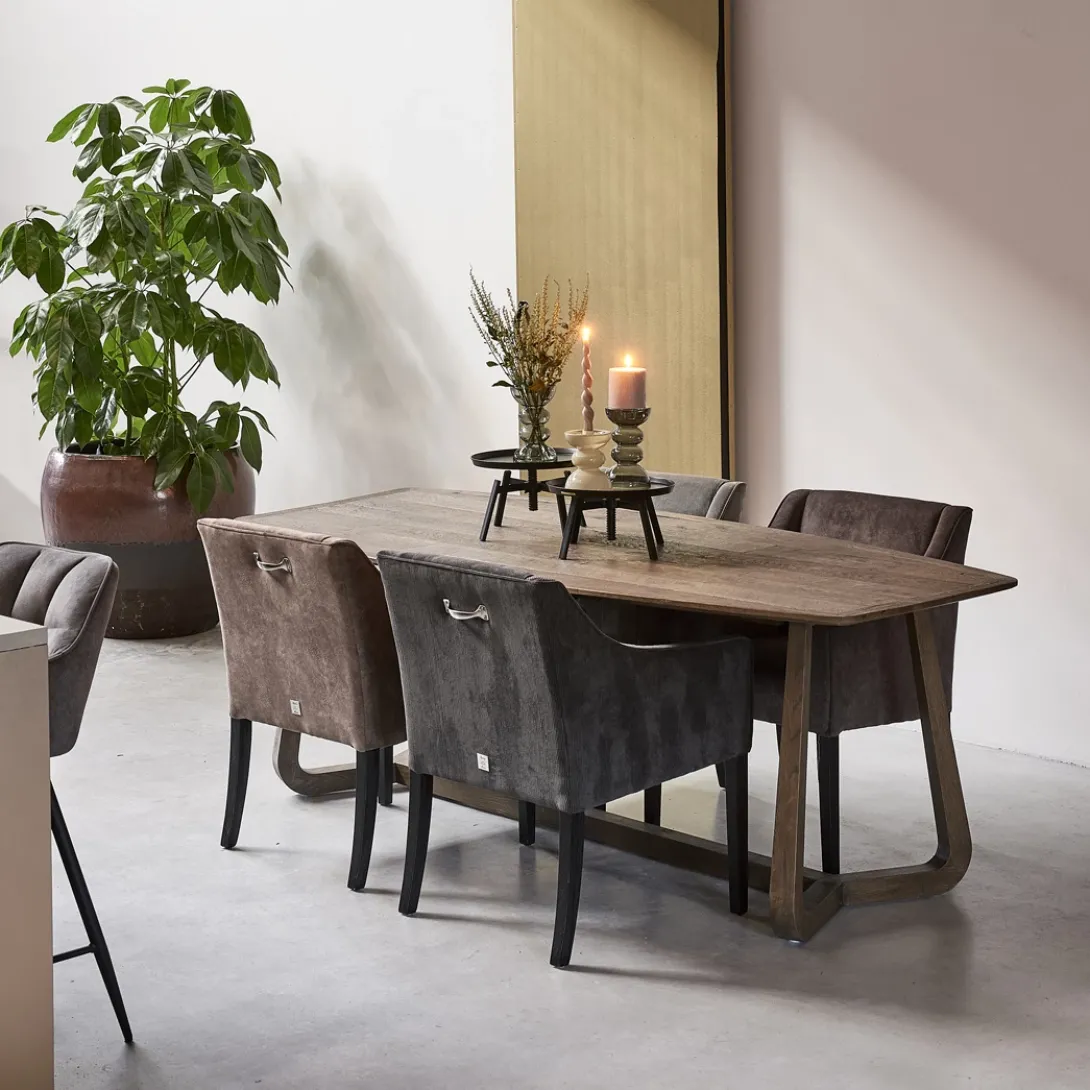 De Miller Dining Table is een nieuw model eettafel met ronde, organische vormen. Deze komen zowel in het blad als in het onderstel tecarpet. De vier tafelpoten komen samen en vormen een stevig frame. Het blad is gemaakt van gerecycled eikenhout en het onderstel van nieuw eikenhout.