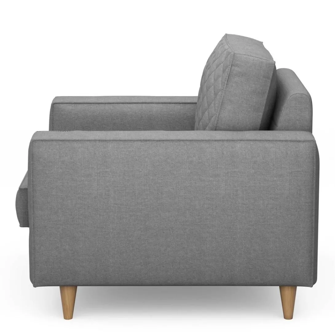 De Kendall Armchair, uitgevoerd in stevig grijs katoen, is een mooie basic voor de living. Met de strakke lijnen van zowel de rug- als de armleuningen staat hij goed in een modern interieur. De schuine afgeronde pootjes geven de fauteuil net even die retro-uitstraling, waardoor hij ook in een meer vintage of industrieel interieur een plekje kan vinden.