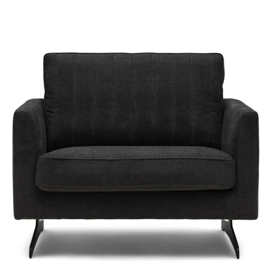 The Camille-stoel met armleuningen is een heerlijk comfortabele stoel voor in de zitkamer. Het draaibare rugkussen, met een egale zijde en een zijde met verticale stiksels, maakt het een bijzondere stoel die naar ieders smaak aan te passen is. De Camille is verkrijgbaar in verschillende kleuren en stofferingen.