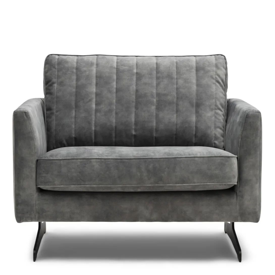 The Camille-stoel met armleuningen is een heerlijk comfortabele stoel voor in de zitkamer. Het draaibare rugkussen, met een egale zijde en een zijde met verticale stiksels, maakt het een bijzondere stoel die naar ieders smaak aan te passen is. De Camille is verkrijgbaar in verschillende kleuren en stofferingen.