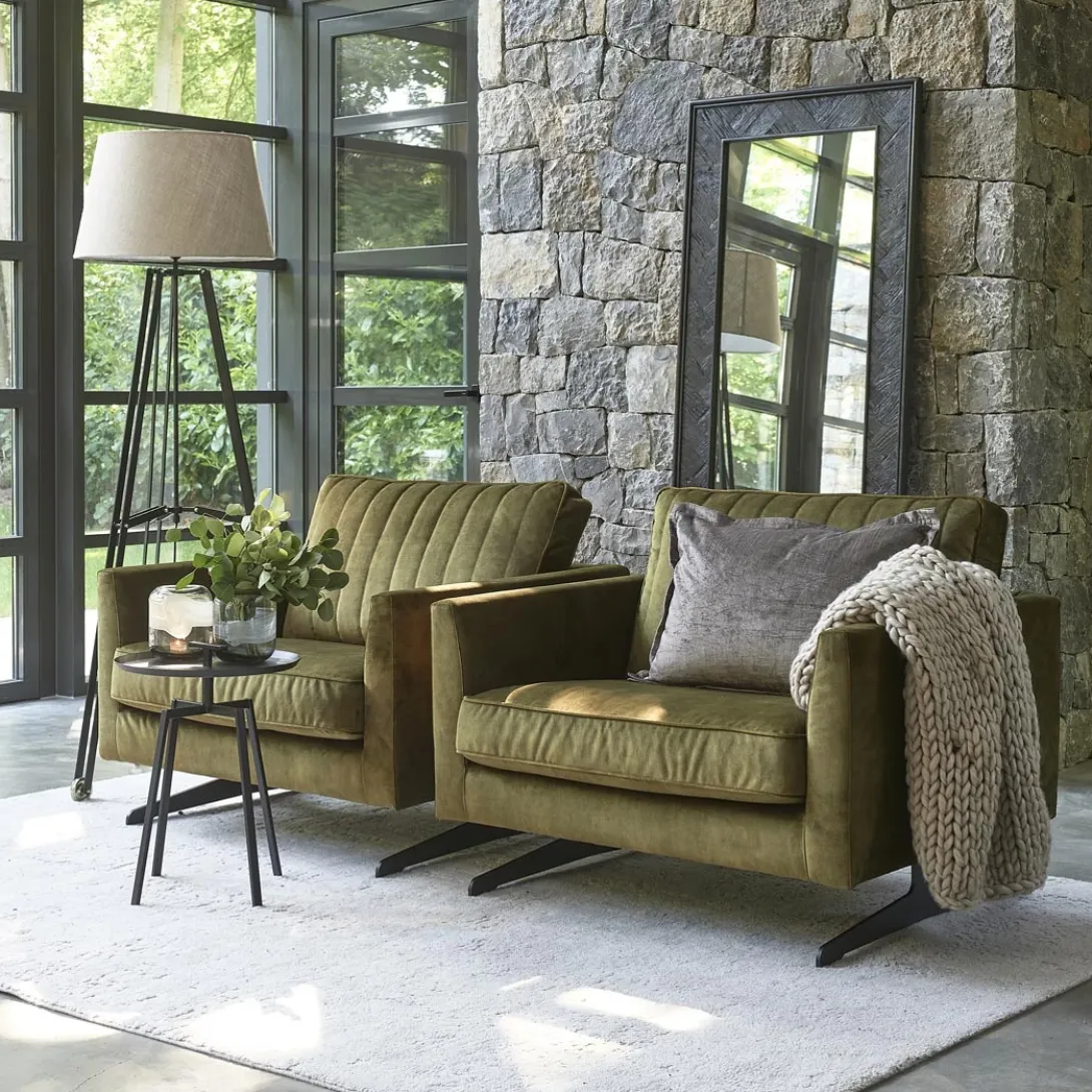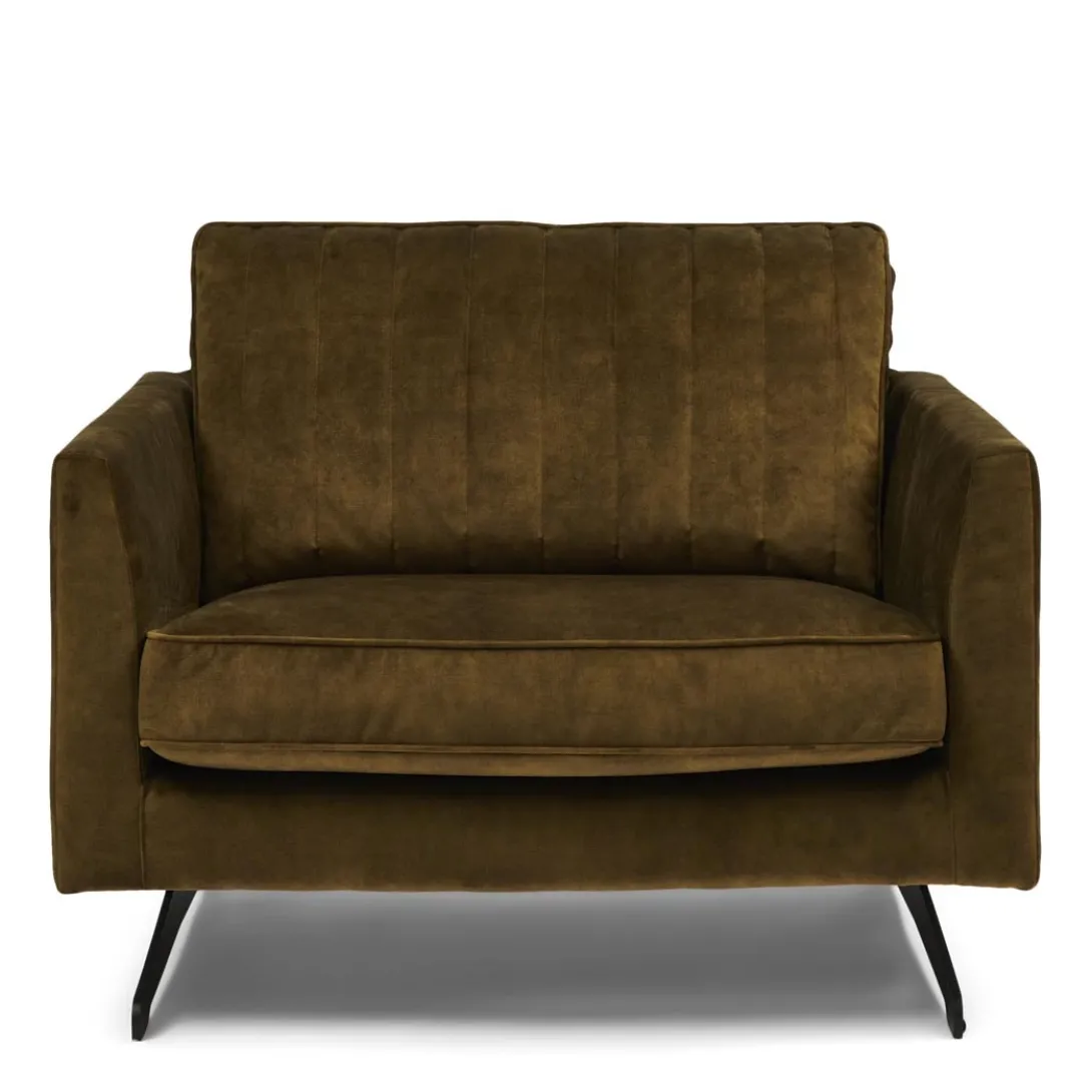 The Camille-stoel met armleuningen is een heerlijk comfortabele stoel voor in de zitkamer. Het draaibare rugkussen, met een egale zijde en een zijde met verticale stiksels, maakt het een bijzondere stoel die naar ieders smaak aan te passen is. De Camille is verkrijgbaar in verschillende kleuren en stofferingen.
