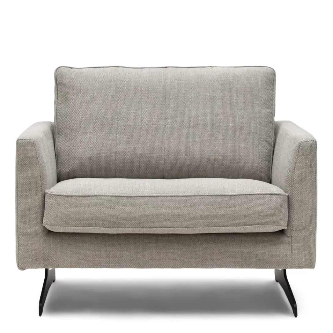 The Camille-stoel met armleuningen is een heerlijk comfortabele stoel voor in de zitkamer. Het draaibare rugkussen, met een egale zijde en een zijde met verticale stiksels, maakt het een bijzondere stoel die naar ieders smaak aan te passen is. De Camille is verkrijgbaar in verschillende kleuren en stofferingen.