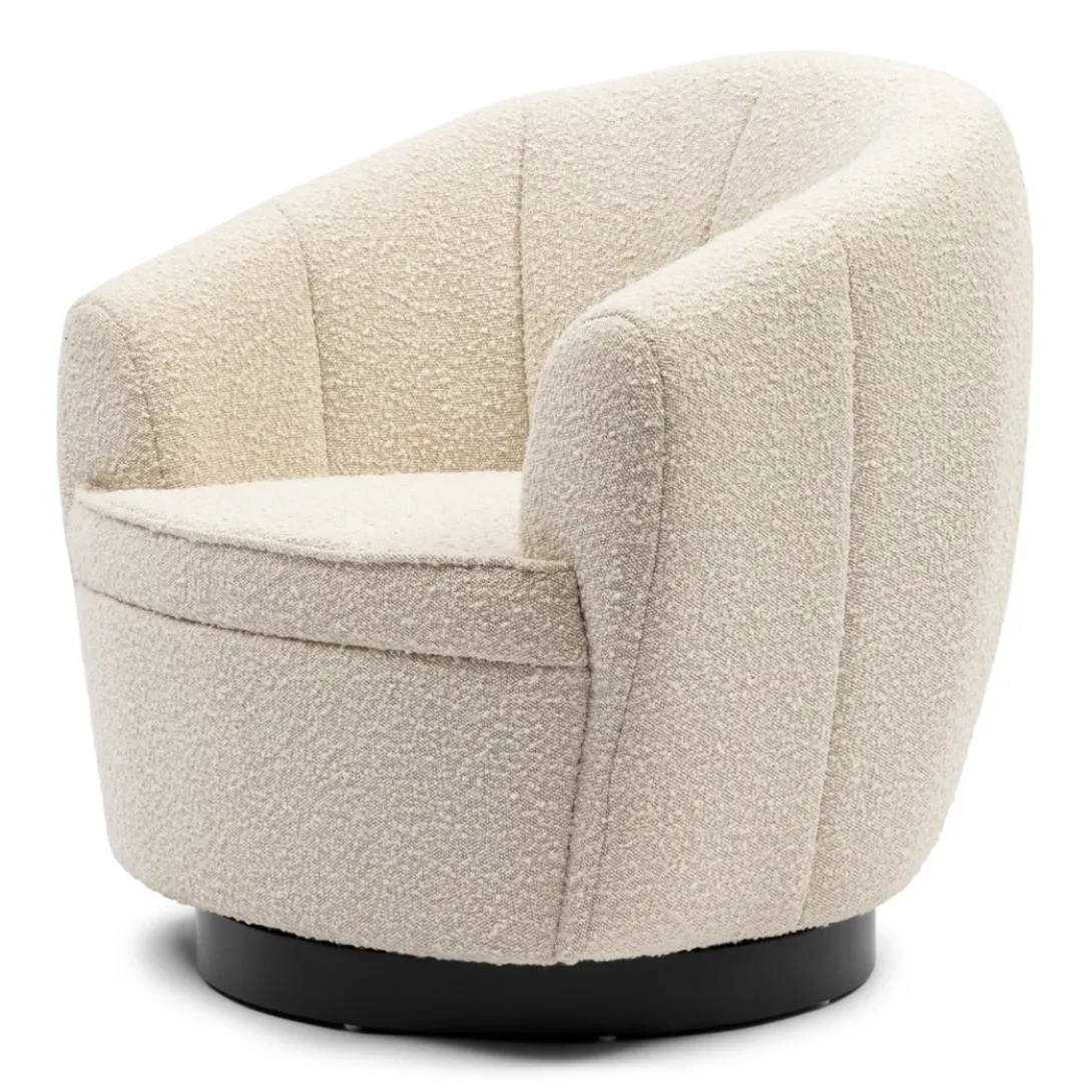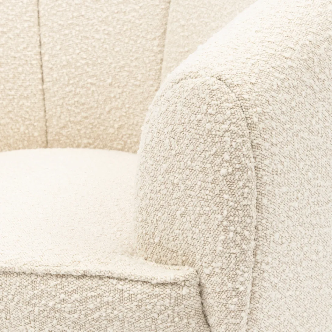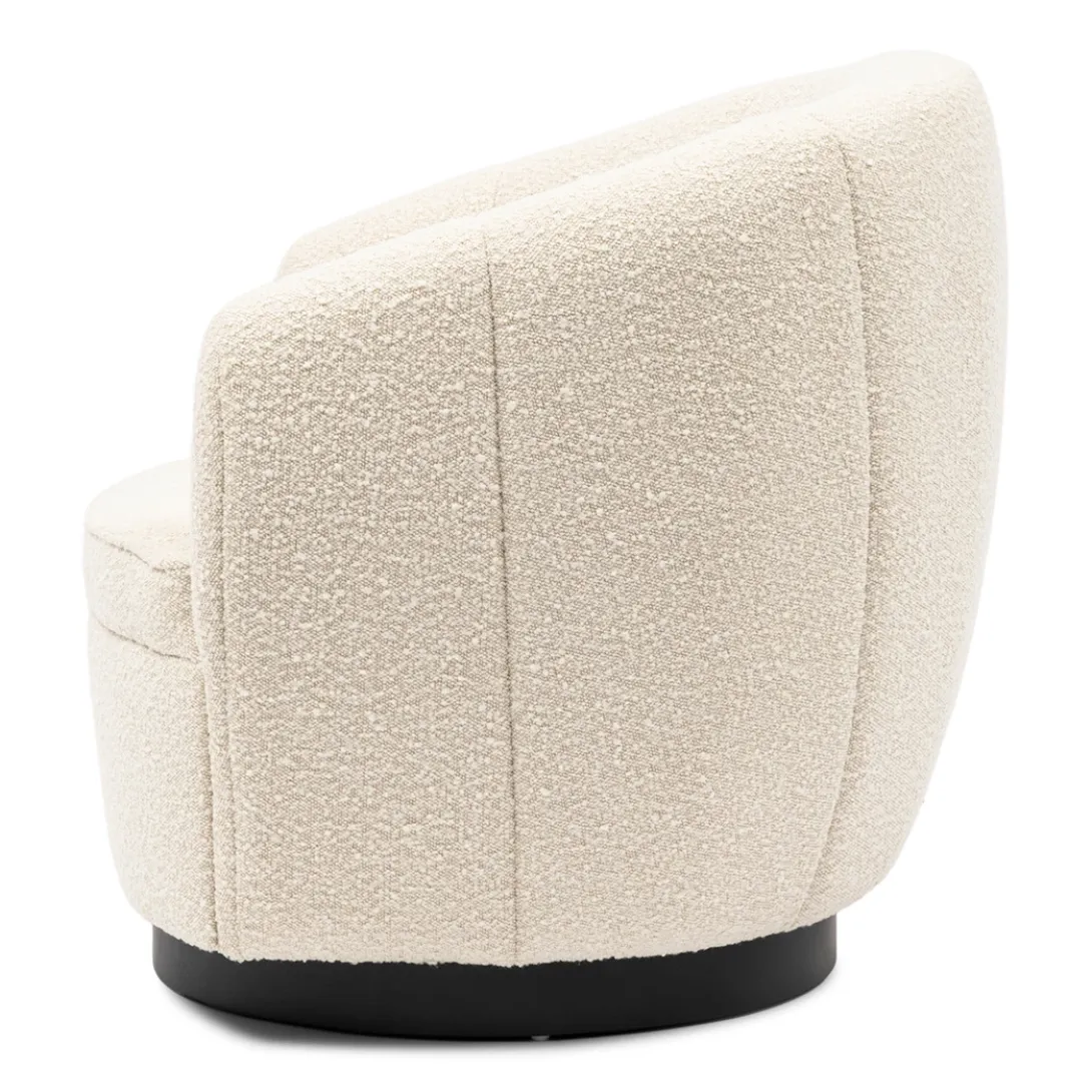 The Countesse fauteuil heeft een ronde rugleuning, die in één lijn doorloopt in de armleuningen. De verticaal gestikte lijnen creëren een bolling in de bekleding, waardoor er banen in de rugleuning ontstaan. Als kers op de taart heeft deze fauteuil een eveneens ronde, draaiende poot van rubberhout, die doorloopt tot de grond. Hiermee kun je de stoel 360 graden draaien.