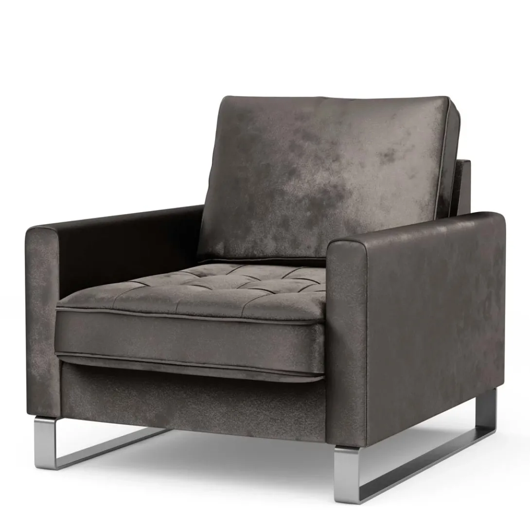 Fluweelzacht en toch robuust. Gaat dat samen? Zeker wel, kijk maar naar deze heerlijke fauteuil van West Houston. Robuust van karakter, maar met een heerlijke zit. Om nooit meer uit op te staan. Gemaakt van ijzer, beukenhout en polyester, is hij niet heel zwaar. Schuif maar bij, op zijn ijzeren onderstel. Er is keuze uit verschillende materialen en kleuren voor de bekleding. De leunstoel meet 85 x 90 x 85 cm.