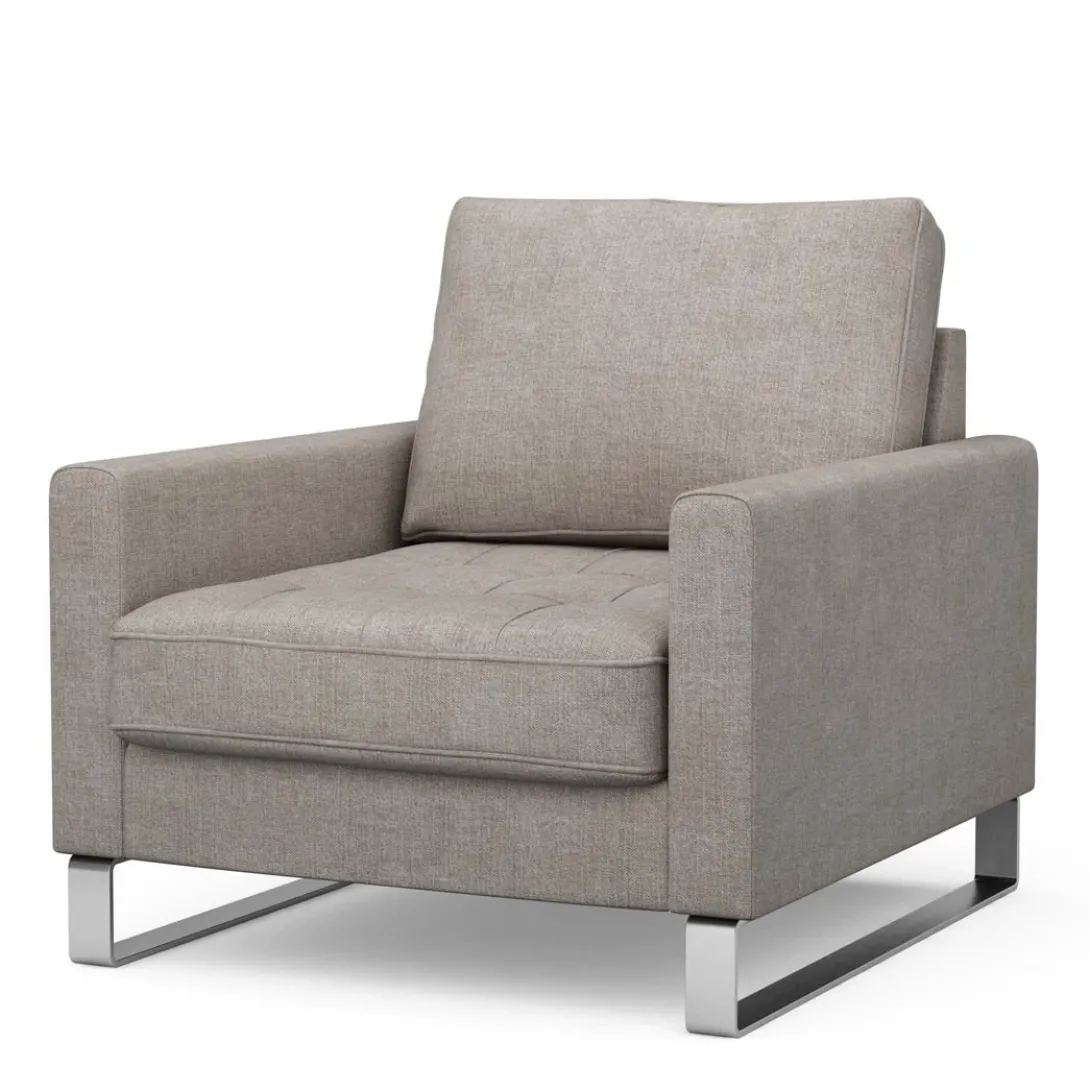Deze fauteuil met metalen onderstel en een gekapitoneerd zitvlak heeft een strak design, maar nodigt toch enorm uit om lekker in te gaan zitten. De loveseat is verkrijgbaar in verschillende kleuren en stoffen. In de West Houston serie zijn ook 2,5 en 3,5 zits banken en hoekbanken verkrijgbaar.