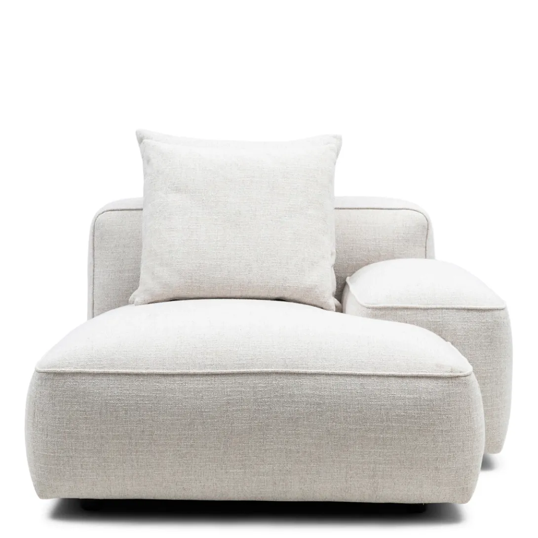 - De chaise longue module voor de Hamilton modulaire bank biedt ultiem loungecomfort en sluit perfect aan aan de rechterzijde. Bekleed met rijke, gemêleerde stof in de kleur Antique White, voegt deze module een luxe uitstraling toe aan je zithoek. Ideaal voor ontspannen momenten en het creëren van een stijlvolle, comfortabele ruimte in jouw woonkamer.