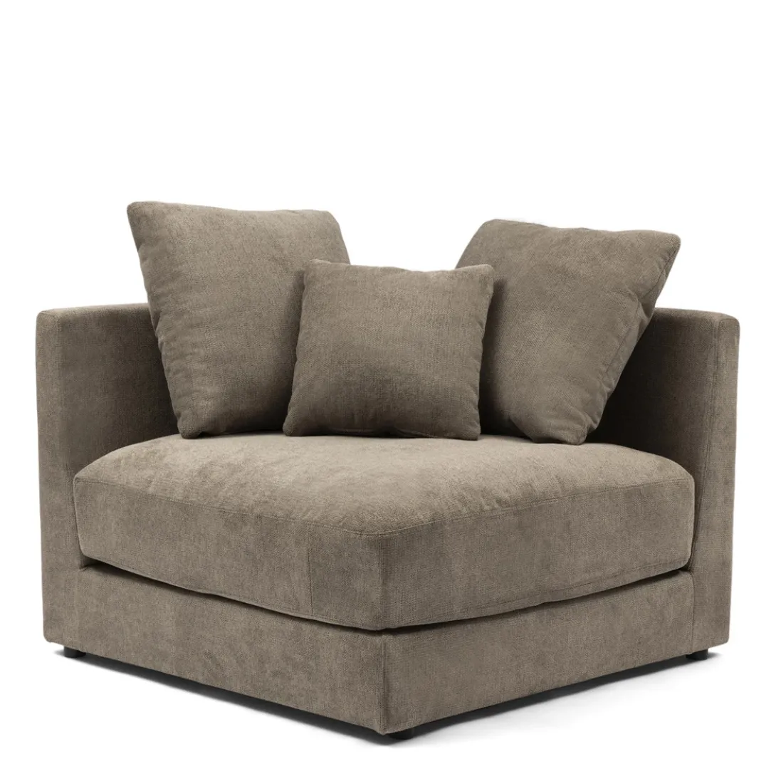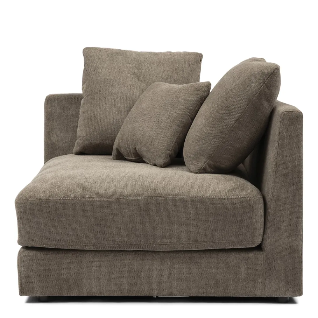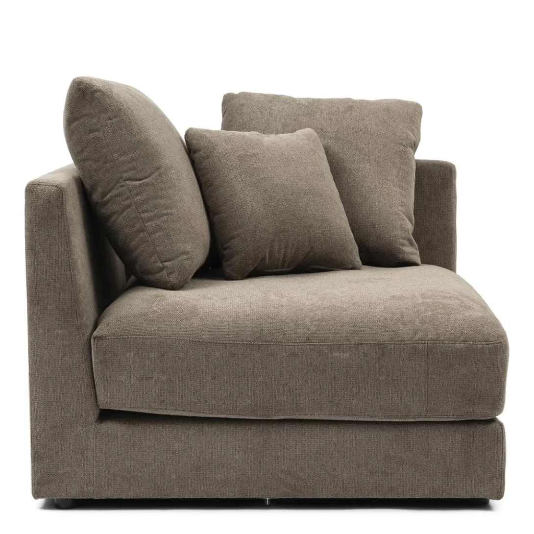 Van de modulaire bank Vail is dit het hoekdeel, dat houdt in dat dit bankdeel twee hoge zijdes heeft. Hierdoor kun je aan beide kanten een ander bankdeel aanschuiven, zoals een hoek met een armleuning links of rechts, een middendeel of hocker.