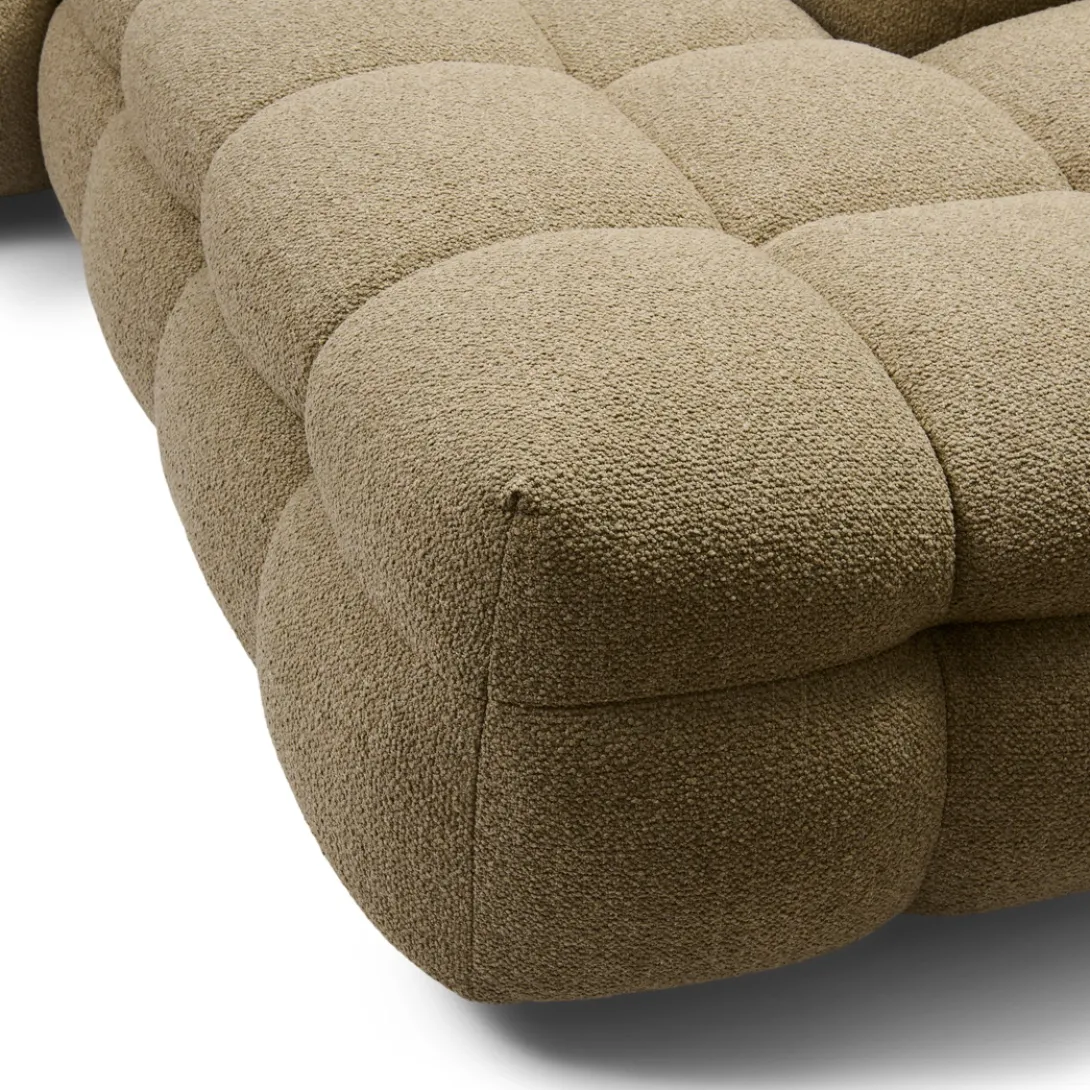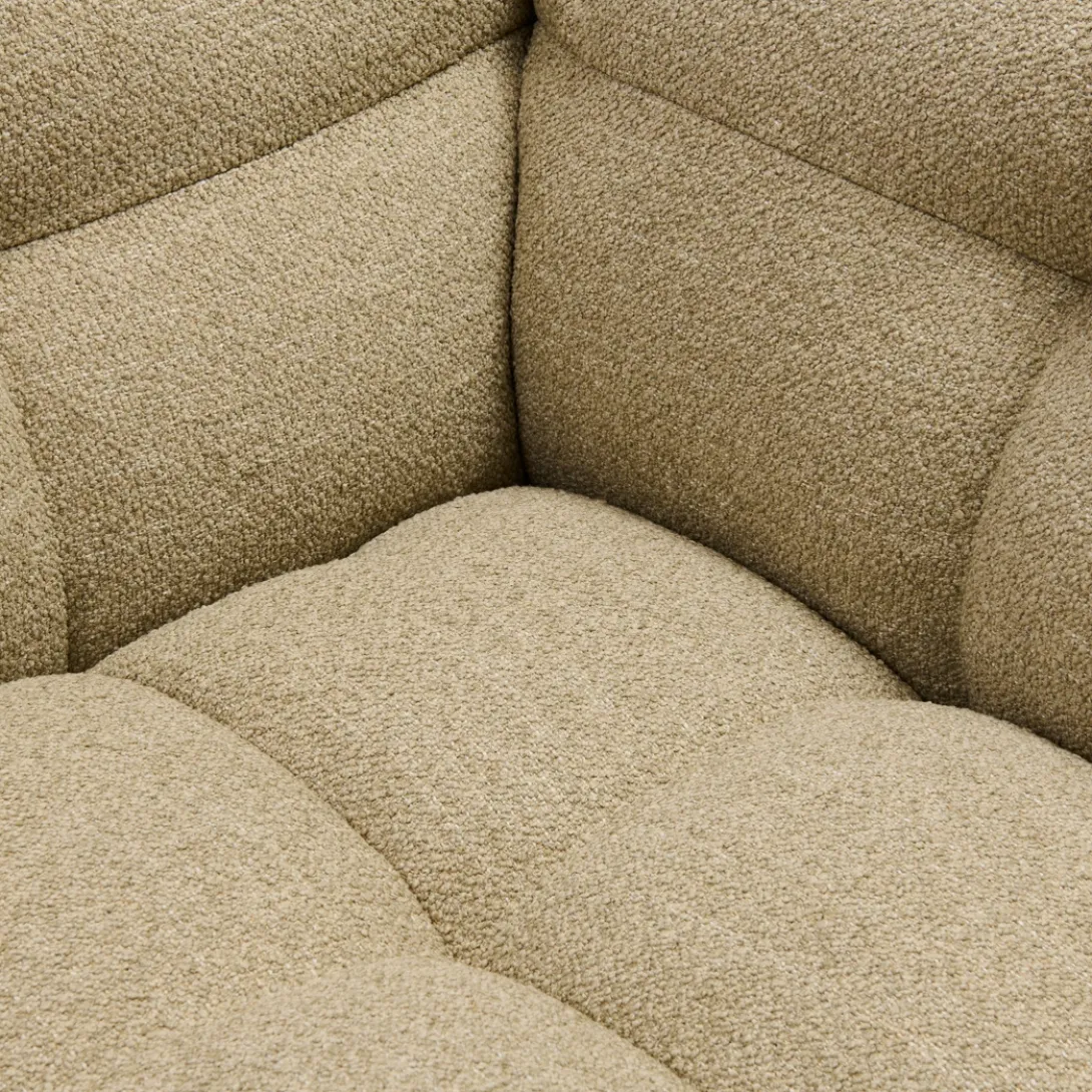 De Imperial hoekbank is een samensmelting van modern design en ongeëvenaard comfort. Bekleed met een luxueuze peluche bouclé stof in een natuurlijke grijze tint, straalt deze bank warmte en elegantie uit. Het unieke bolvormige blokdesign en de verborgen pootjes geven een eigentijds, zwevend effect dat perfect past in een modern interieur. Deze ruime bank nodigt uit tot ontspannen avonden met vrienden en familie, terwijl hij je woonkamer transformeert in een stijlvolle en gezellige ruimte. Laat je inspireren door de luxe en het comfort van de Imperial hoekbank.