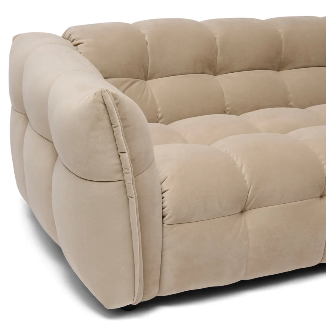 De Imperial hoekbank is een samensmelting van modern design en ongeëvenaard comfort. Bekleed met een luxueuze velvet stof in de Rich Almond kleur, straalt deze bank warmte en elegantie uit. Het unieke bolvormige blokdesign en de verborgen pootjes geven een eigentijds, zwevend effect dat perfect past in een modern interieur. Deze ruime bank nodigt uit tot ontspannen avonden met vrienden en familie, terwijl hij je woonkamer transformeert in een stijlvolle en gezellige ruimte. Laat je inspireren door de luxe en het comfort van de Imperial hoekbank.