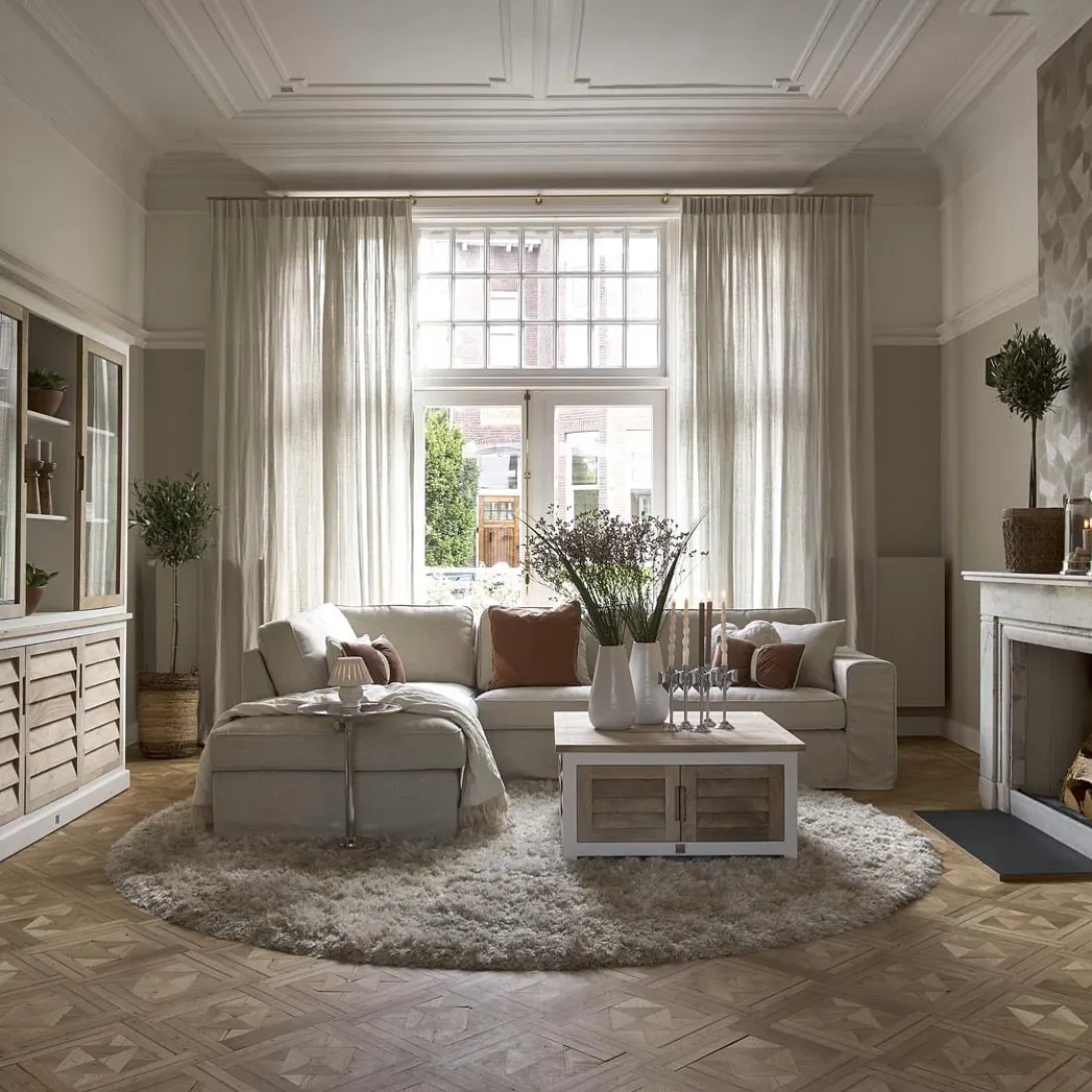 Een hoekbank met een plek om languit te zitten. Heerlijk relaxen op deze hoekbank met verwisselbare overtrekken voor de zitkussens. De zitkussens hebben gestikte randen als afwerking. De bank heeft ook een los kussen voor het comfort.
