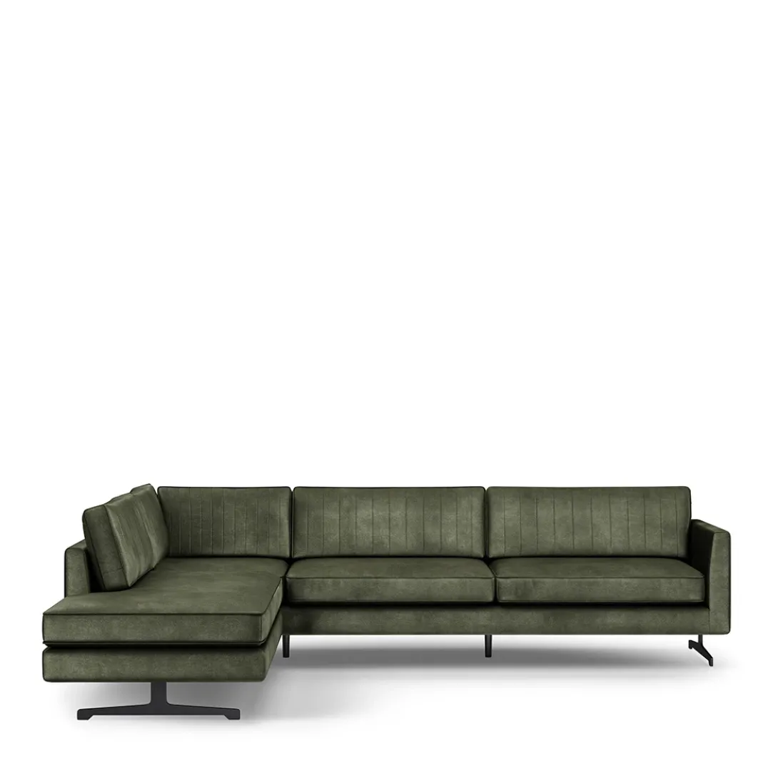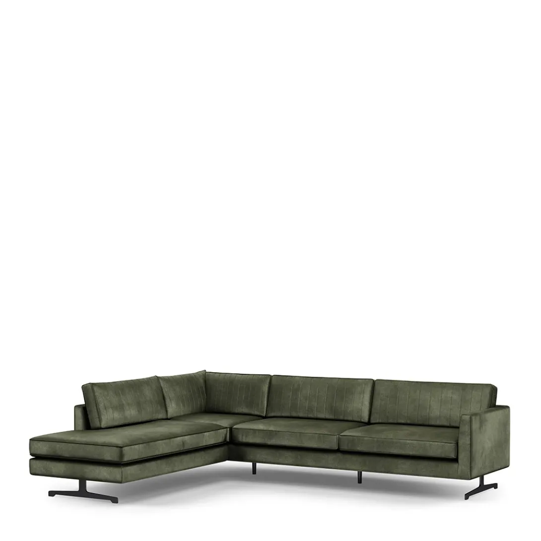 De Camille Corner Sofa Left is een hoekbank met een luxe uitstraling die bestaat uit een breed zitgedeelte en een chaise longue om ontspannen in onderuit te zakken. Het draaibare rugkussen heeft een egale zijde en een zijde met verticale stiksels. De Camille-hoekbank is verkrijgbaar in verschillende kleuren en stofferingen en naar wens met een hoek aan de rechterzijde.
