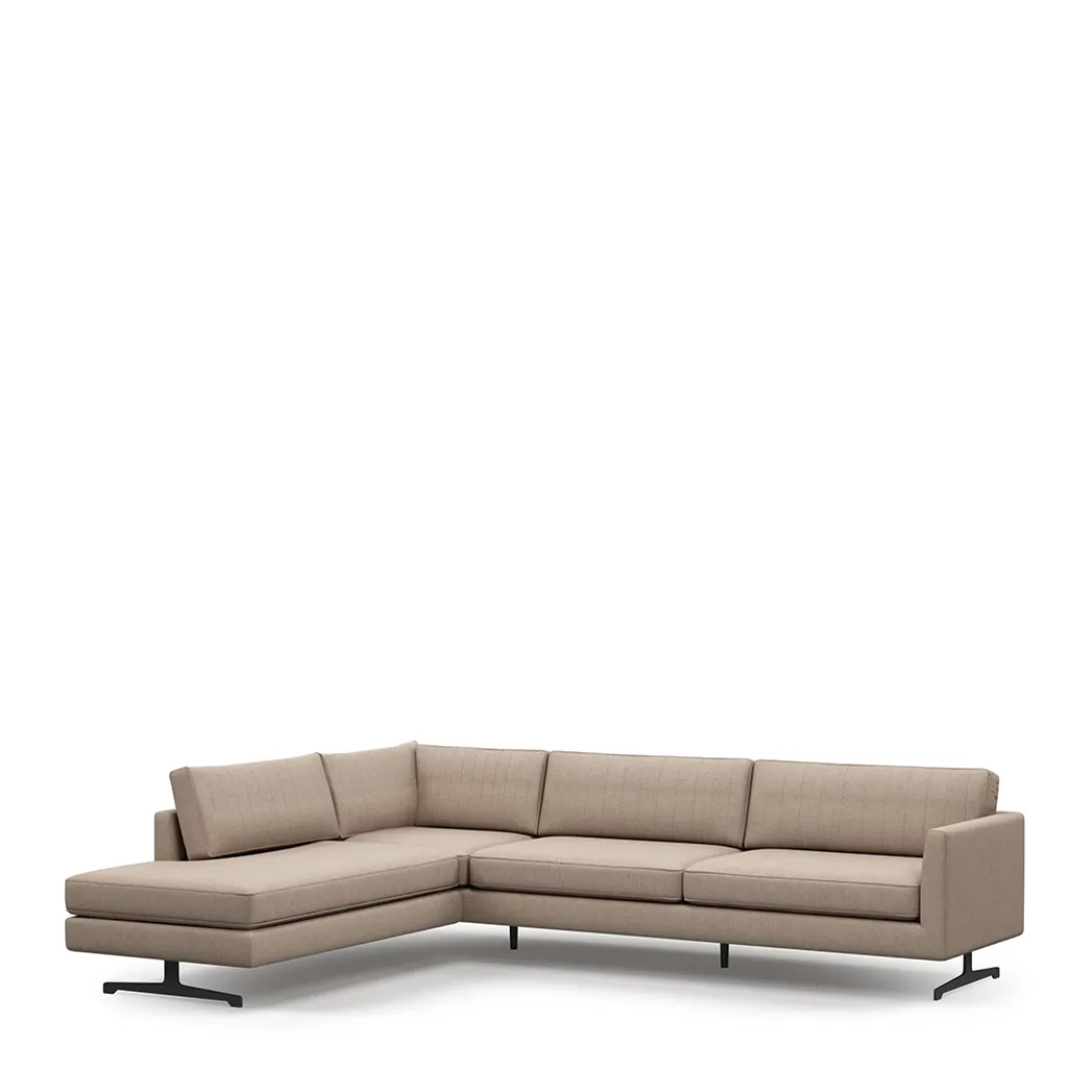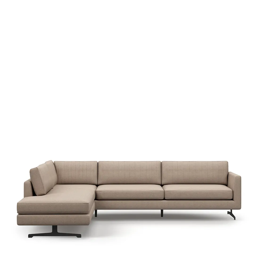 De Camille Corner Sofa Left is een hoekbank met een luxe uitstraling die bestaat uit een breed zitgedeelte en een chaise longue om ontspannen in onderuit te zakken. Het draaibare rugkussen heeft een egale zijde en een zijde met verticale stiksels. De Camille-hoekbank is verkrijgbaar in verschillende kleuren en stofferingen en naar wens met een hoek aan de rechterzijde.
