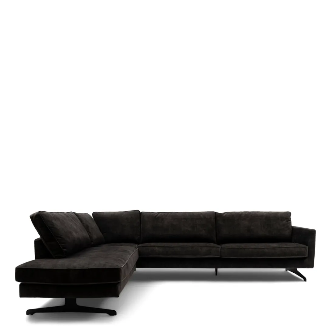 De Camille Corner Sofa Left is een hoekbank met een luxe uitstraling die bestaat uit een breed zitgedeelte en een chaise longue om ontspannen in onderuit te zakken. Het draaibare rugkussen heeft een egale zijde en een zijde met verticale stiksels. De Camille-hoekbank is verkrijgbaar in verschillende kleuren en stofferingen en naar wens met een hoek aan de rechterzijde.