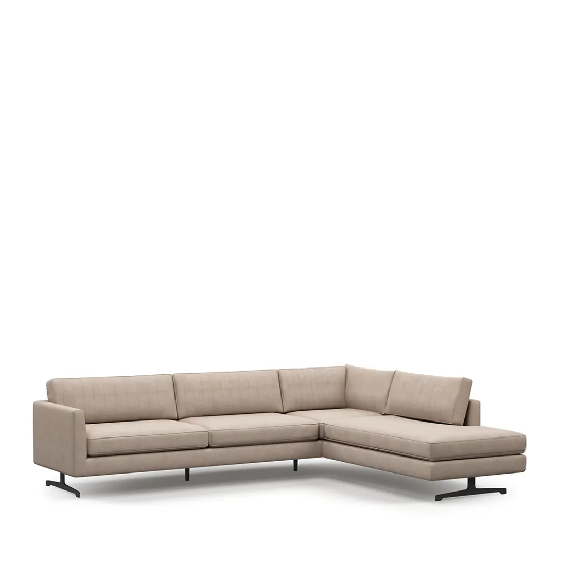 De Camille Corner Sofa Right is een hoekbank met een luxe uitstraling die bestaat uit een breed zitgedeelte en een chaise longue om ontspannen in onderuit te zakken. Het draaibare rugkussen heeft een egale zijde en een zijde met verticale stiksels. De Camille-hoekbank is verkrijgbaar in verschillende kleuren en stofferingen en naar wens met een hoek aan de rechterzijde.