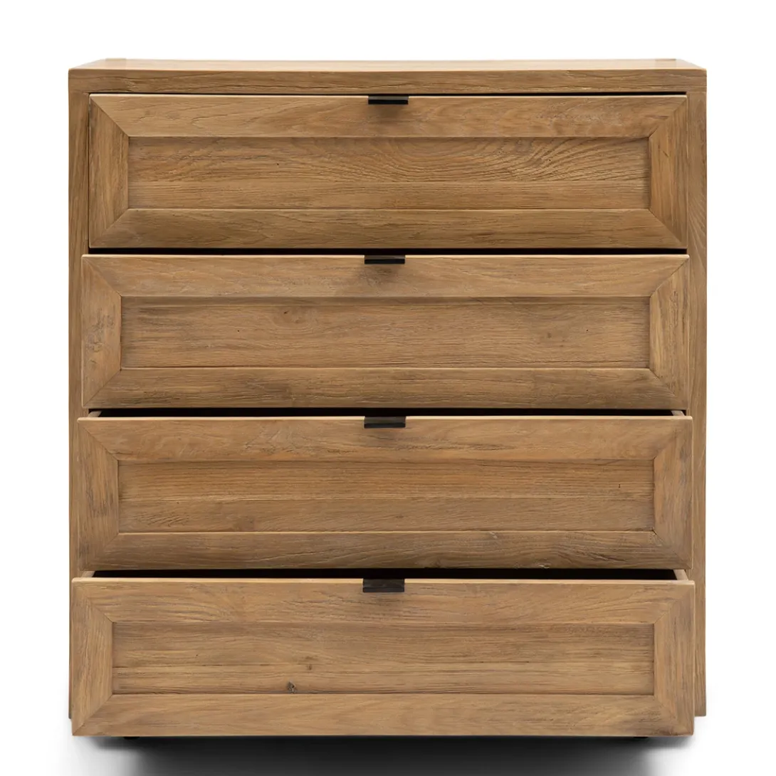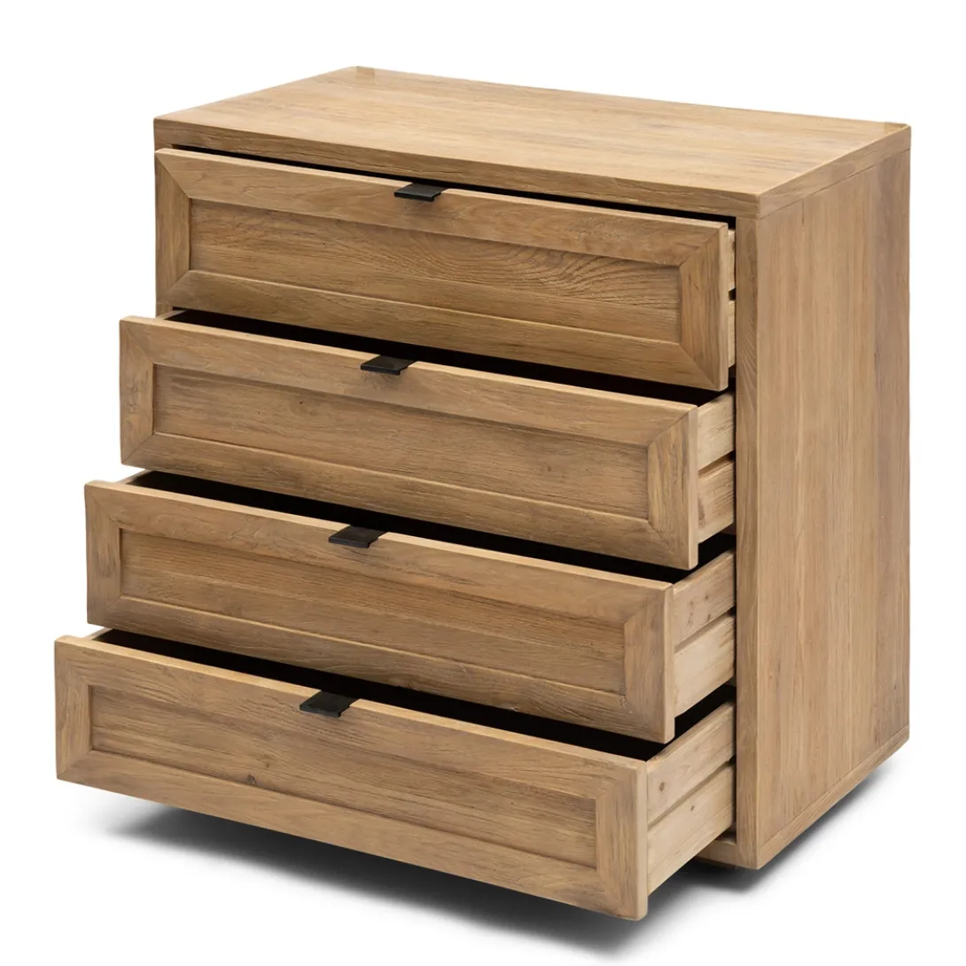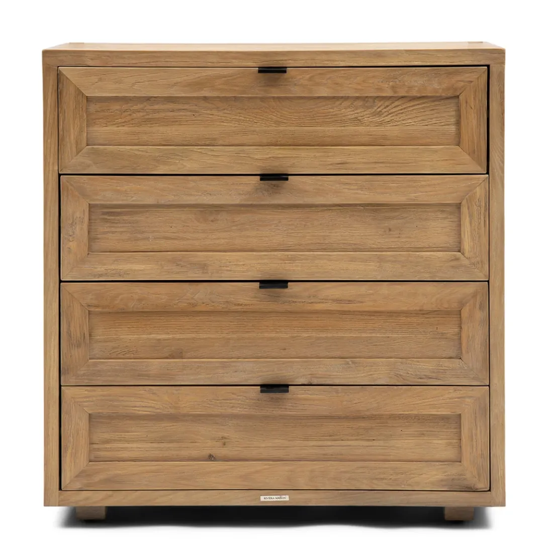 De ladekast Del Rey van Rivièra Maison uit de Del Rey modulaire kasten serie en deze kun je naar wens samenstellen. Deze ladekast heeft een afmetingen van 80x42x85 cm geeft veel opbergruimte en is gemaakt van reclaimed eikenhout. Op zich zelf is deze kast al prachtig en uit te breiden met de vele andere modulaire elementen uit deze serie. Stel je voor hoe de natuurlijke houttonen je kamer verrijken en je persoonlijke spullen een plek geven om te schitteren!