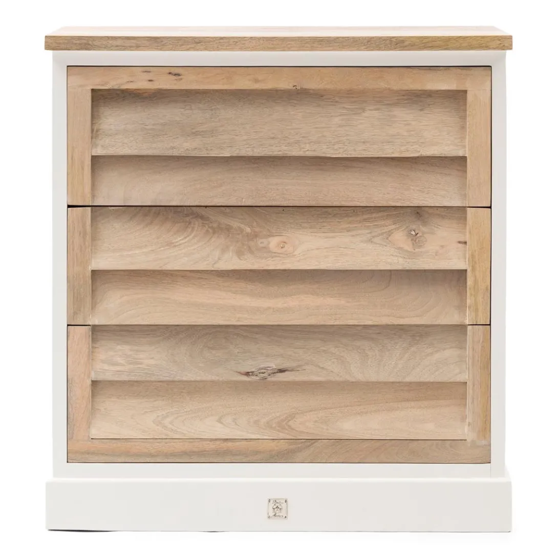 Wist je dat mangohout niet alleen te gebruiken is voor accessoires, maar dat je er ook de mooiste meubels van maakt? Zoals deze grote ladenkast Pacifica, die volledig van mangohout is gemaakt. Het frame van de kast is wit geverfd, terwijl de lades en bovenkant naturel van kleur zijn en een opvallende shutter structuur hebben. Verkrijgbaar in verschillende uitvoeringen.