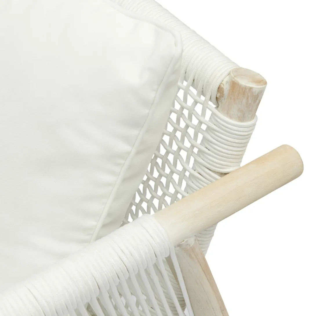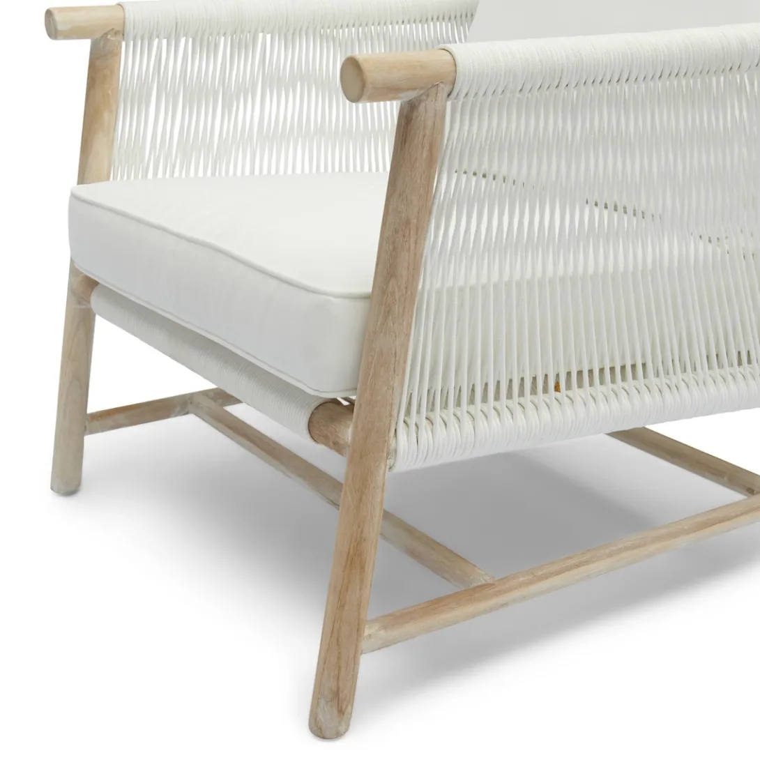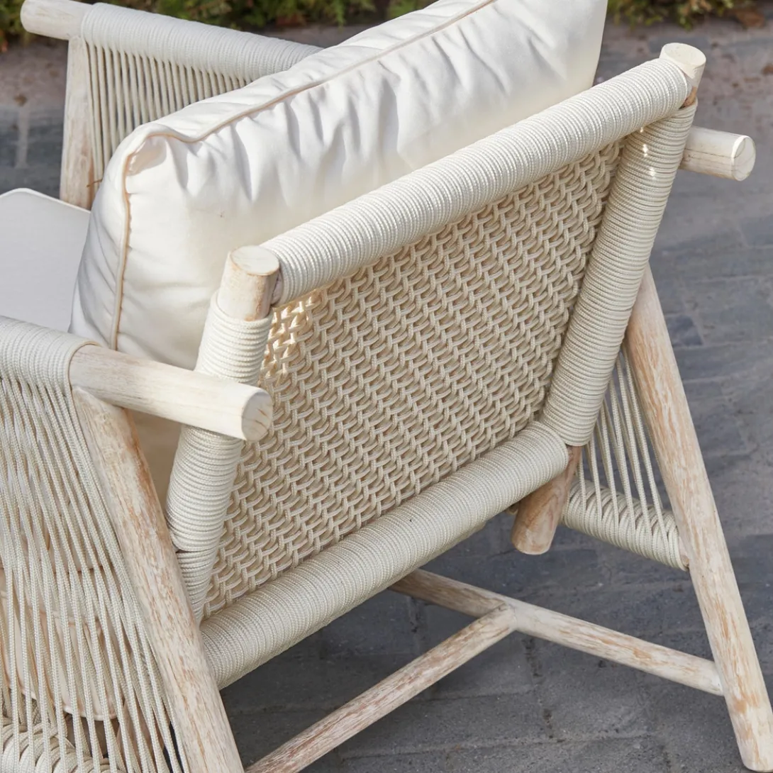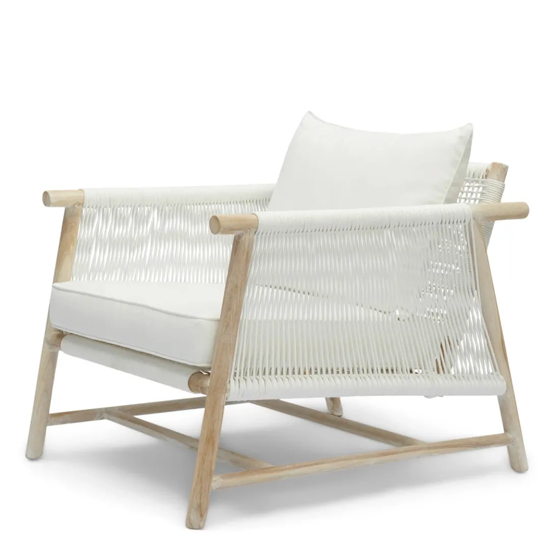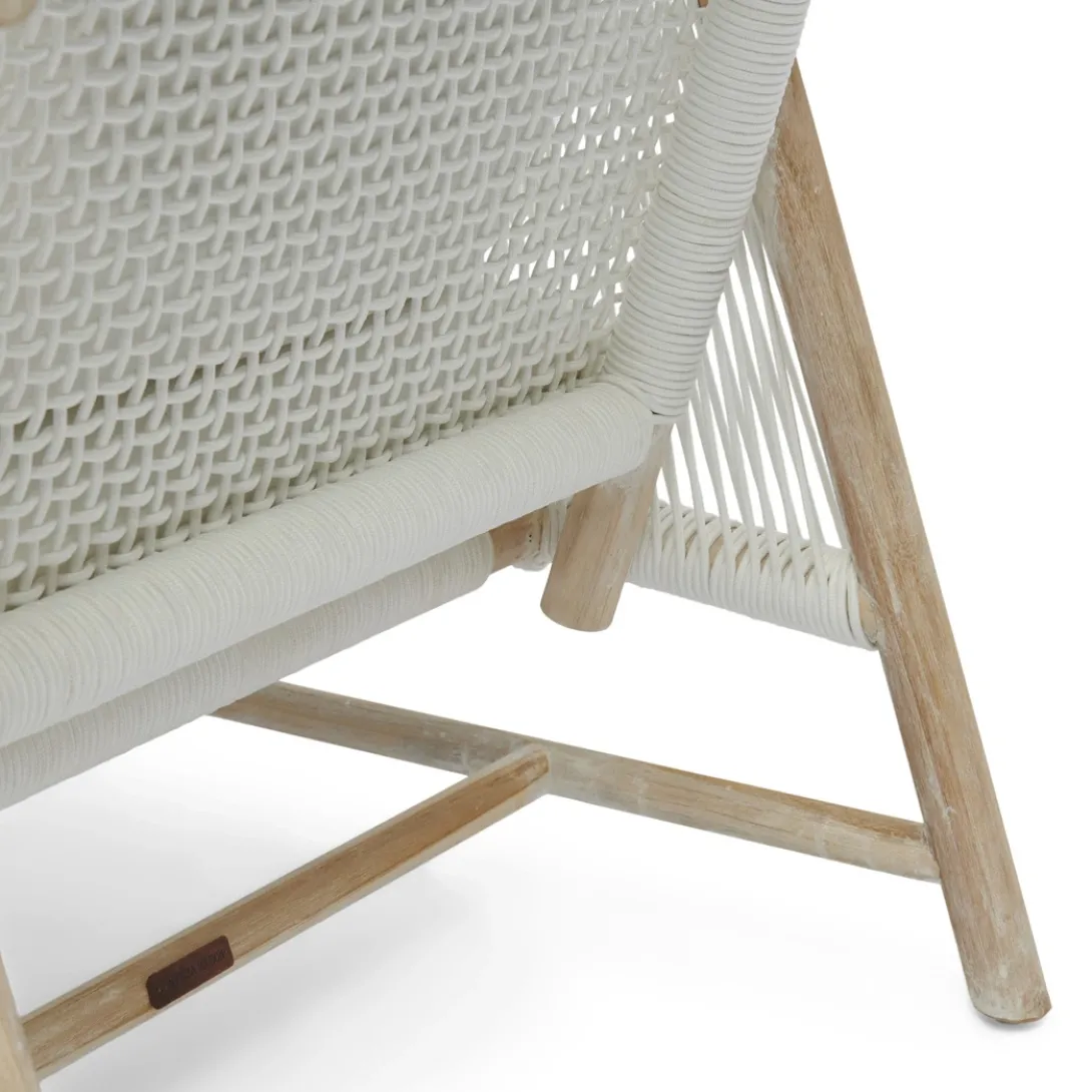 Breng het strandgevoel tot leven met de Saint Tropez loungestoel voor buiten. Deze lounge tuinstoel combineert moeiteloos esthetiek met comfort. Dit unieke meubelstuk, met zorg en vakmanschap gemaakt, zorgt ervoor dat je je er gewoon goed in voelt. Gemaakt van teakhout met een all-weather touw als zitting en rug.