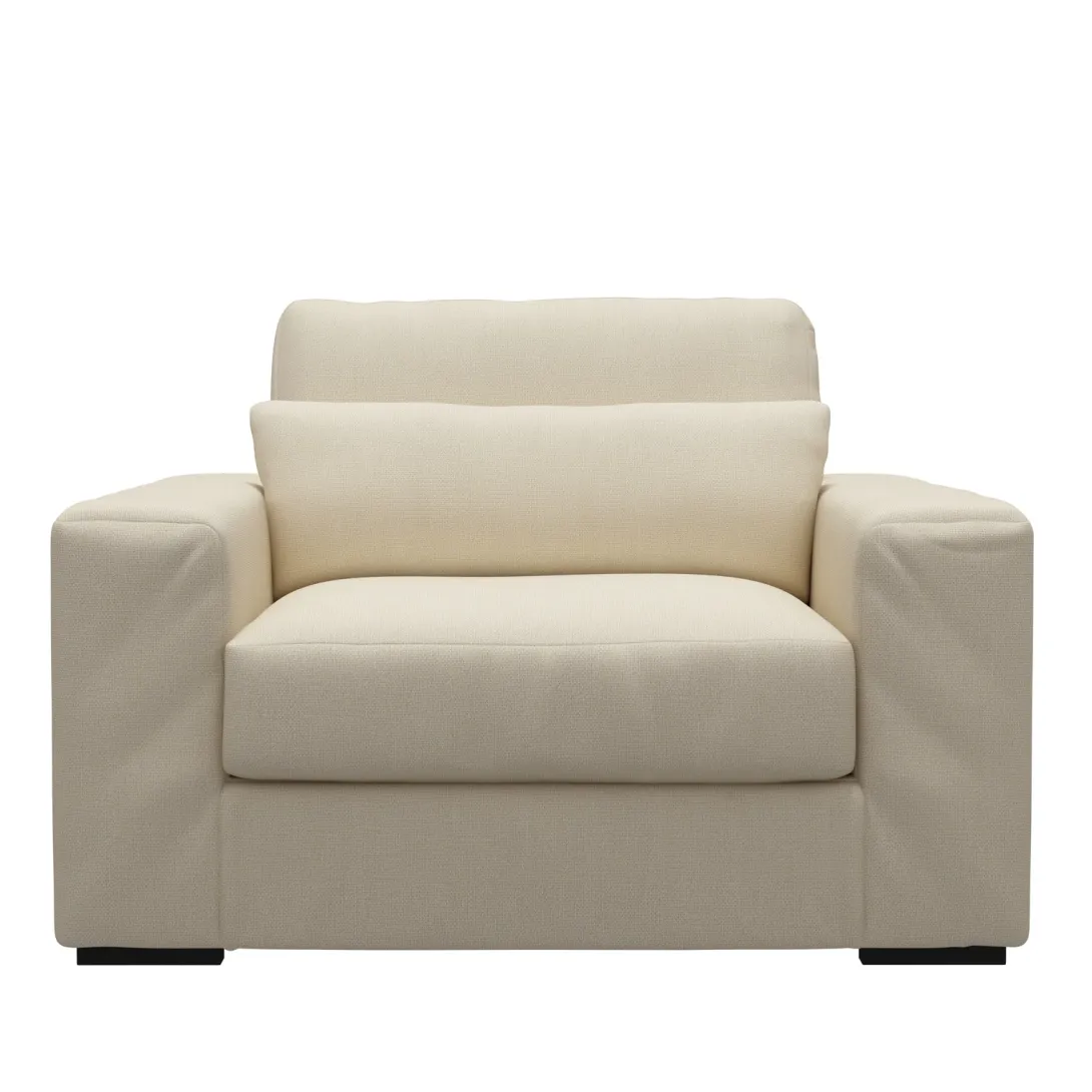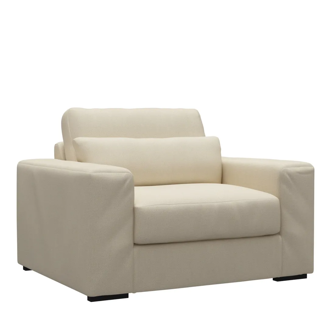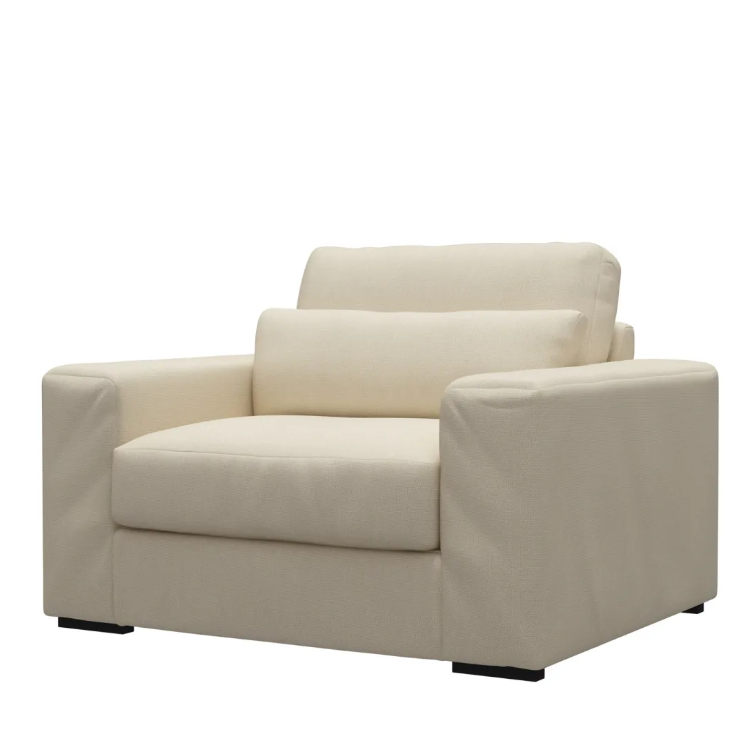 De Kingsroad Love Seat is een comfortabele, brede fauteuil met een stevige en korte zit. Kruip lekker dicht tegen elkaar aan in deze mooie stoel met brede armleuningen of neem zelf flink de ruimte terwijl je onderuitgezakt in de fauteuil een goed boek leest.