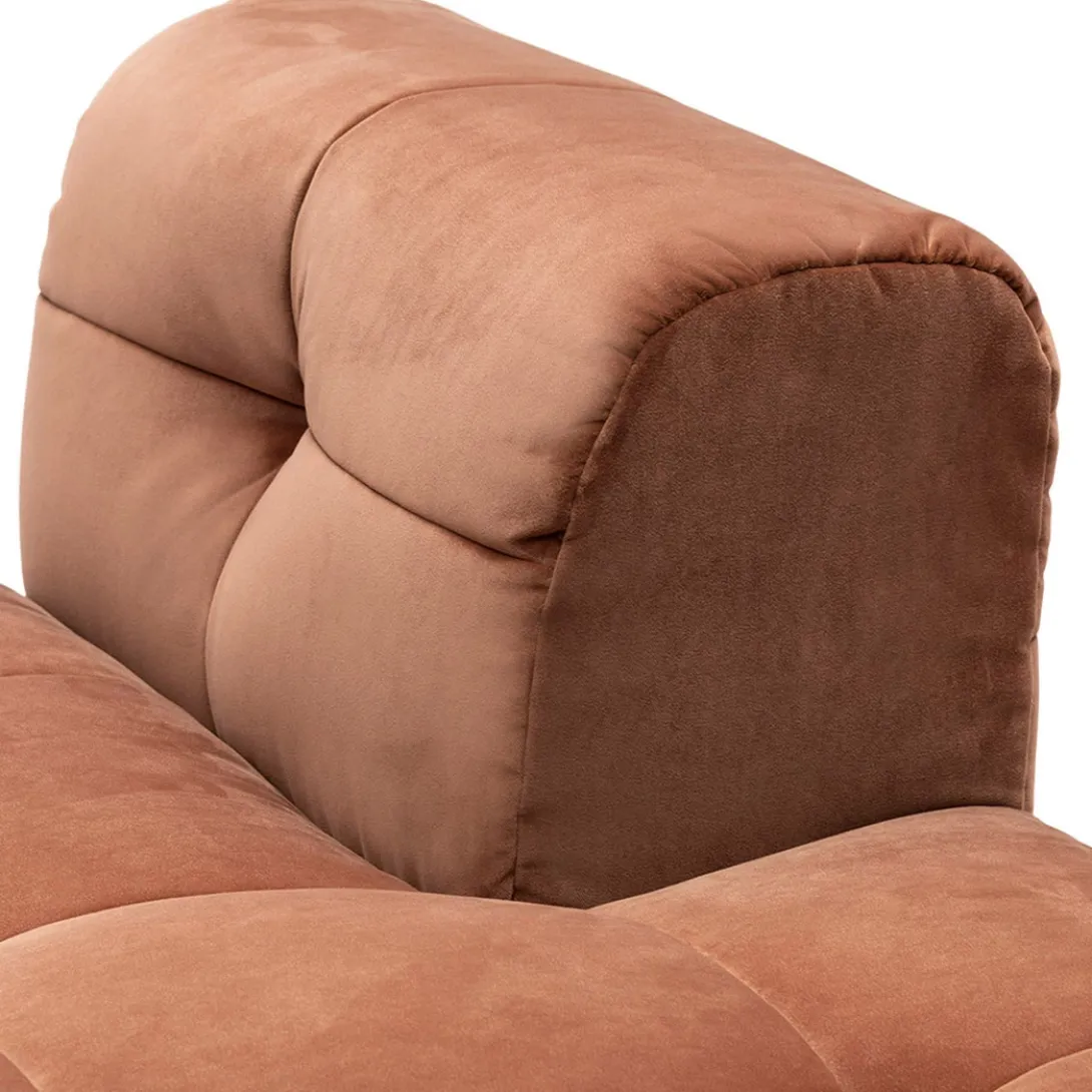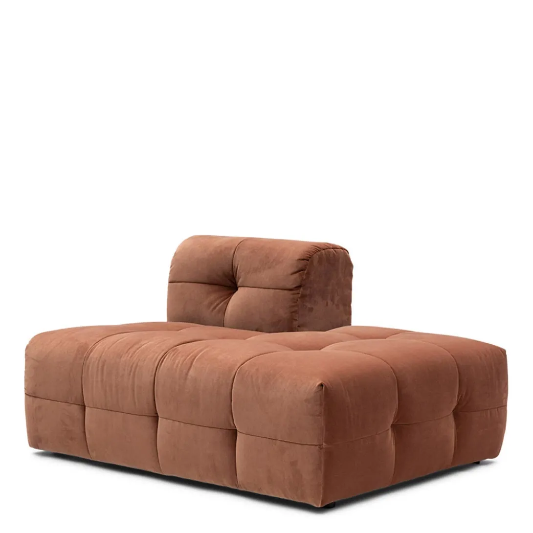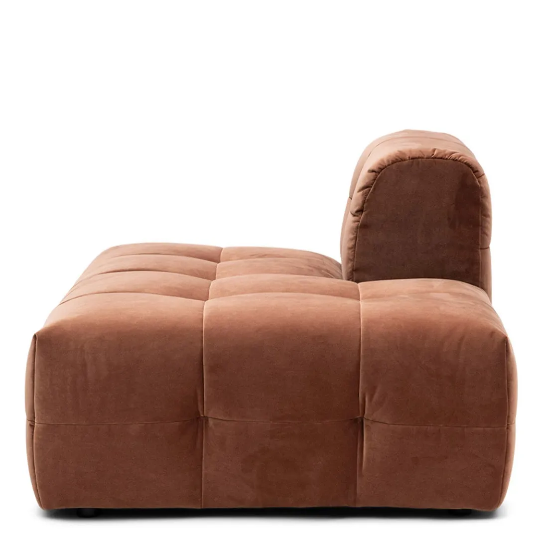 Combineer deze lounger rechts van modulaire bank The Jones met enkele andere elementen om zo je eigen droombank samen te stellen. Dit loungedeel heeft een leuning aan de lange kant rechts. De stoffering van deze bank heeft een gecapitonneerd patroon, maar dan zonder de knoop.