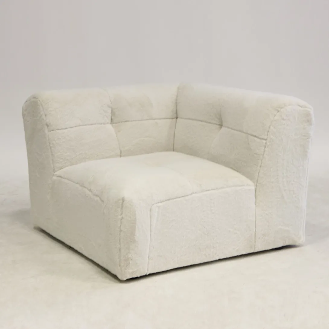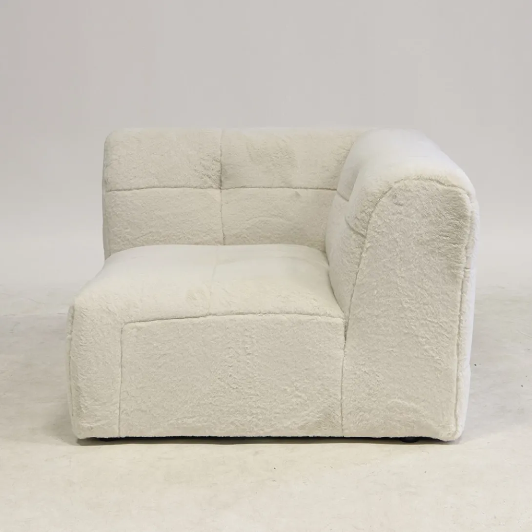 Van de modulaire bank The Jones is dit het hoekdeel, dat houdt in dat dit bankdeel twee hoge zijdes heeft. Hierdoor kun je aan beide kanten een ander bankdeel aanschuiven, zoals een hoek met een armleuning links of rechts, een middendeel of hocker. Deze bank heeft een wat lagere zit en de bekleding is speels gecapitonneerd, maar zonder knoop.