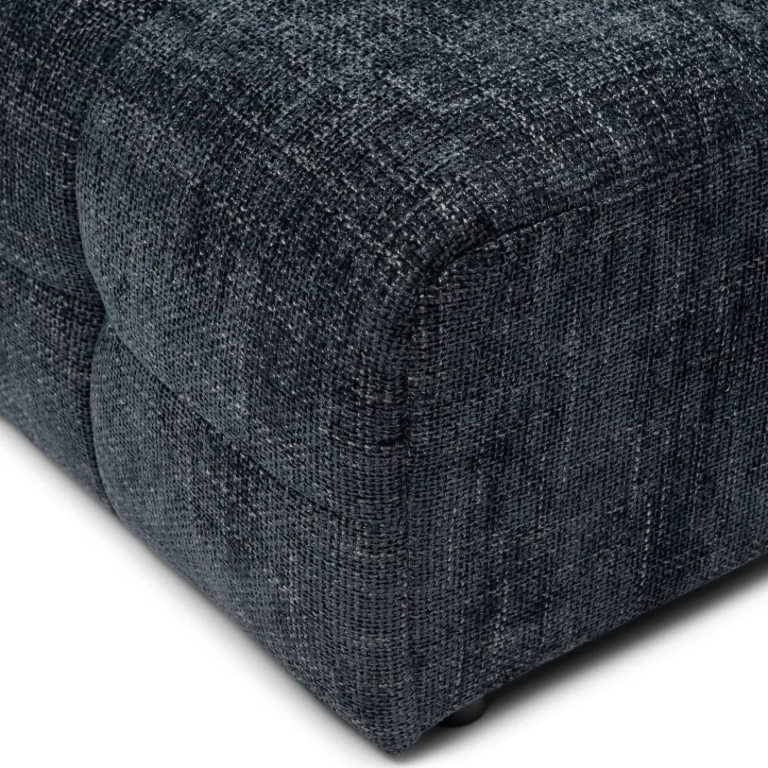 Dit is het middendeel van de zelf samen te stellen, modulaire bank The Jones. Een heerlijke, lage bank, met opvallende bekleding met capitonnering zonder knoop. Dit middendeel heeft alleen een rugleuning, dit maakt hem ook zeer geschikt om als los element, als een soort van loveseat, in de ruimte te plaatsen.