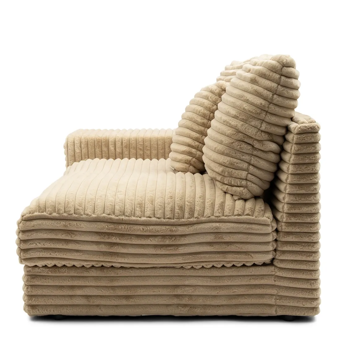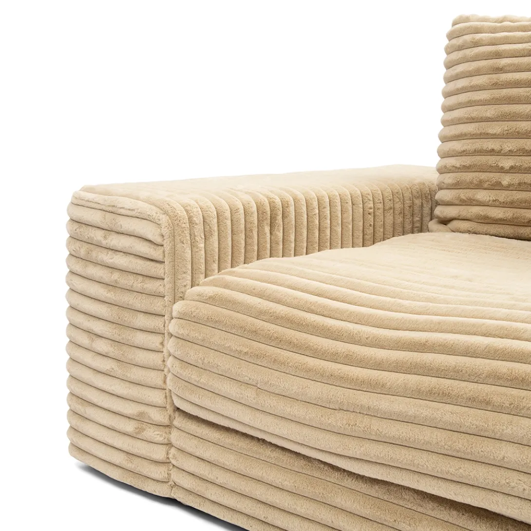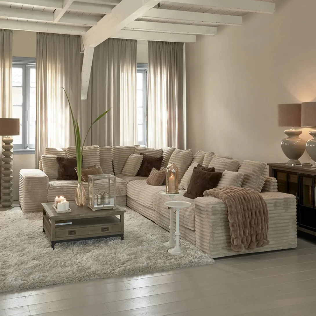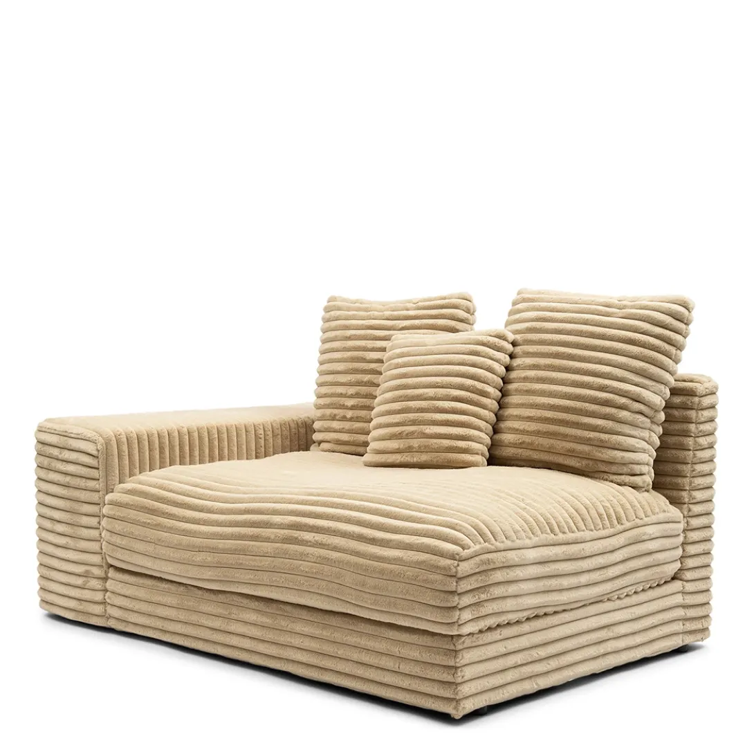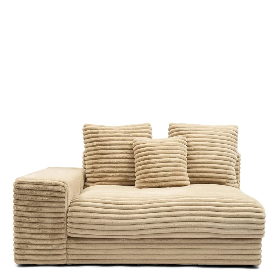 Stel zelf een royale sofa samen met dit linkerstuk van (modulaire) bank Vail. Deze bank kenmerkt zich door zijn flinke omvang, waardoor je er heerlijk op weg kunt kruipen.
