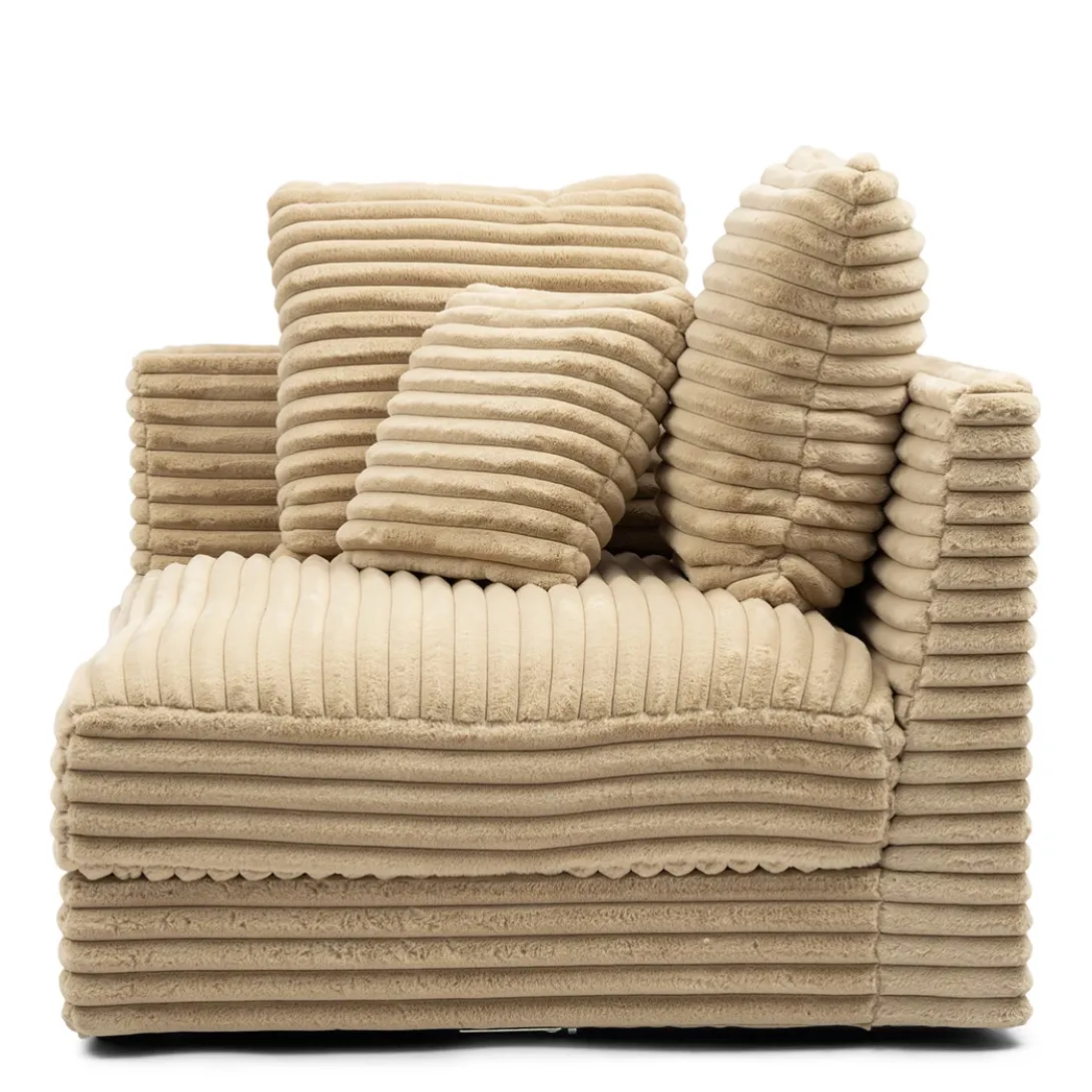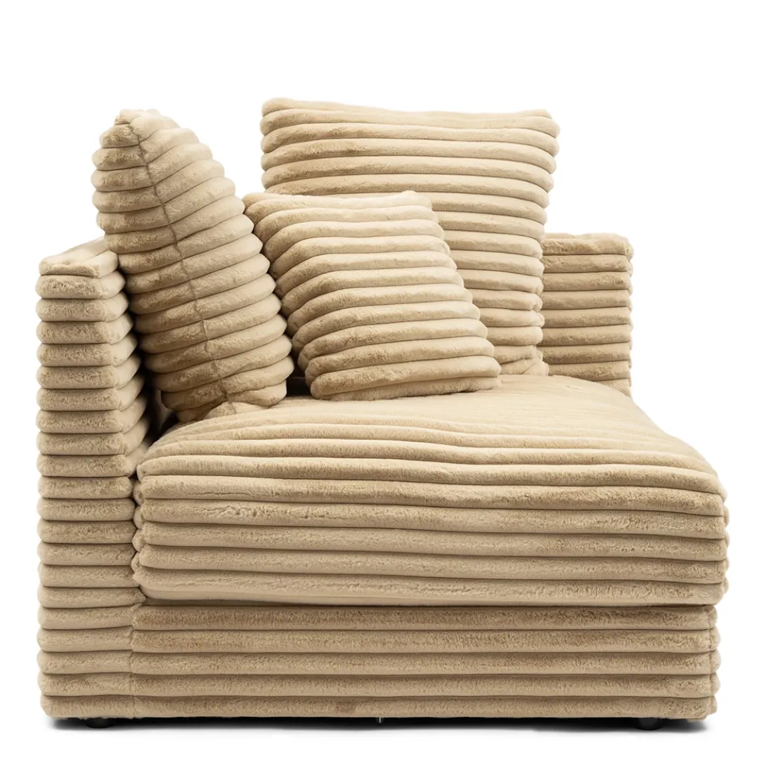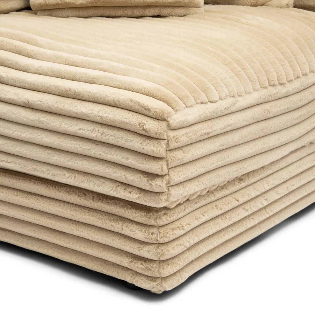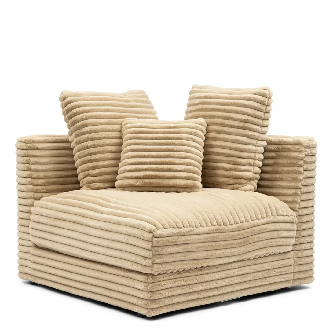 Van de modulaire bank Vail is dit het hoekdeel, dat houdt in dat dit bankdeel twee hoge zijdes heeft. Hierdoor kun je aan beide kanten een ander bankdeel aanschuiven, zoals een hoek met een armleuning links of rechts, een middendeel of hocker.