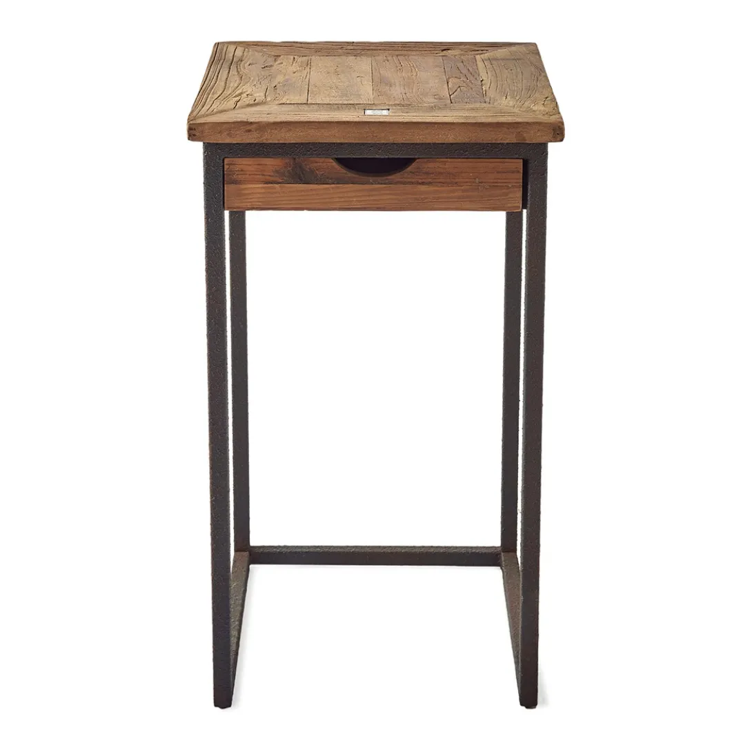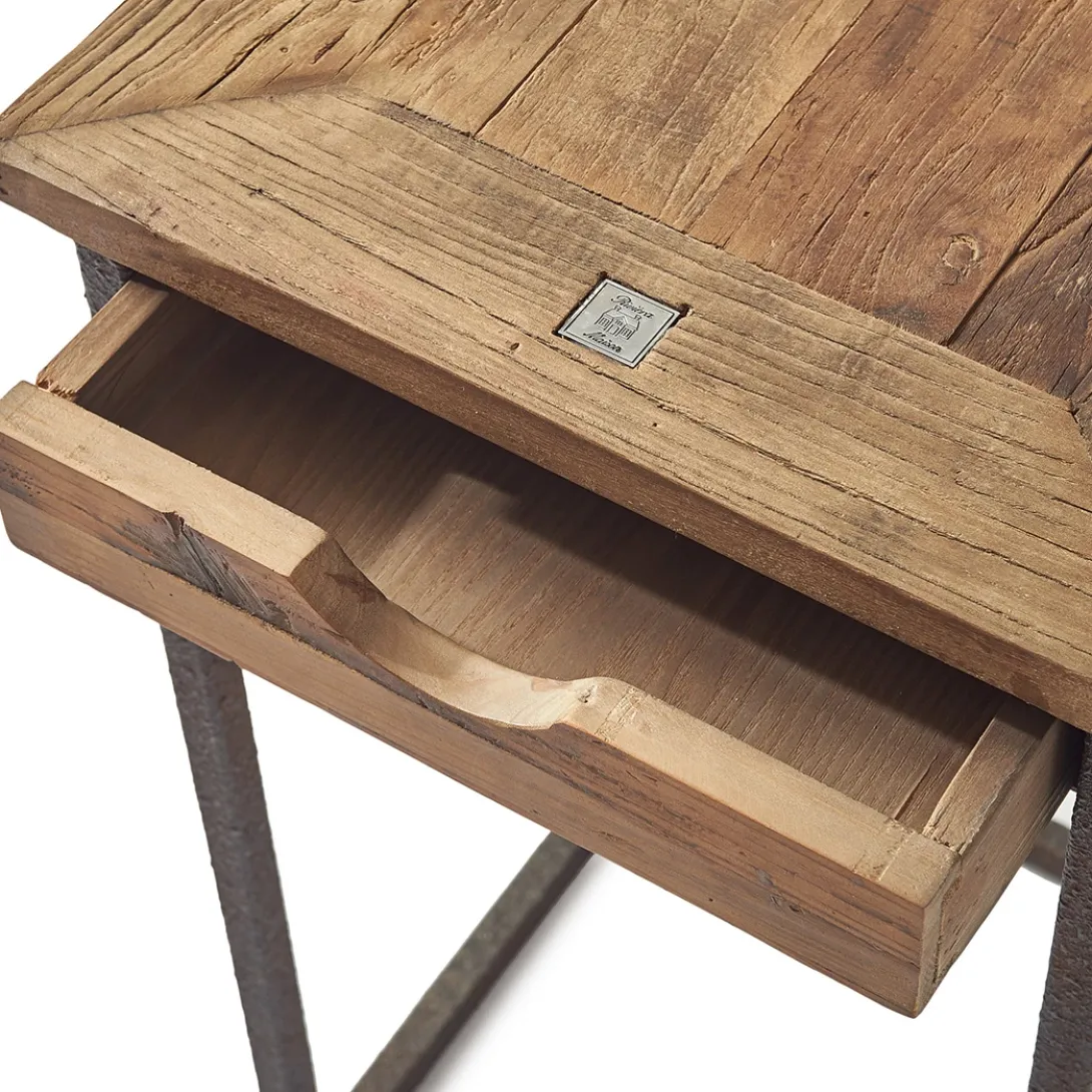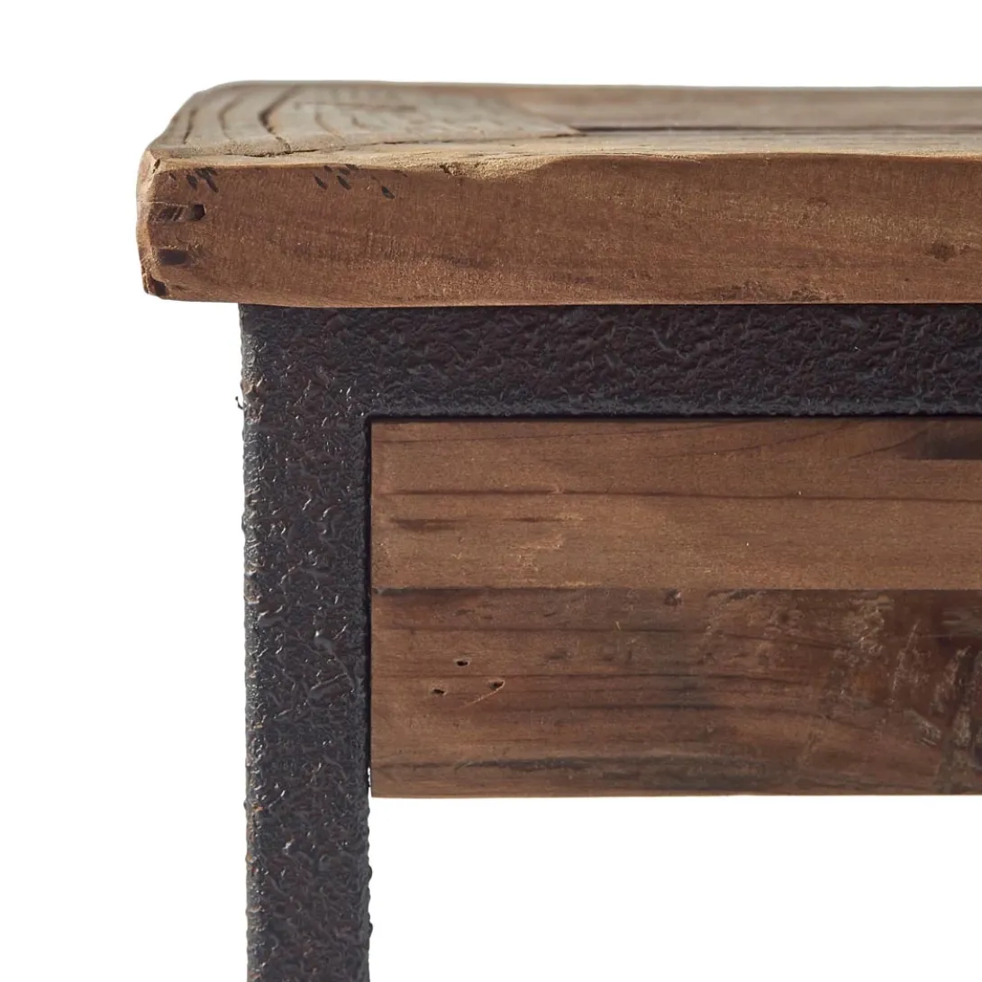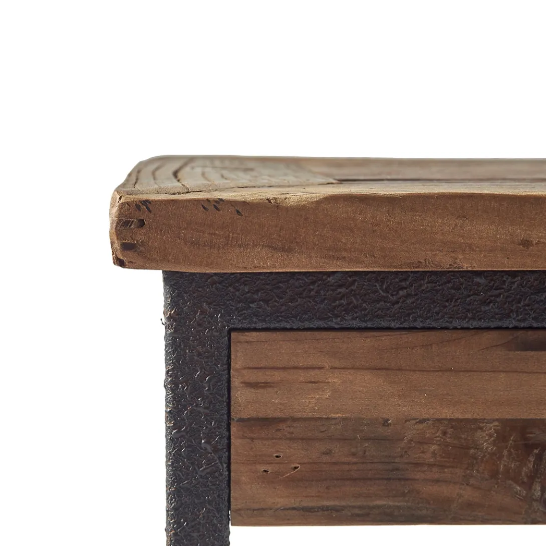 Nachtkastje van oud recycled hout en een ijzeren onderstel is voorzien van een stevige lade. De mix van oud hout en ijzer geeft het typische loft sfeertje dat het goed doet in een slaapkamer omgeving. Er is goed nagedacht om dit meubel een verfijnde en tevens industriële de uitstraling te geven.