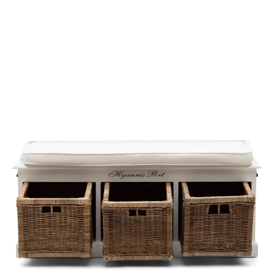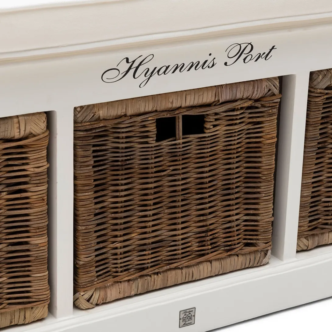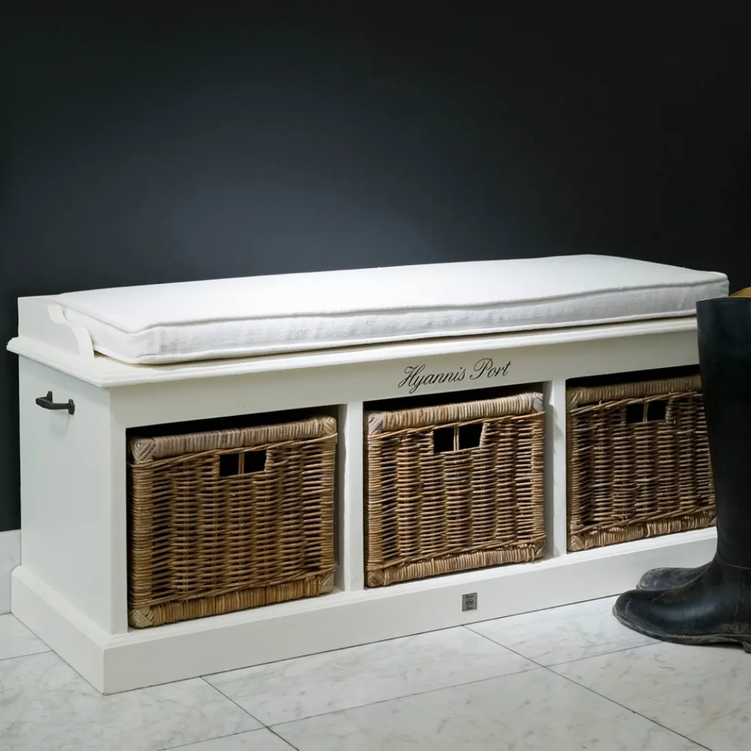 Een leuk bankje voor in de hal met manden voor schoenen of shawls. In de slaapkamer voor aan het voeteneind of in de kinderkamer voor speelgoed in op te bergen.