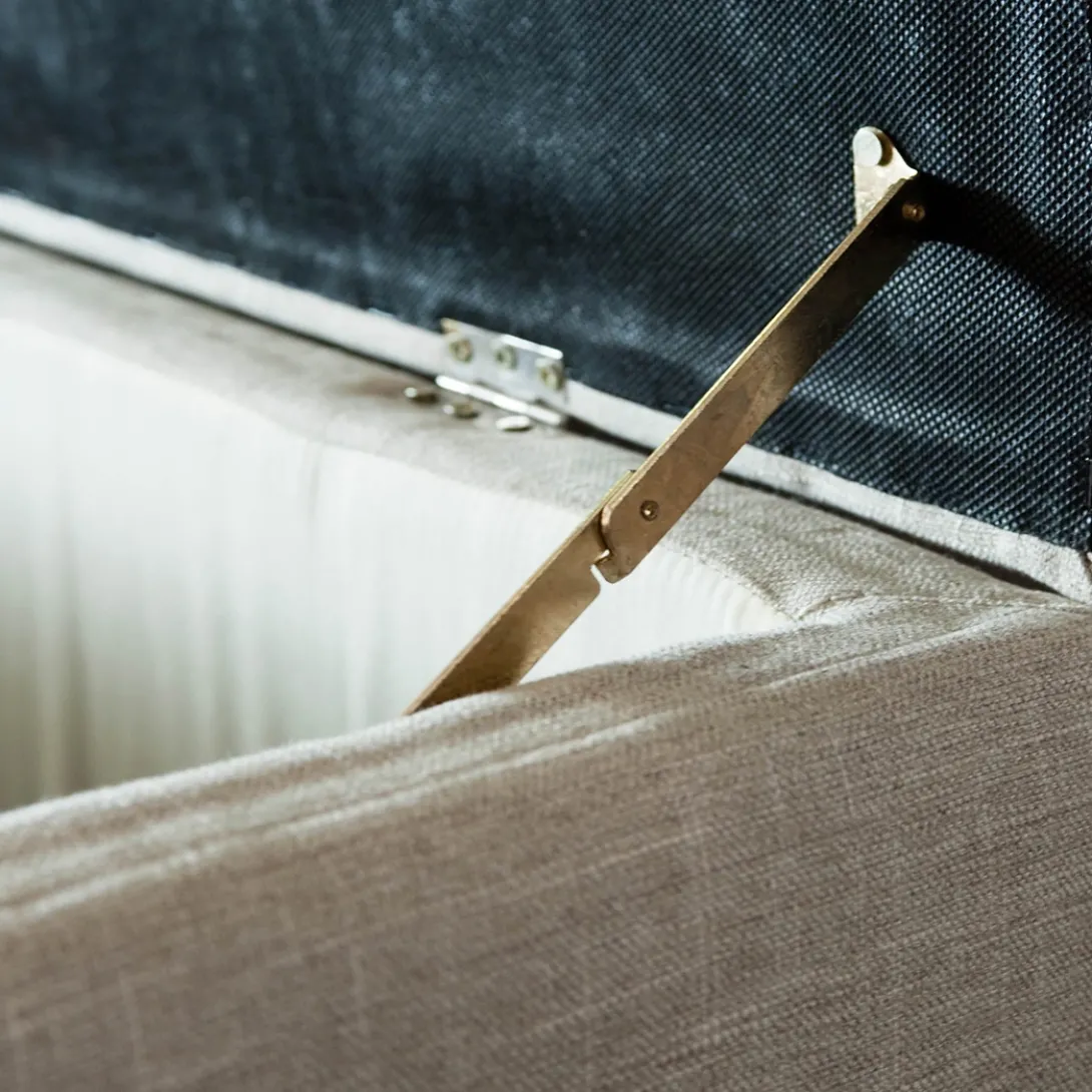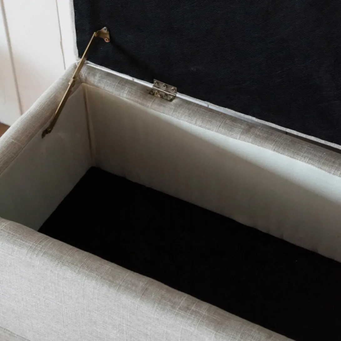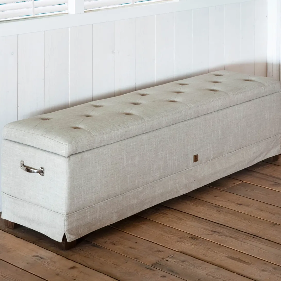 Dit gecapitonneerde bankje staat prachtig voor het bed. De klep kan open en zorgt voor veel opbergruimte bijvoorbeeld voor het beddengoed. Verkrijgbaar in verschillende kleuren, linnen gecombineerd met polyester en pellini leer.