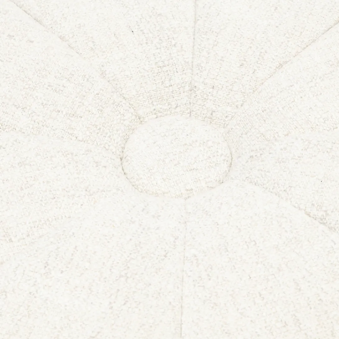 Ontdek de Falcone poef, Rich Tweed, in Antique White, een plaatje om te zien! Met zijn royale afmetingen van 72×41 cm past hij perfect in jouw woonkamer of op de slaapkamer. De rijke tweed stof en de off white kleur geven een warme en luxueuze uitstraling. De poef is gemaakt van de combinatie, polyester en rubberhout. De grote ronde knoop bovenop en de verticale stiksels geven deze poef een elegante maar ook een stoere uitstraling. Voeg een vleugje luxe toe in je huis!