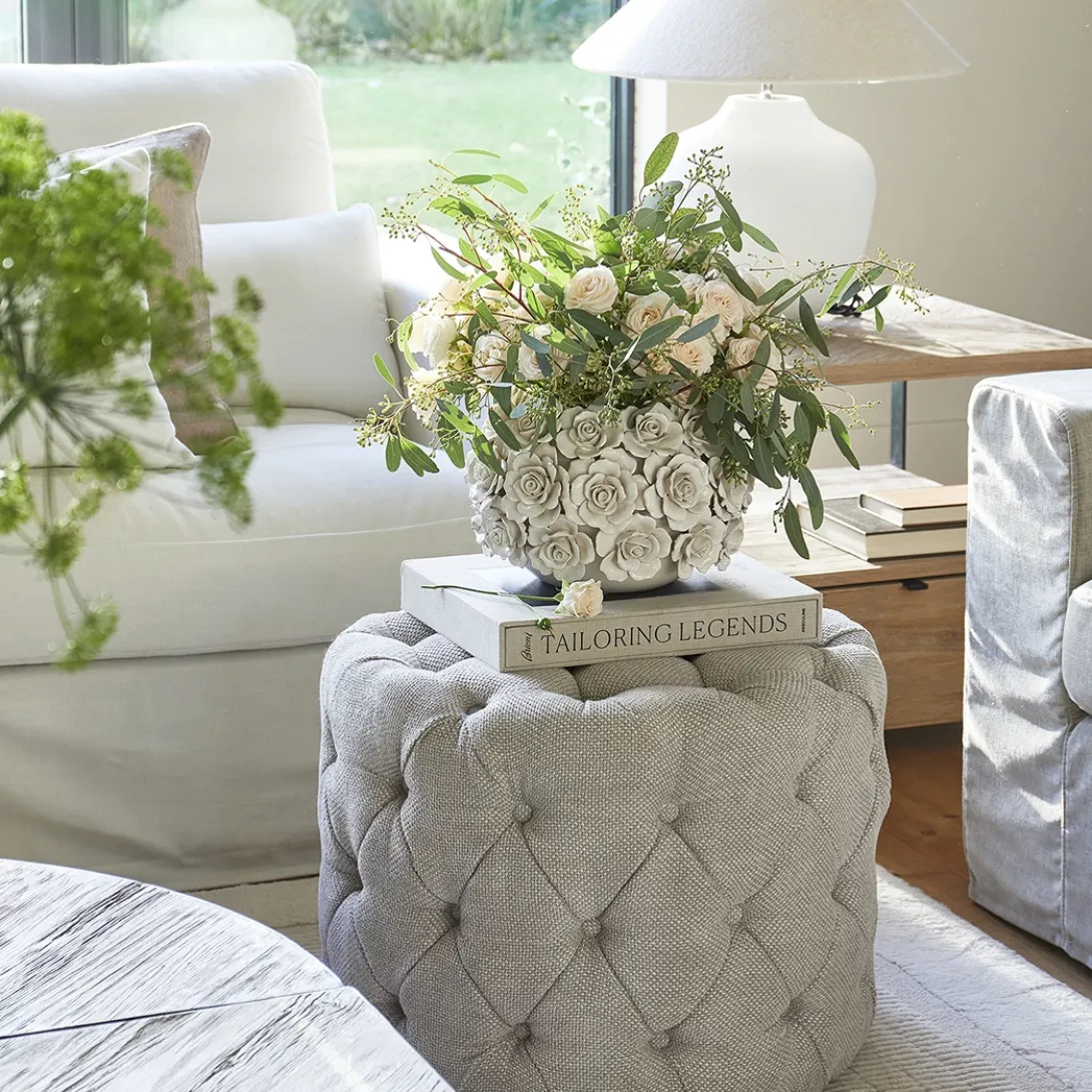 Ontdek de Opera Poef in Chelsea Flax – jouw ideale mix van stijl en comfort. De gecapitonneerde bekleding in crèmekleur voegt een vleugje luxe toe aan elk interieur. Dit veelzijdige voetenbankje past perfect in elke kamer en biedt de perfecte plek om te ontspannen na een lange dag. Met stevige houten poten en hoogwaardig vakmanschap is dit voetenbankje duurzaam en elegant.