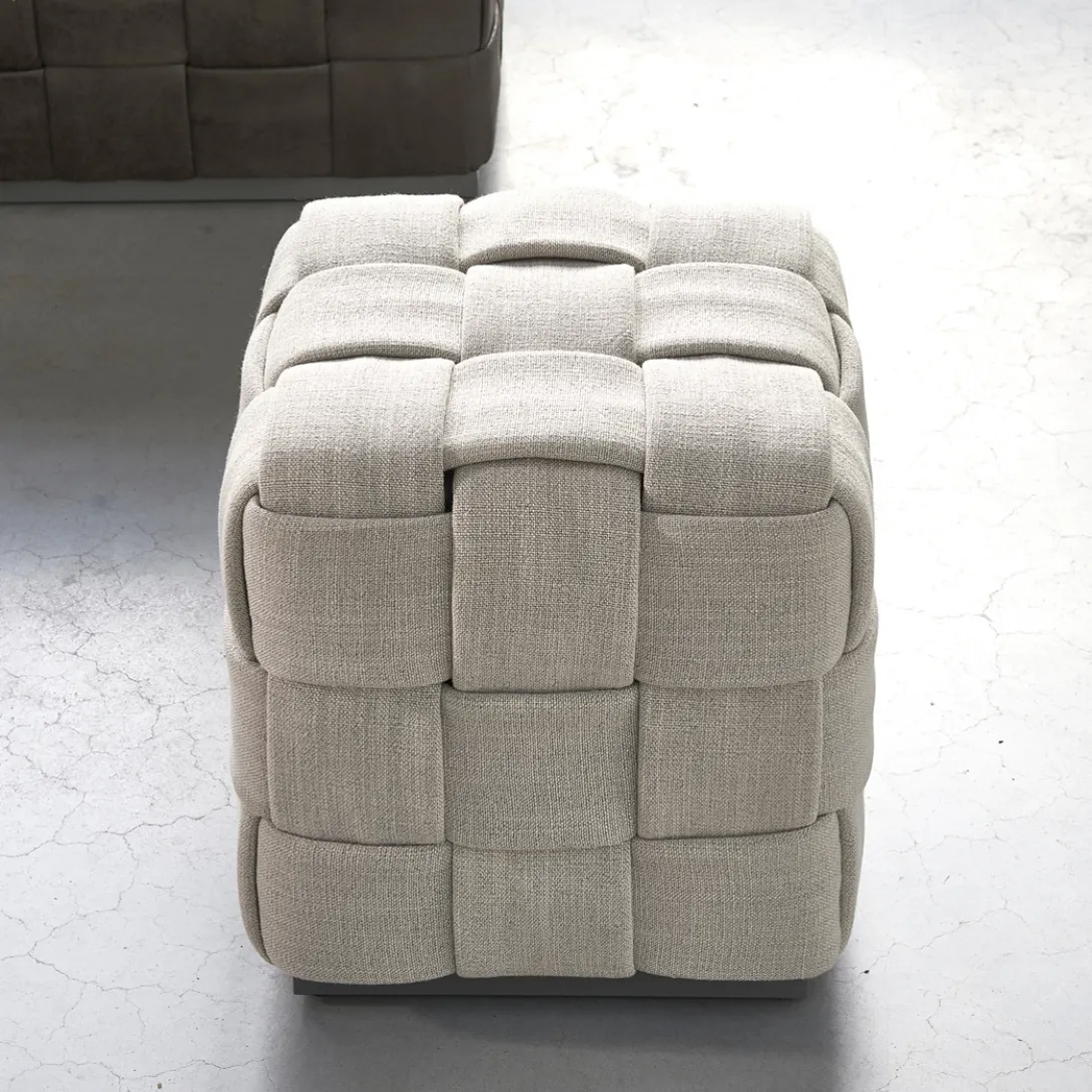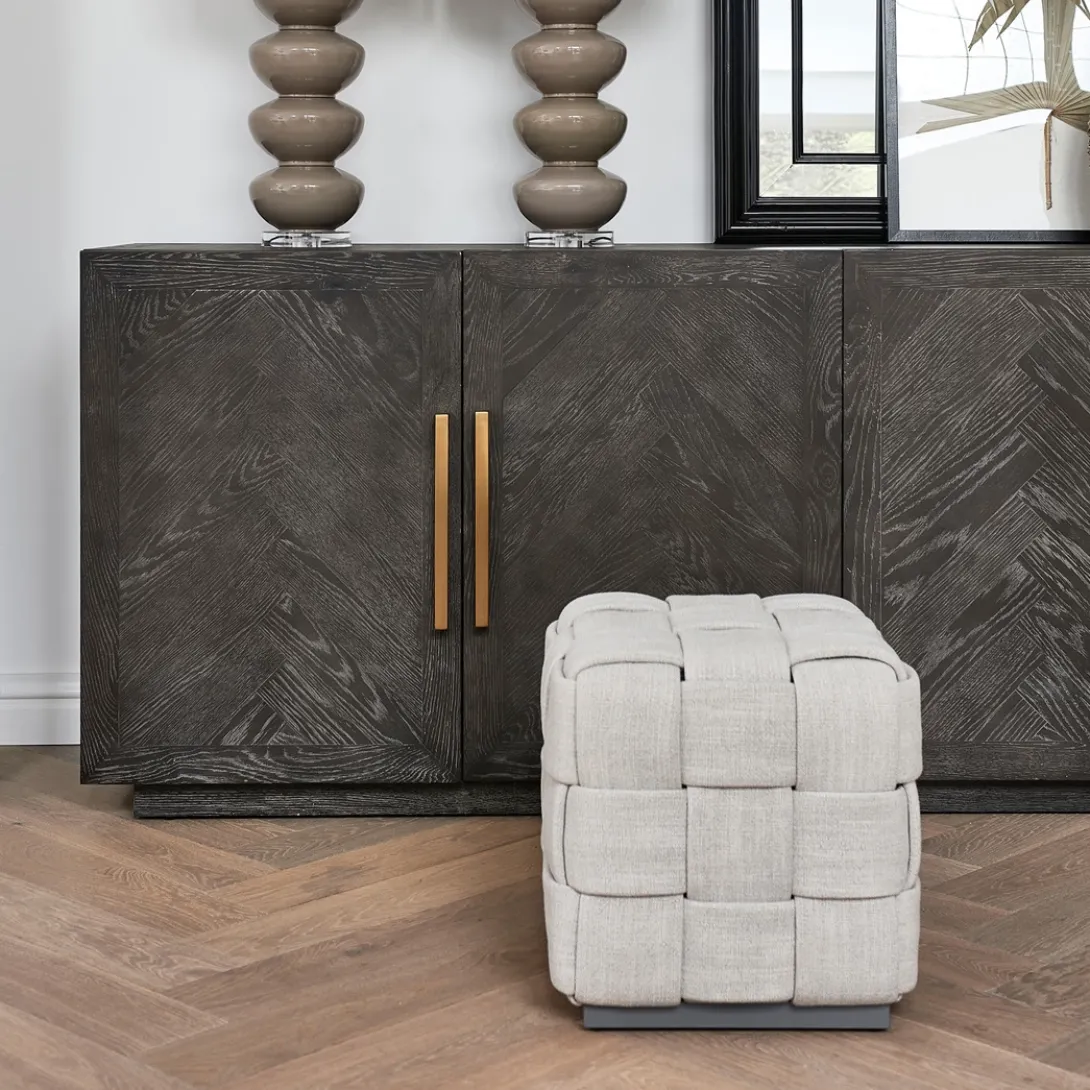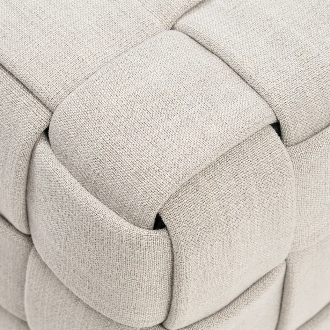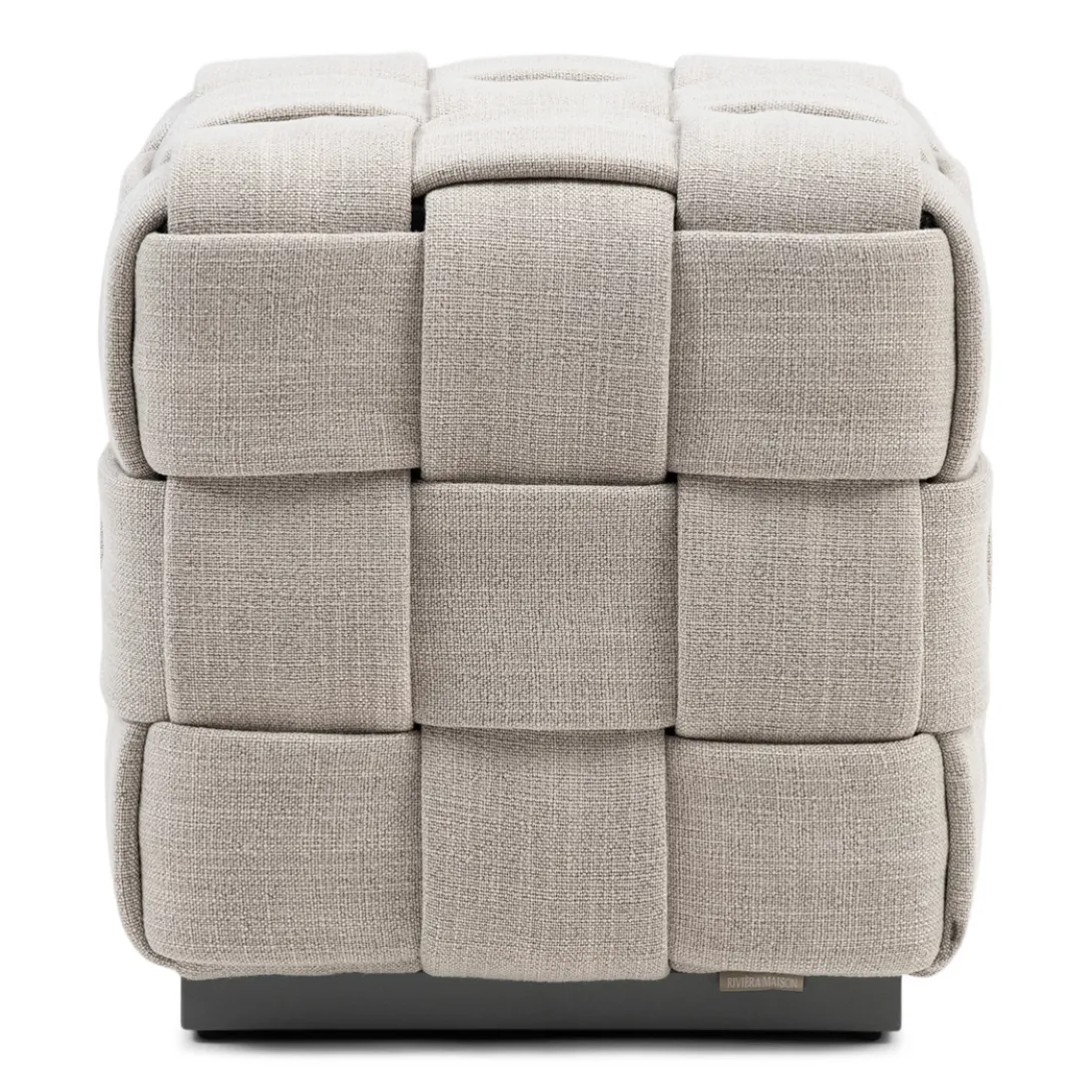 RM heeft ronde poefs, maar ook veel vierkante. Kies wat bij jouw smaak en interieur past. Deze vierkante poef heeft een handgevlochten bekleding van fijne Mouliné Linen, in de kleur Fabulous Flax. Een stevig houten onderstel van dennenhout garandeert jarenlang plezier.