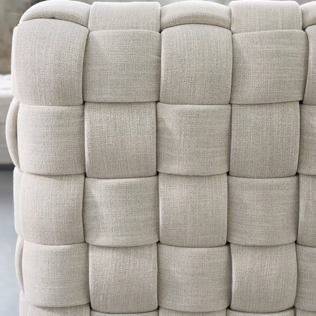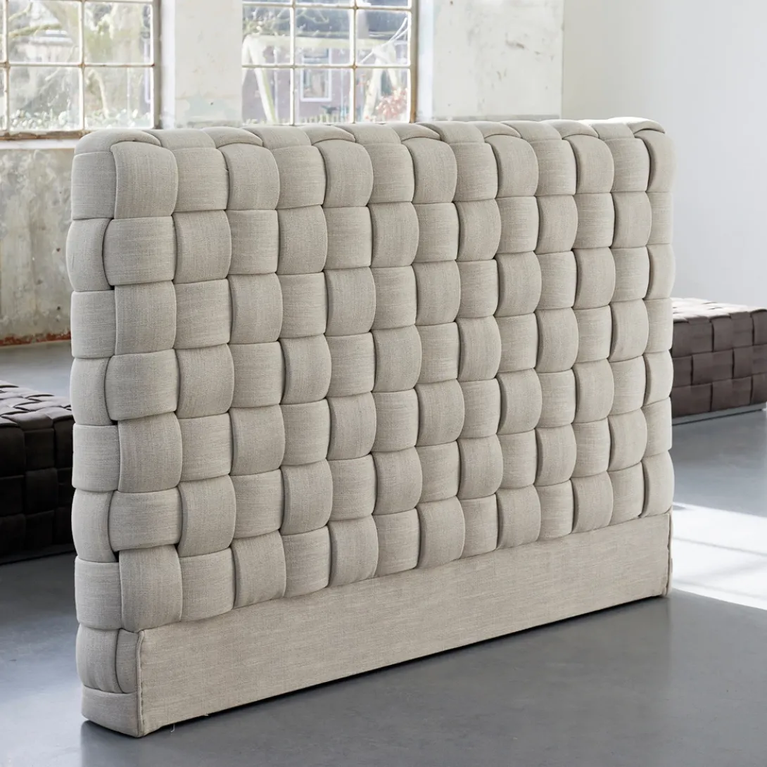 In de Room 48-serie zijn ook headboards verkrijgbaar in dezelfde uitvoering als alle andere Room 48 items: banen stof handgevlochten, met als resultaat een prachtig geblokt effect. Het headboard is uitgevoerd in een Mouliné Linen stof in de kleur Fabulous Flax.